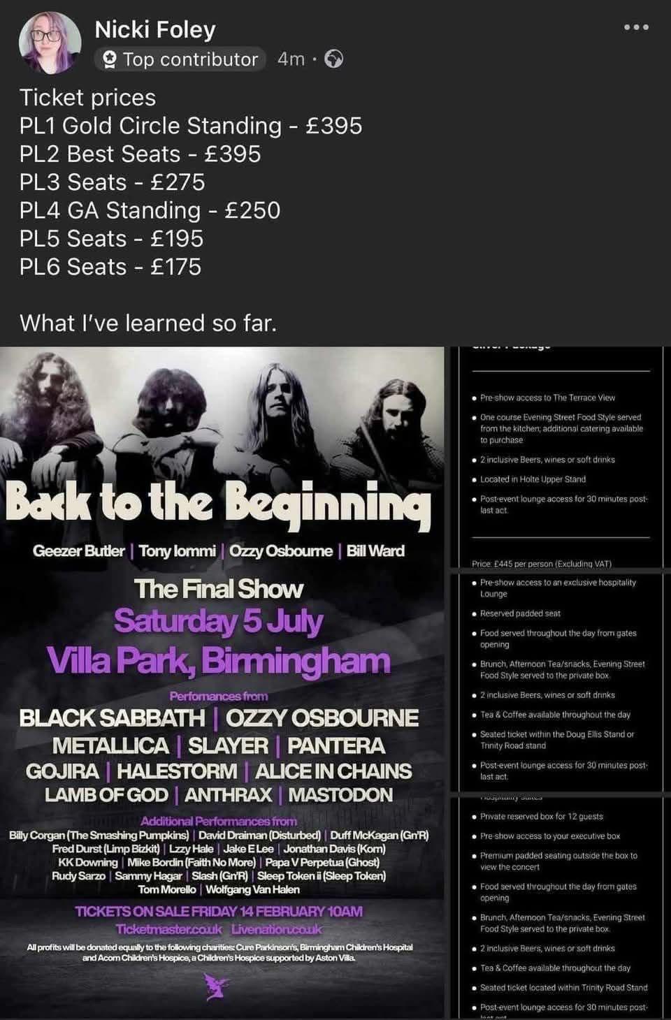 Concertone, l'ultimo della carriera della band a Luglio 2025, Birmingham