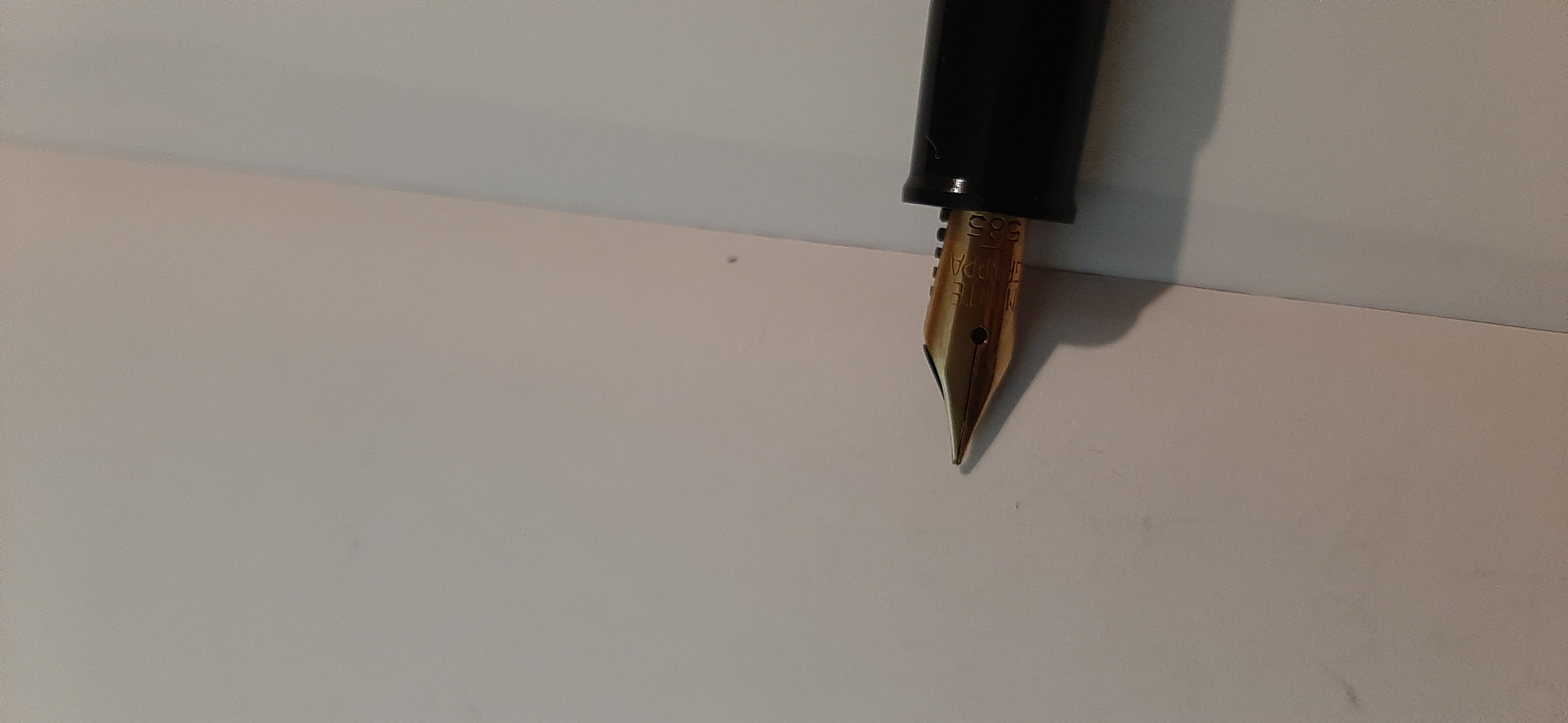 Mi sono fatto coraggio e ...ho tirato, eccolo qui il "grattoso" ( confermo che a mio avviso ha perduto l'iridio), come potete vedere è davvero piccolino, dove trovare un sostituto ( che non deve grattare ma essere ...liscio e morbido, tratto possibilmente M o F abbondante, possibilmente in oro, possibilmente prezzo abbordabile, se Montegrappa ancora meglio)? È possibile ? ( mi acconterei di un qualsiasi pennino che riportasse in vita la mia Montegrappa ...oro e scorrevole però ci terrei) ....pennino cinese su Ali?