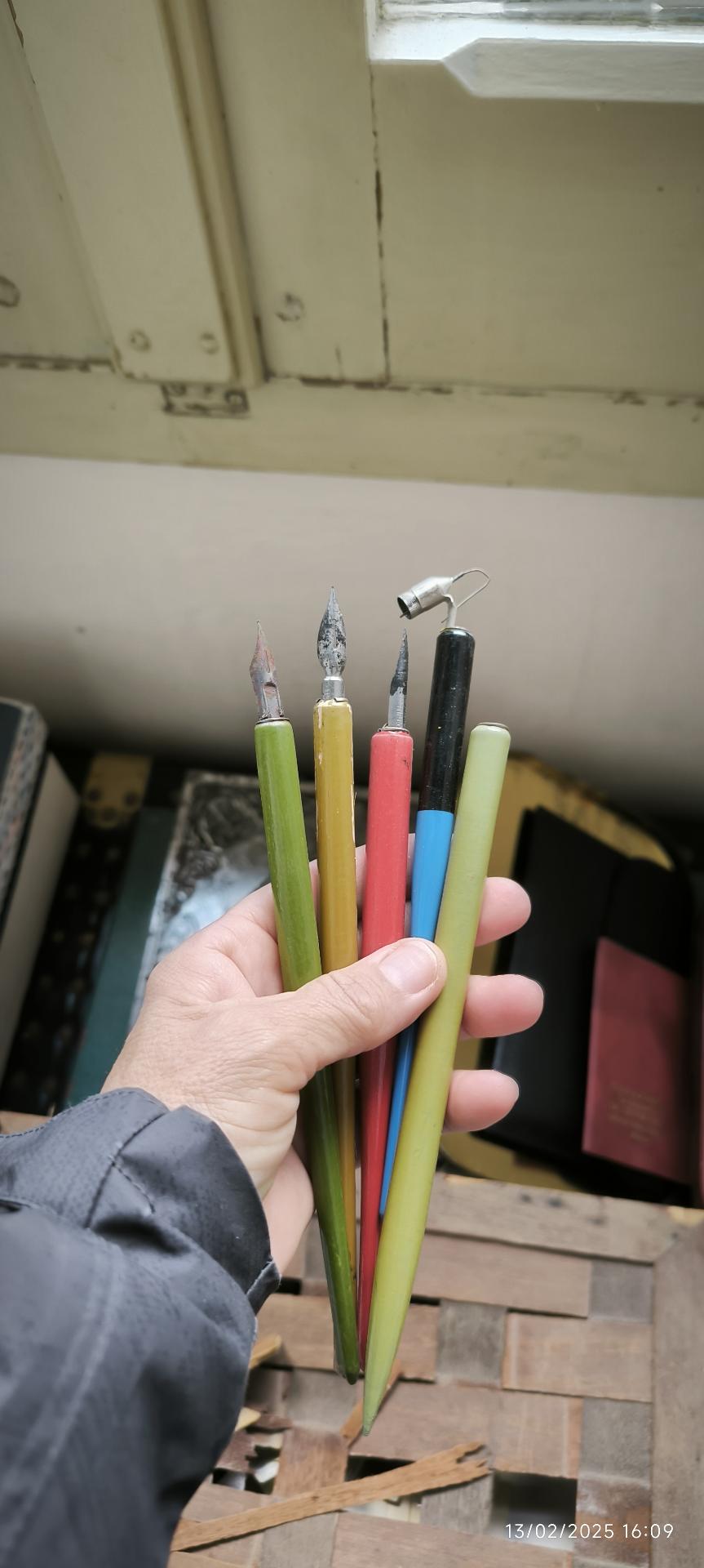 Rimestando in vecchi scatoloni, una cara amica ha ritrovato, insieme a dei pennini, uno strano "aggeggio" di cui non si capisce la funzione (tanto che potrebbe anche non avere nulla a che fare con la scrittura, ma essere un attrezzo particolare costruito per chissà quale utilizzo).