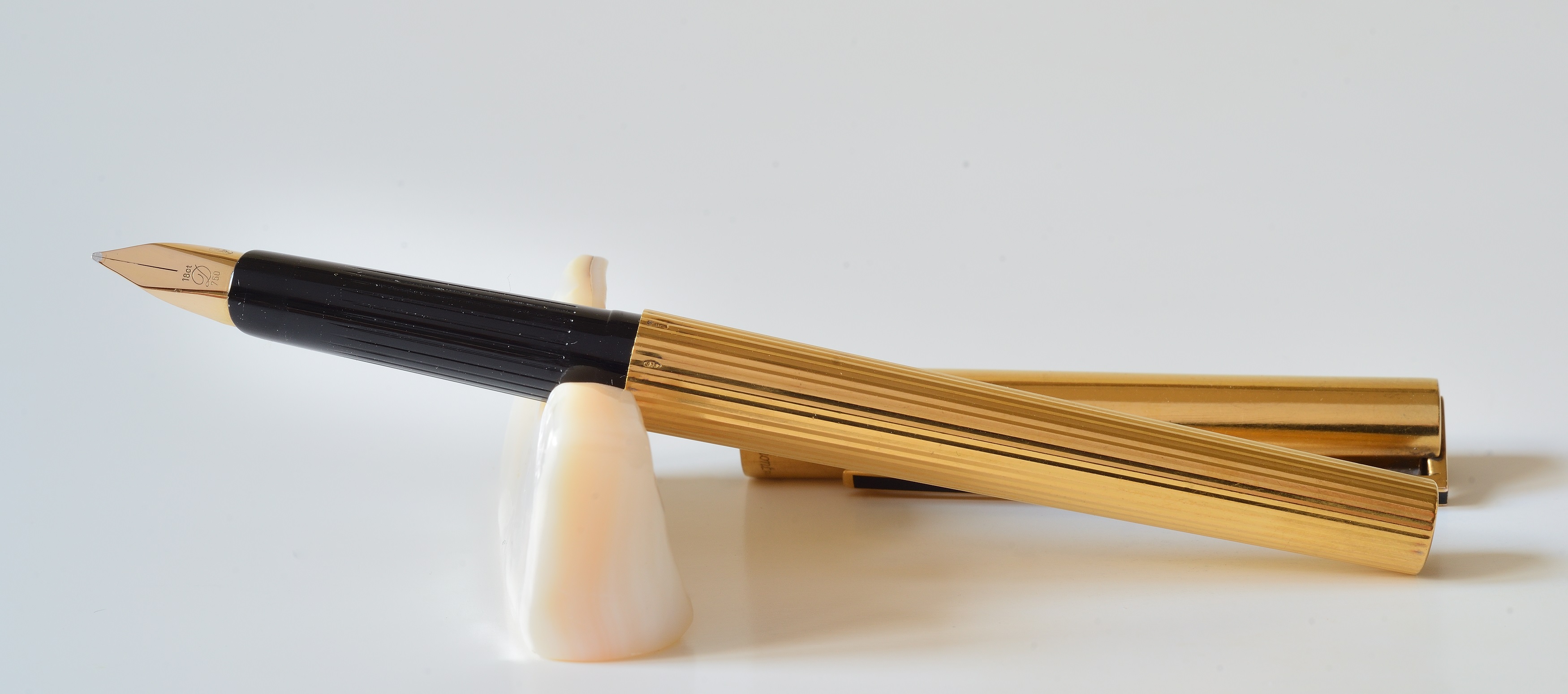 e per ultima una Dupont in argento 925 dorato (Vermeil) con pennino in oro 18 K, al corpo un punzone