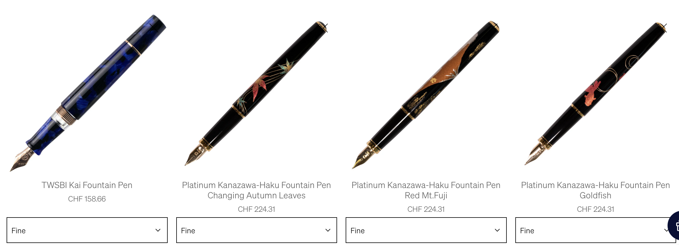 Purtroppo qui dove abito c'è solo 1 cartoleria che è un pò attrezzata di penne buone. Già guardate un pò tutte, ma hanno solo Pelikan,Parker,Waterman e Faber-Castell.