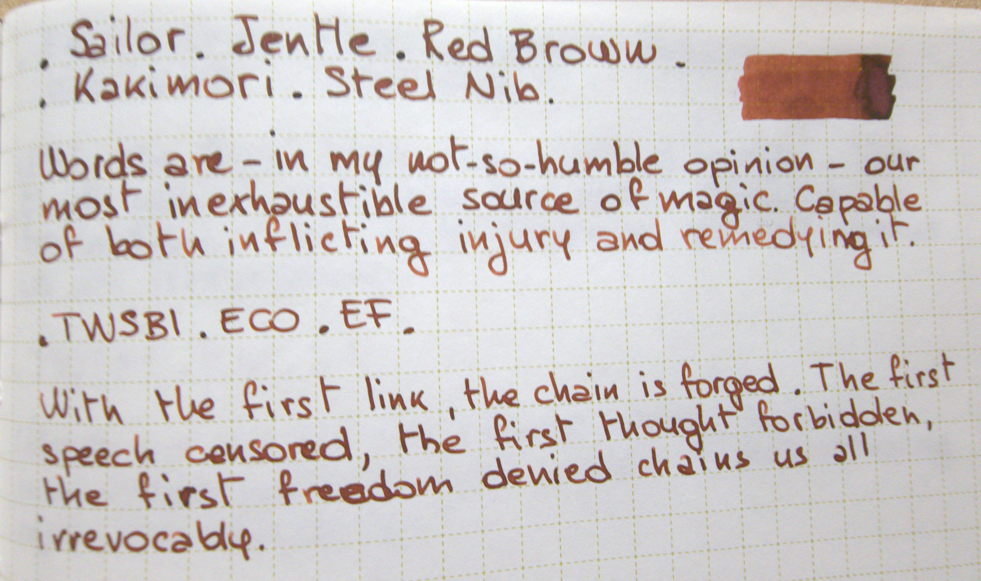 Il pennino usato è il Kakimori in acciaio a meno che diversamente specificato.