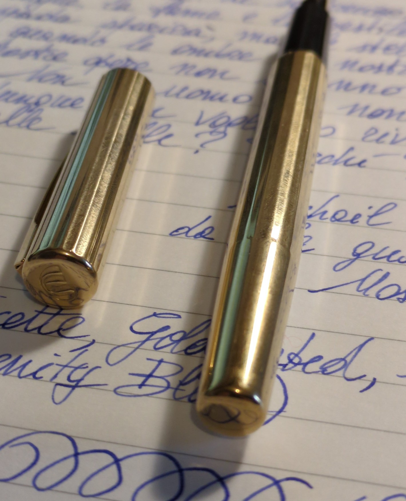 - sul labbro del cappuccio è inciso: "WATERMAN" "MADE IN FRANCE - PLAQUÉ OR G" (G dovrebbe significare che trattasi di galvanatura); è presente anche una punzonatura affiancata da tre trattini sovrapposti (che significano???)