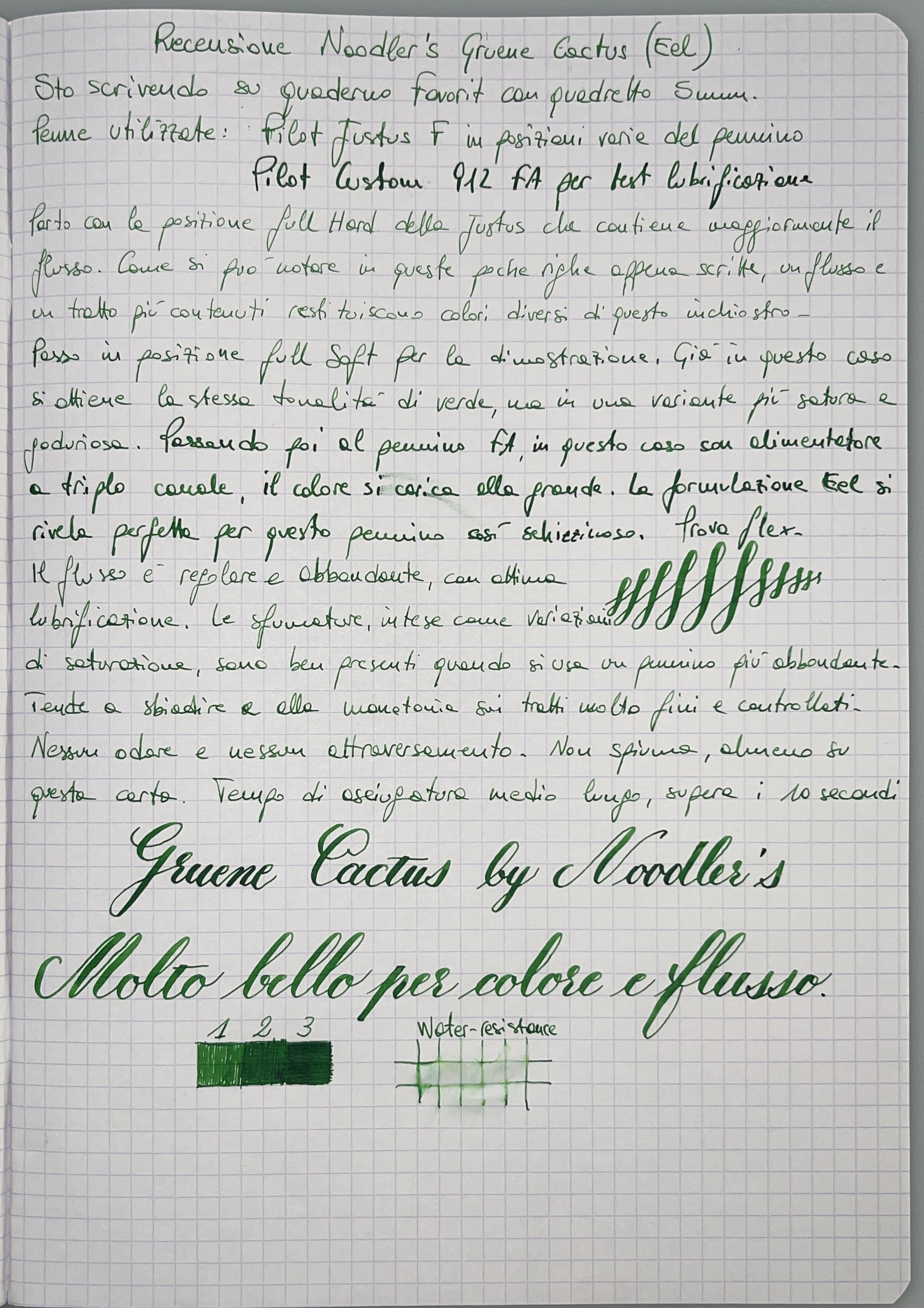 Provando invece altri inchiostri, che uso da tempo senza problemi su svariate altre penne (Edelstein Aventurine e Montblanc Irish Green), sia con il converter che caricando le cartucce con la siringa, la penna stenta a ripartire anche soltanto dopo poche ore.