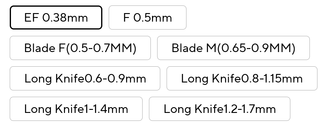 Le opzioni che trovo sono queste e non vi è correlata nessuna spiegazione...proprio chiaro non è! Se sai a quale si riferiscono rispondi pure in pmpbon ha scritto: ↑lunedì 7 aprile 2025, 16:48A me sembra abbastanza chiaro. Hanno alcune misure che vanno da extrafine a tratto medio e due tipi di pennini uno dei quali marcano come "soffice" in alcuni casi ma è lo stesso pennino che a volte non chiamano "soffice". Però non mentono, quel pennino che hongdian marca "soffice" lo è in effetti e puoi fare linee un minimo flesse, e l'alimentatore lo consente essendo 2 canali anche se di plastica. Quindi non è una bugia.