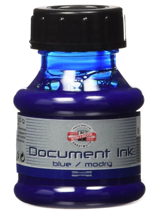 Poca spesa e tanta resa. Anche se non certificato il K.I.N. Document blu è un gran bell'inchiostro. In calamaio di plastica, adatto al trasporto sicuro in borsa. Il nero non mi piacque più di tanto perchè troppo poco saturo.