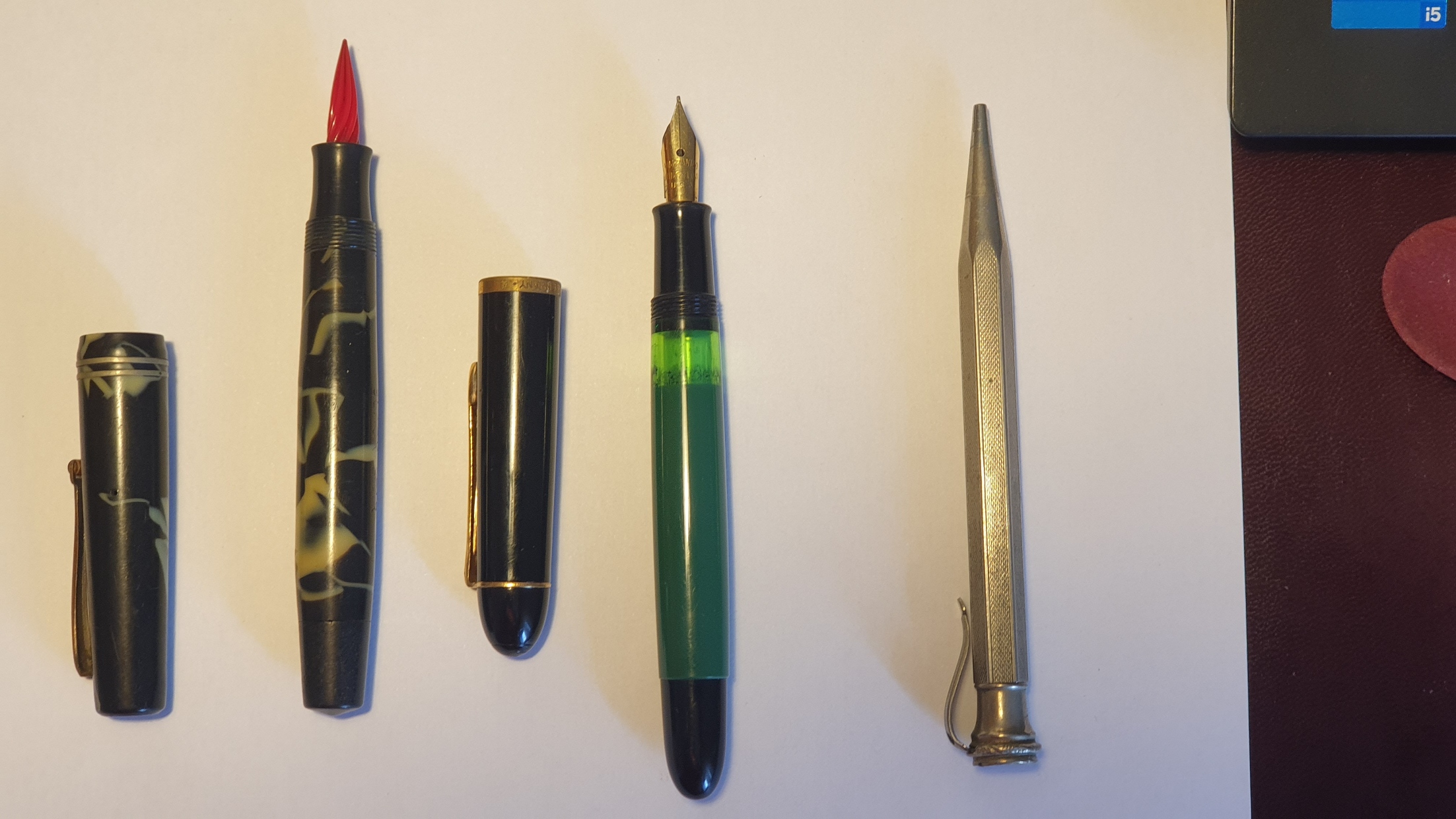 Dato che ho trovato il modo di pubblicare immagini, vi giro la foto delle due penne e della matita meccanica di mio padre, che ormai non c'è più. La penna nera e la matita sono degli anni '30, quando andava a scuola.