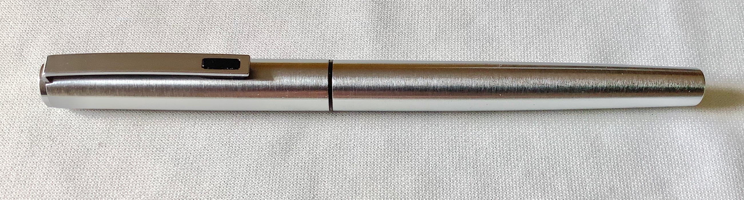 Realizzata in acciaio satinato (o spazzolato), all’interno del fusto è presente un cilindro in ottone, probabilmente per bilanciare il peso della penna e/o per aumentarne la robustezza; questo cilindro è posto subito dopo un inserto in plastica sul quale è realizzata la filettatura alla quale si avvita la sezione, così da ottenere l’accoppiamento tra plastica (della sezione) e plastica (nel fusto).