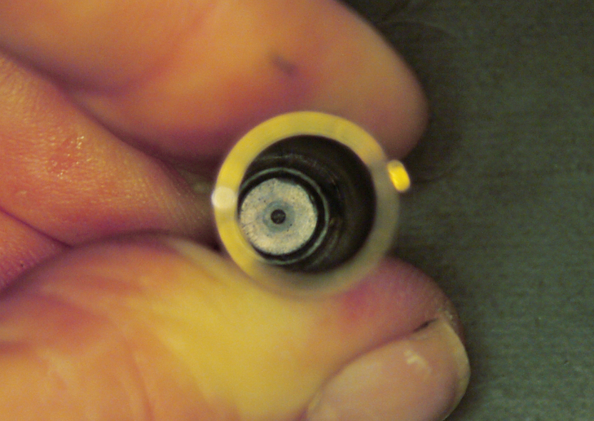 Oooh... effettivamente quel pezzo nel mio cappuccio non c'è, vedo direttamente la molla e la luce che arriva dall'esterno.