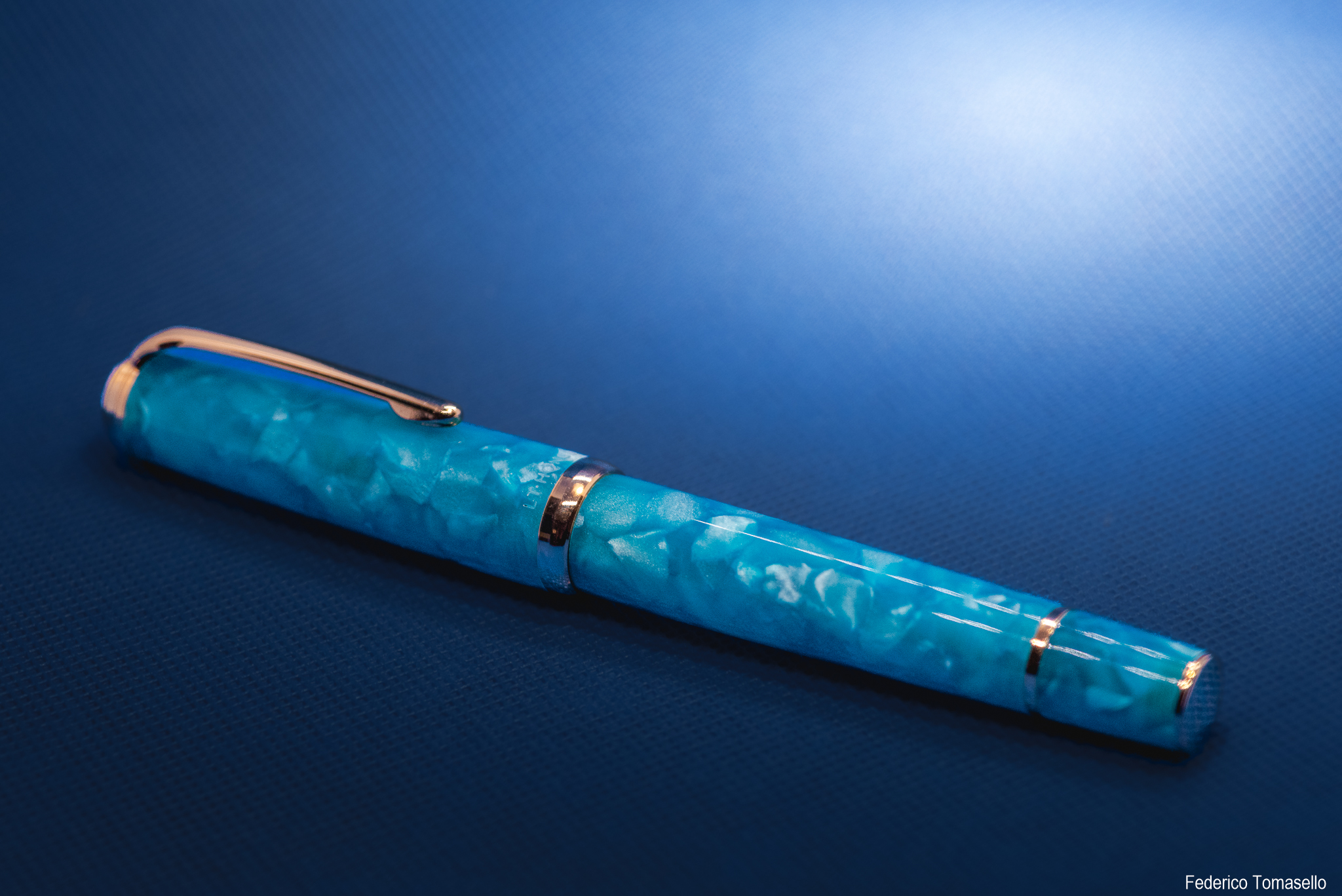 È da un po' che mi è venuta voglia di completare la serie "N" della Hongdian, ma questa N11 è arrivata a prescindere: mi ero innamorato della livrea sin dalla prima foto vista sul web e così l'ho comprata alla prima offerta decente. Confermo che, a mio gusto, la lavorazione del fusto è assolutamente fantastica ed esteticamente appagante e bellissima: ho passato le ore a girarmi la penna tra le mani per godere di come riflette la luce, ribadendo quindi che sono un cretino di 8 anni di età mentale.