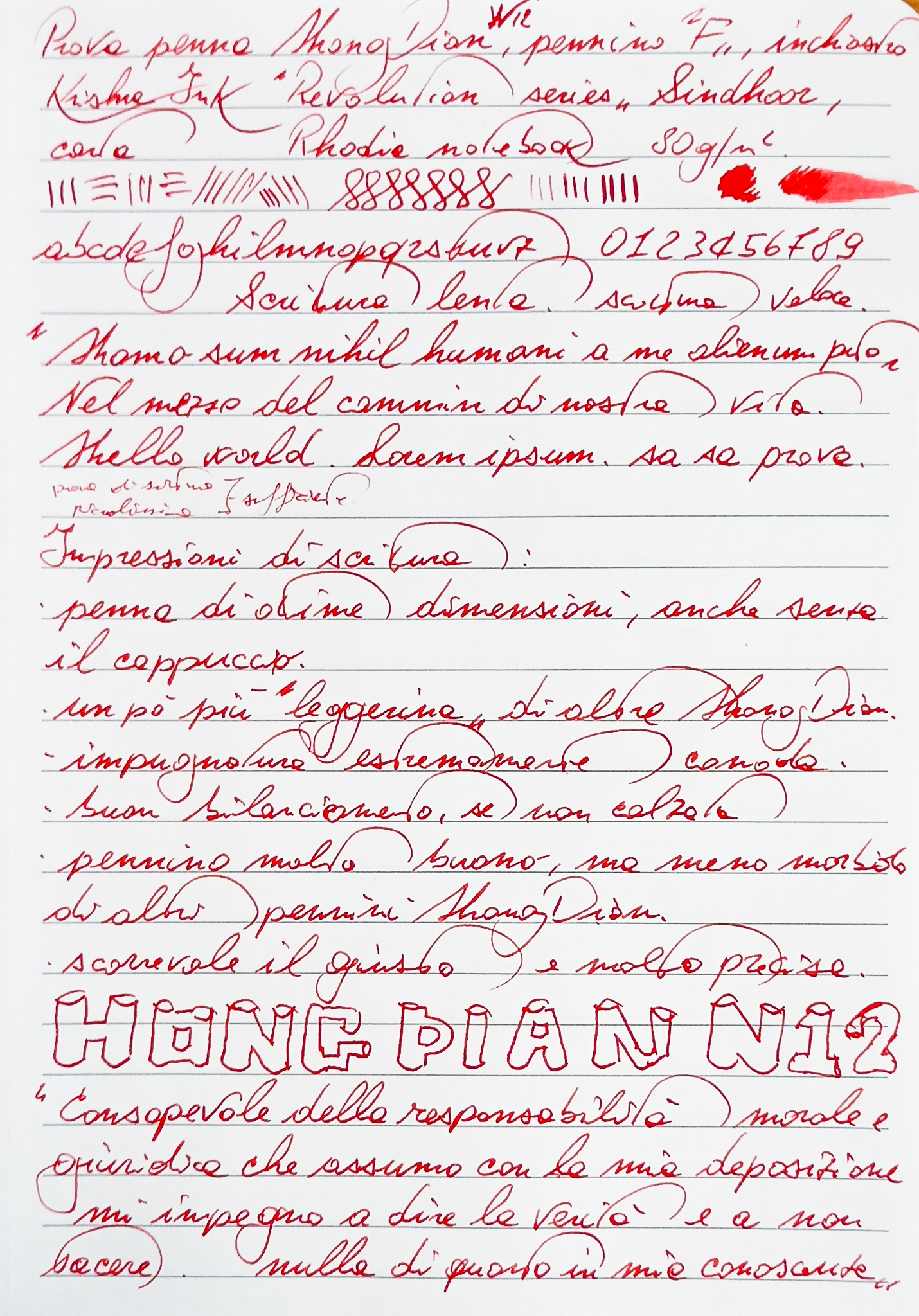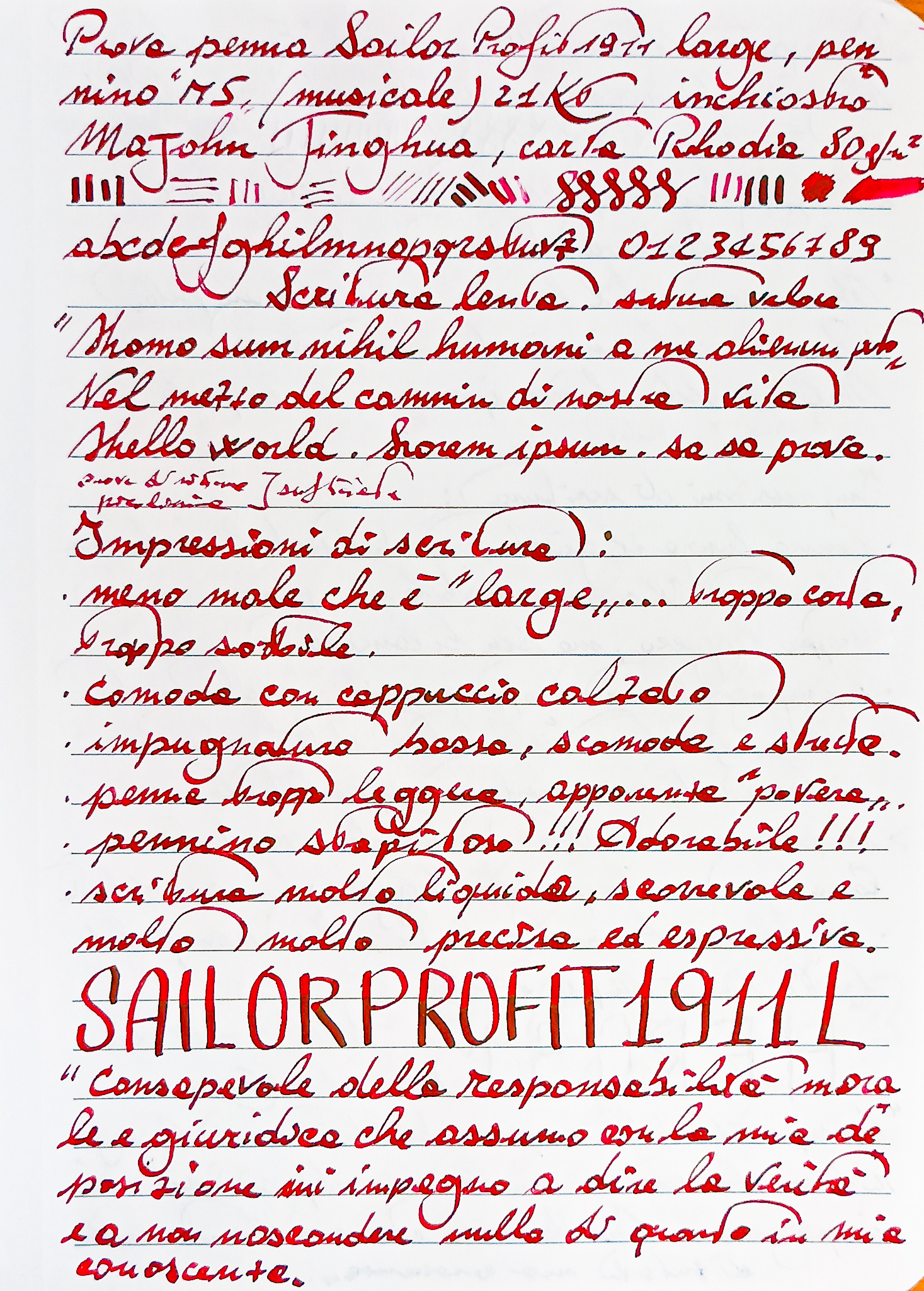 In compenso la scrittura è adorabile: non tanto per il pennino (confortevole, ma meno scorrevole di quel che pensassi), quanto per l'erogazione idraulica spinta dell'inchiostro. Avere tutto quel flusso mi rende allegro e felice durante la scrittura, anche perché si esaltano anche gli inchiostri.