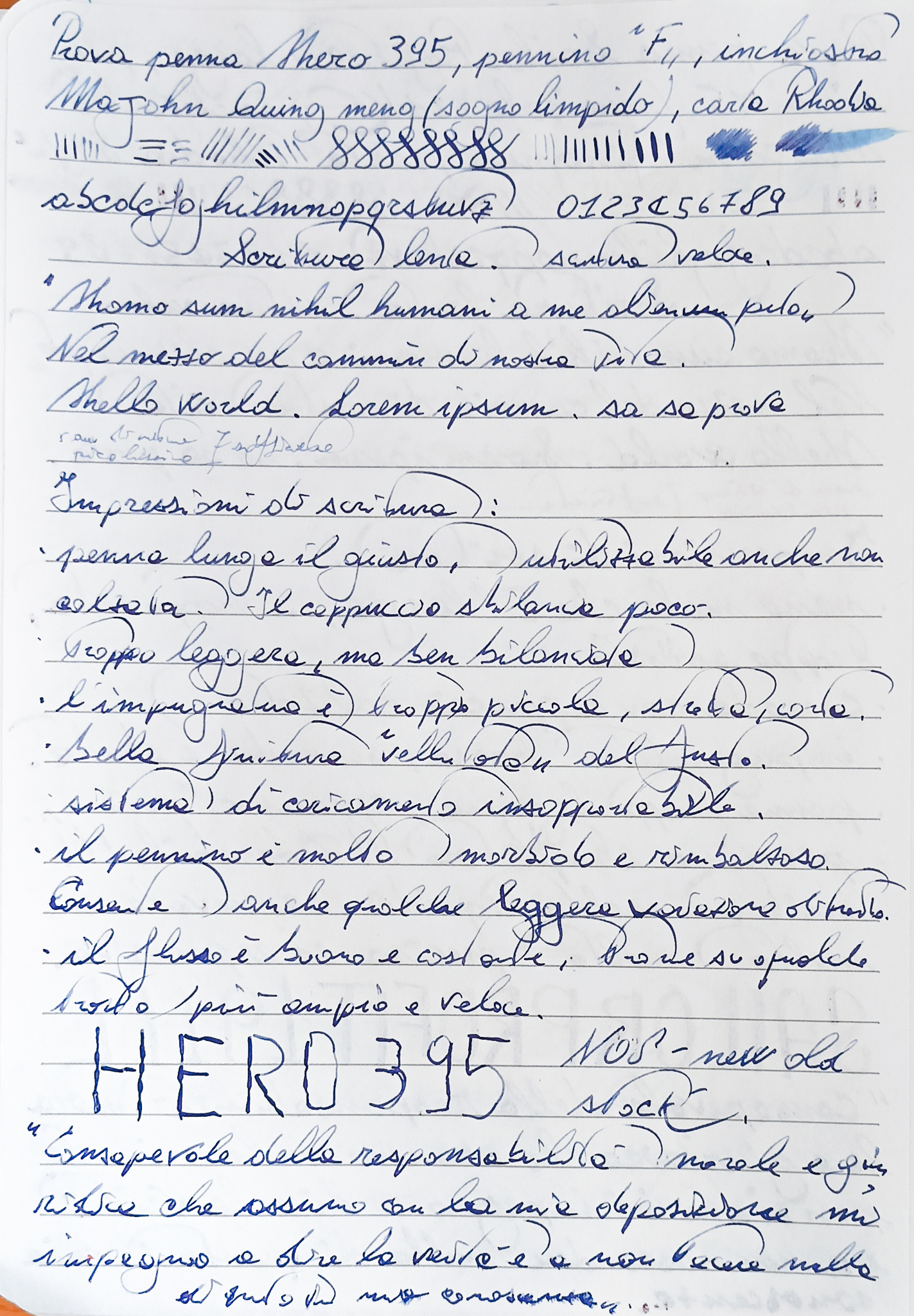 Il resto è quello che cogli, precisamente quel flusso pronto dell'inchiostro che fa sembrare molte altre penne ritrose. Con questo flusso scrivi quasi sfiorando la carta, non serve premere. Ti accorgerai anche che la lasci carica, la riprendi anche dopo settimane, e scrive.