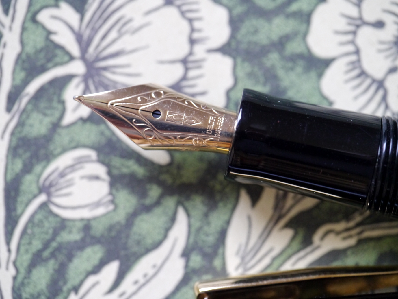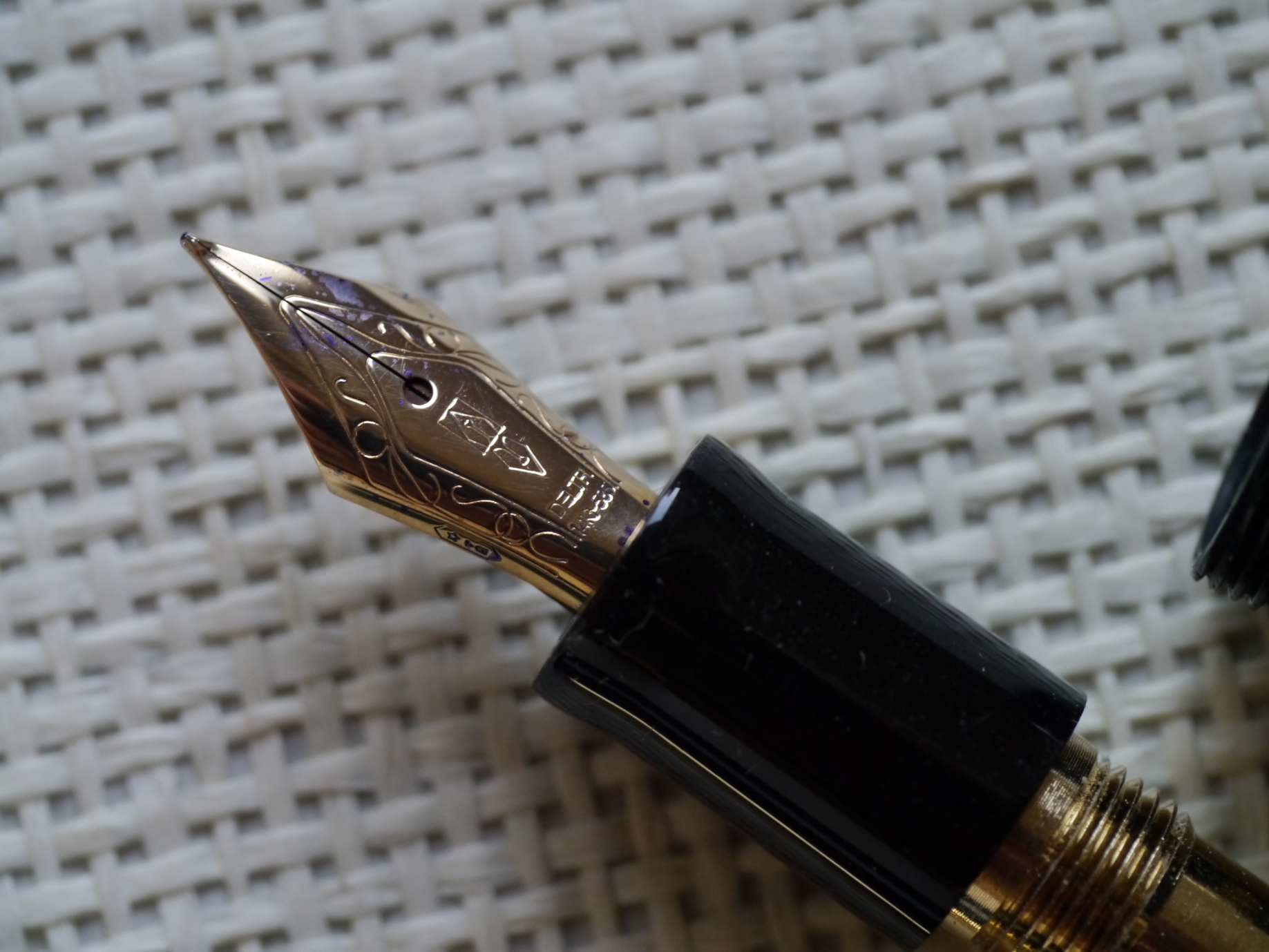 Il pennino della penna è in oro 14k, rodiato sulle versioni silver trim, ed è un size 5.