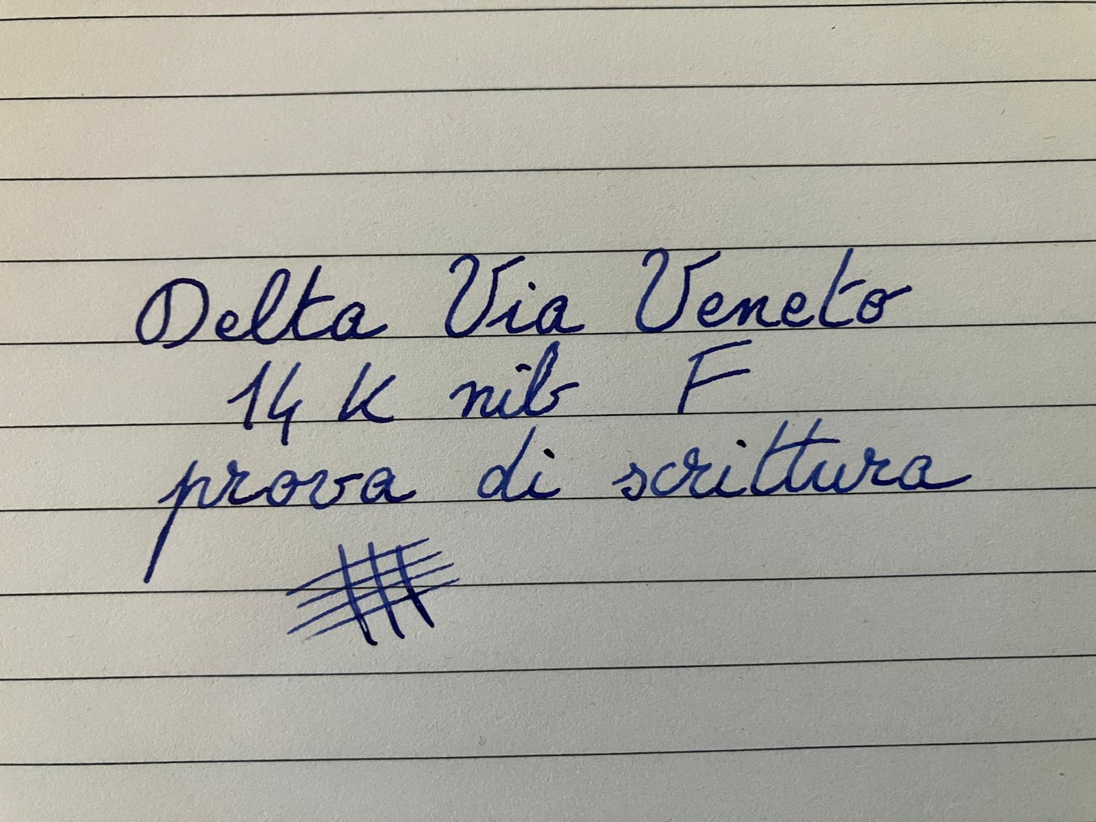 In scrittura il pennino si comporta molto bene, partenza pronta, senza tentennamenti, tratto fine europeo, costante, scorrevole senza per questo esagerare.