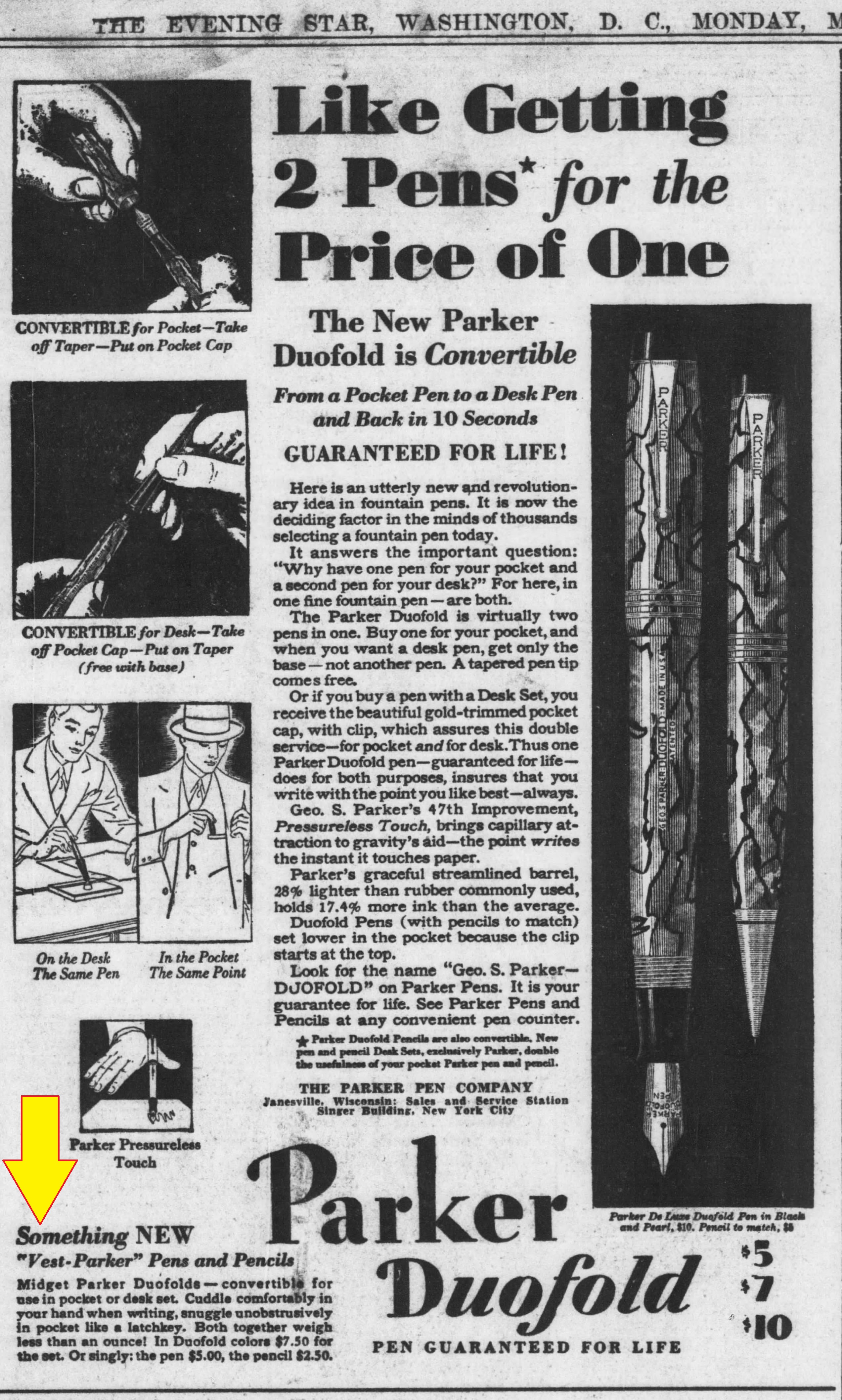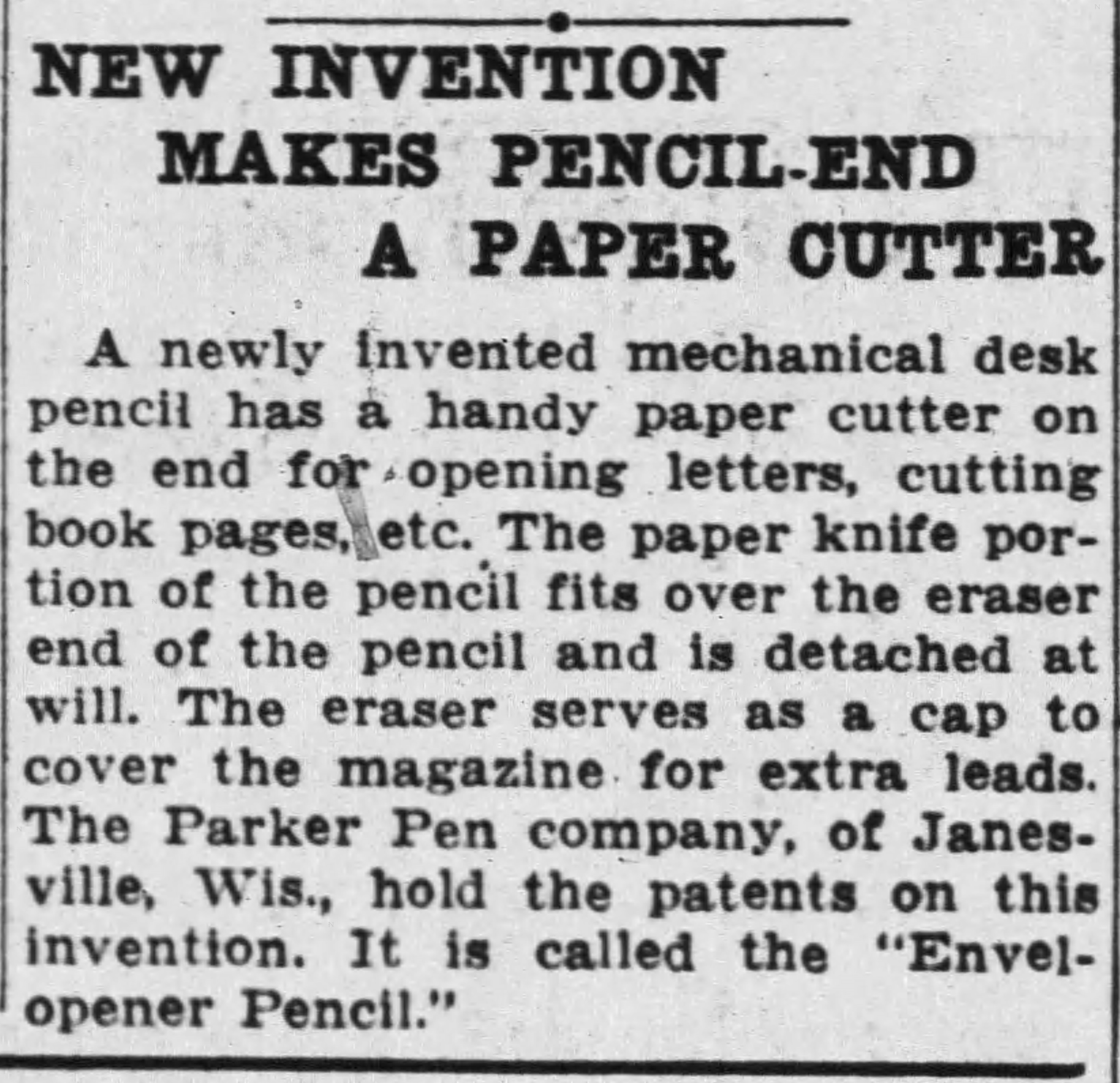 Nell’articolo citato si potranno reperire informazioni interessanti anche sul brevetto del Penparker e sul suo titolare, I.D. Tefft.