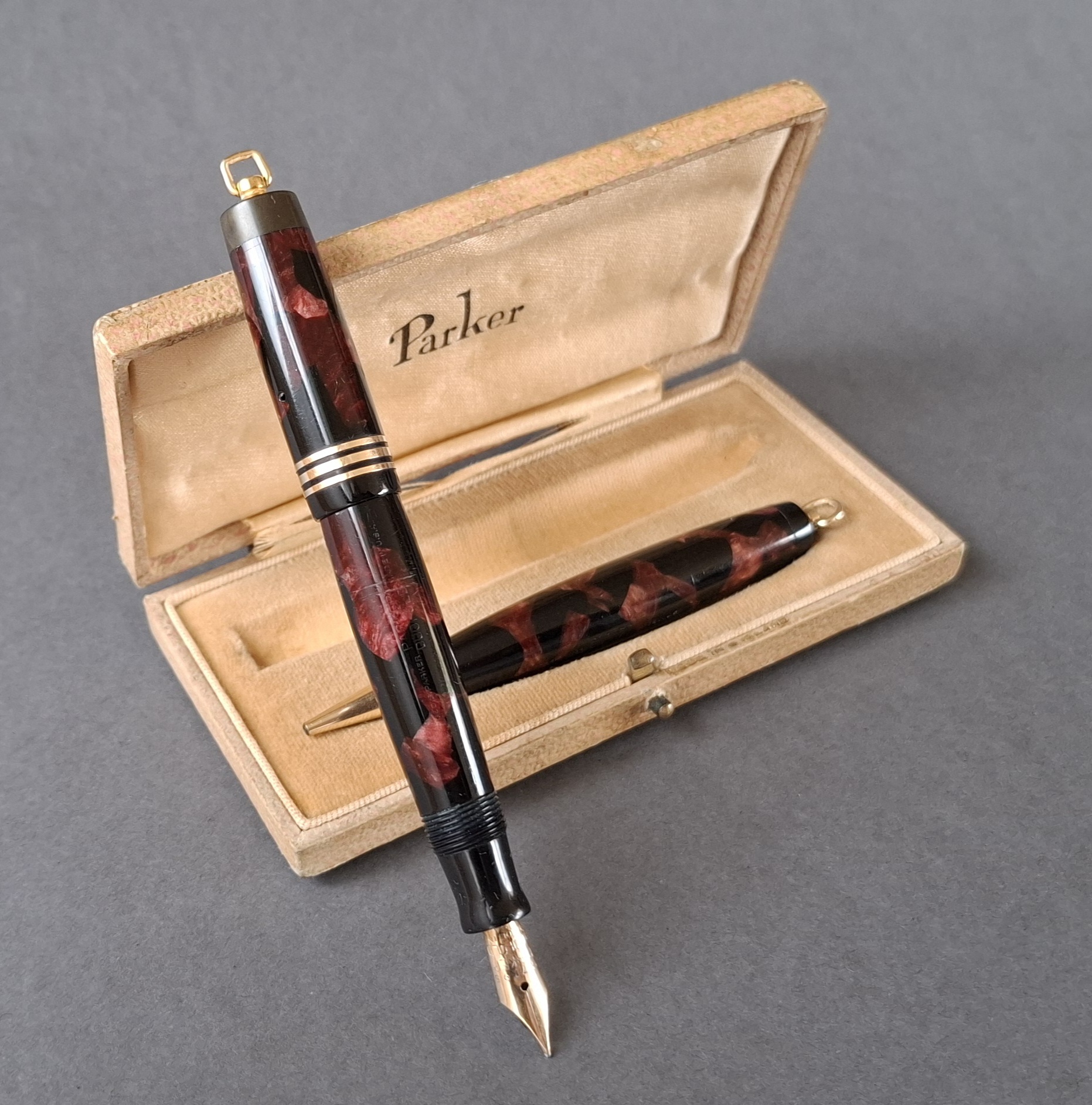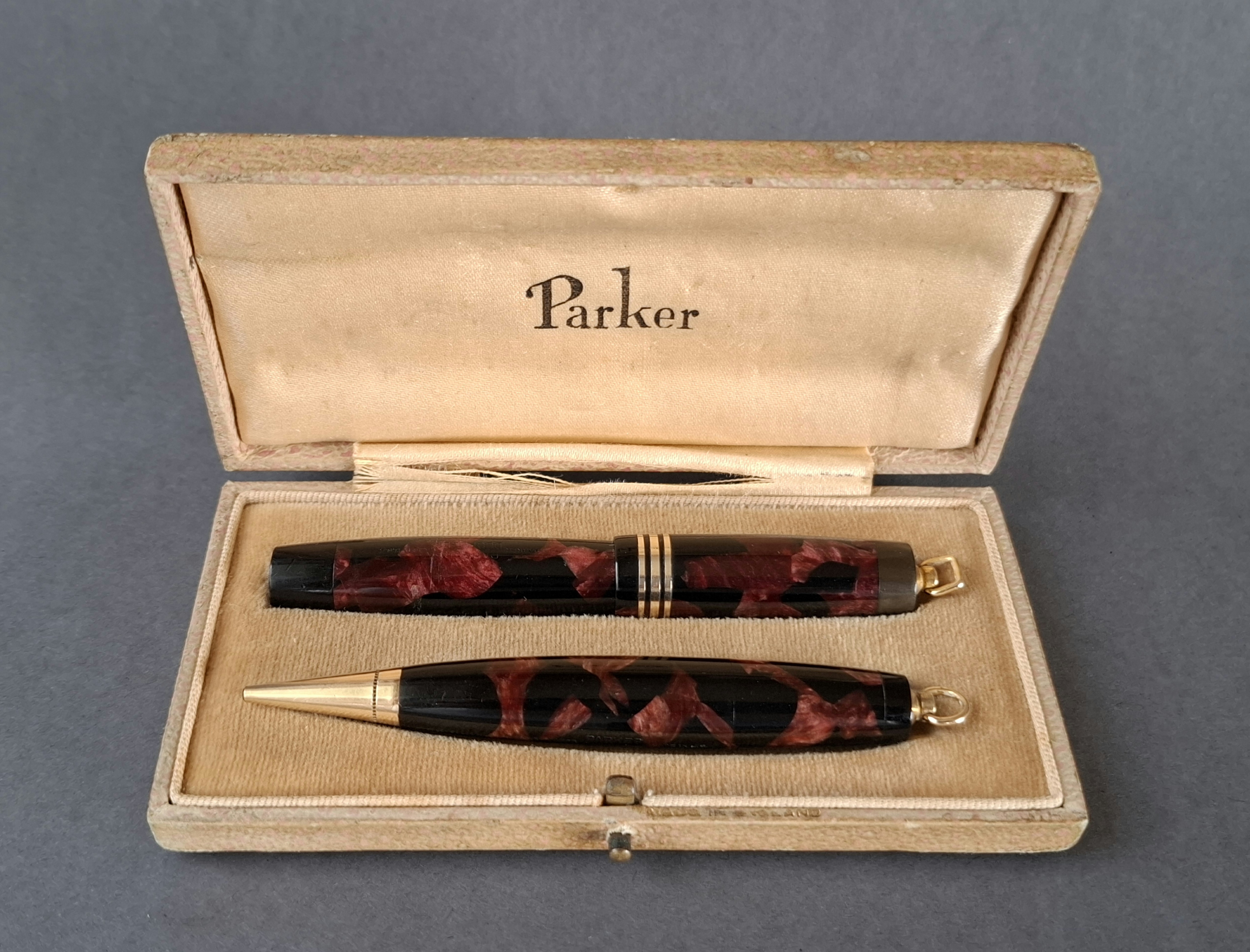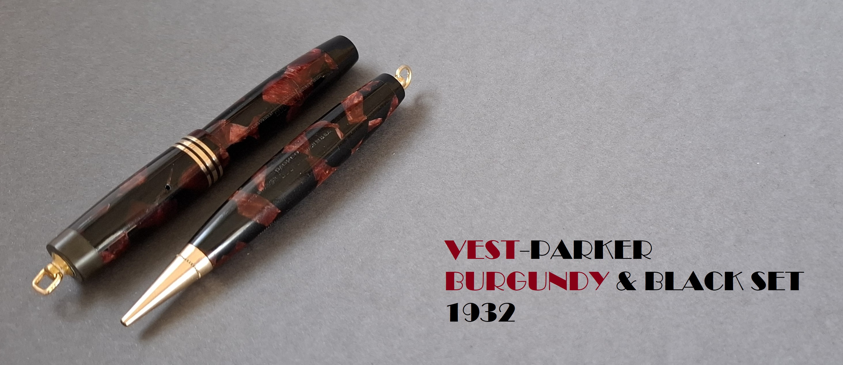 4 • Parker Vest-Parker Duofold Burgundy & Black Set in Box