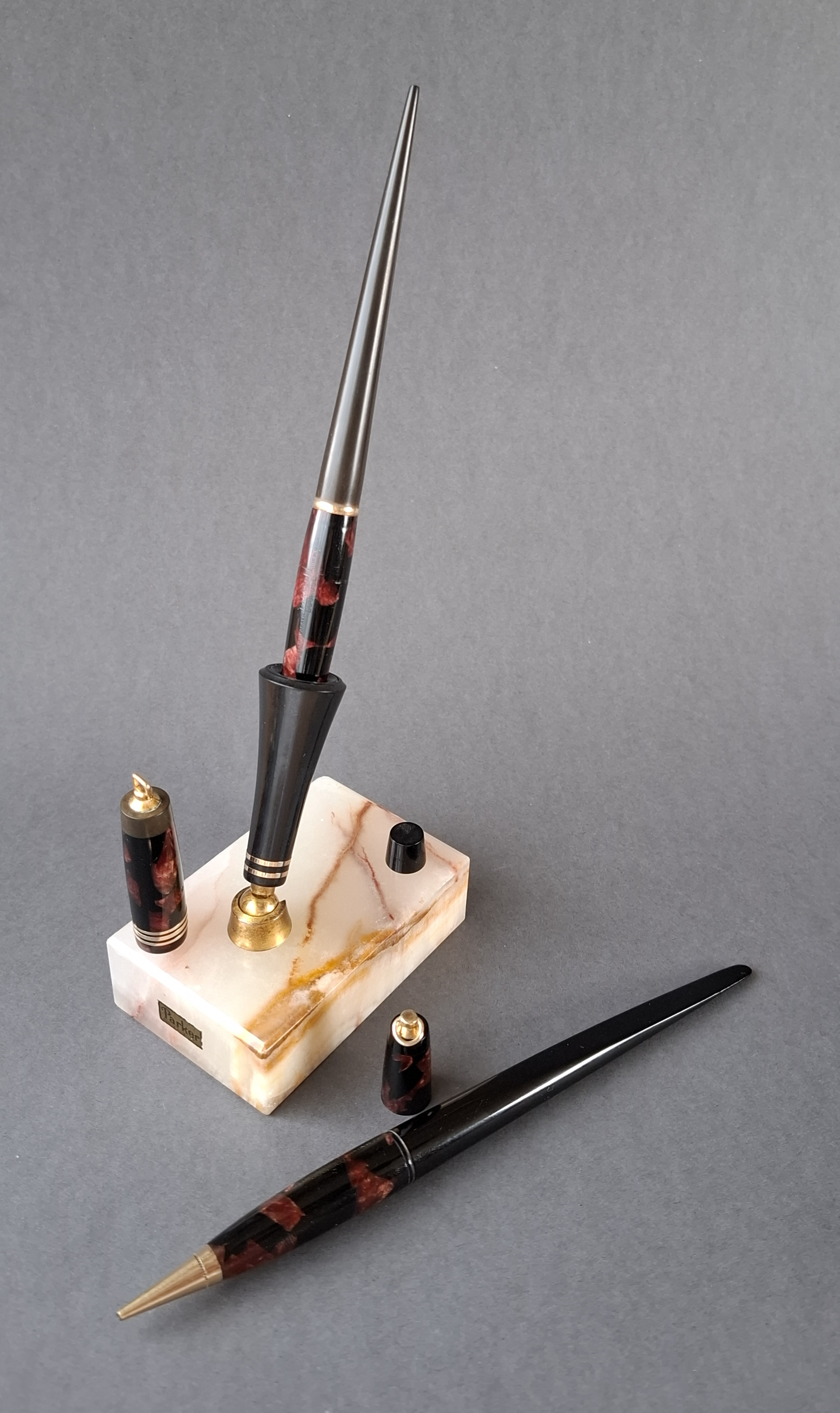 • le personalizzazioni di penne, matite e perfino del tagliacarte con l’autografo/firma del futuro utilizzatore, riprodotto sulla celluloide da un macchinario brevettato,