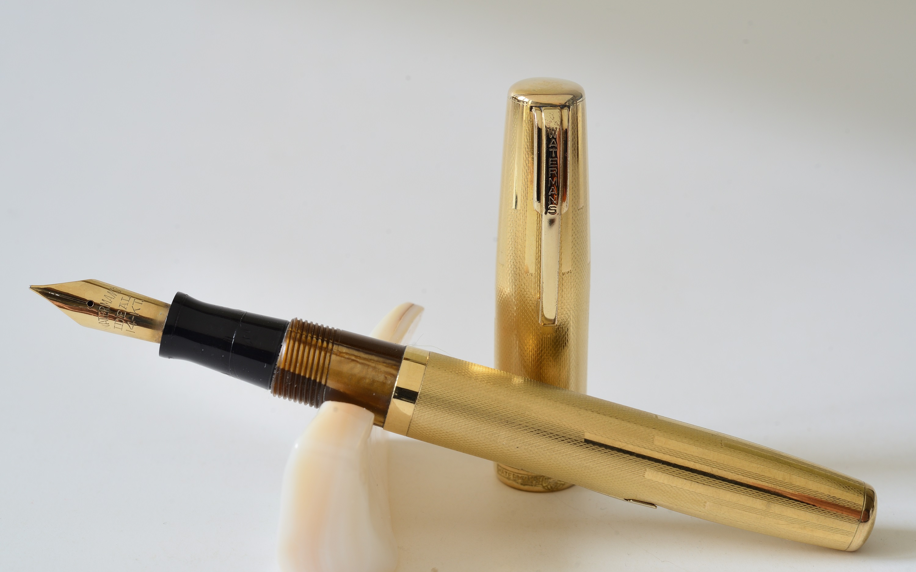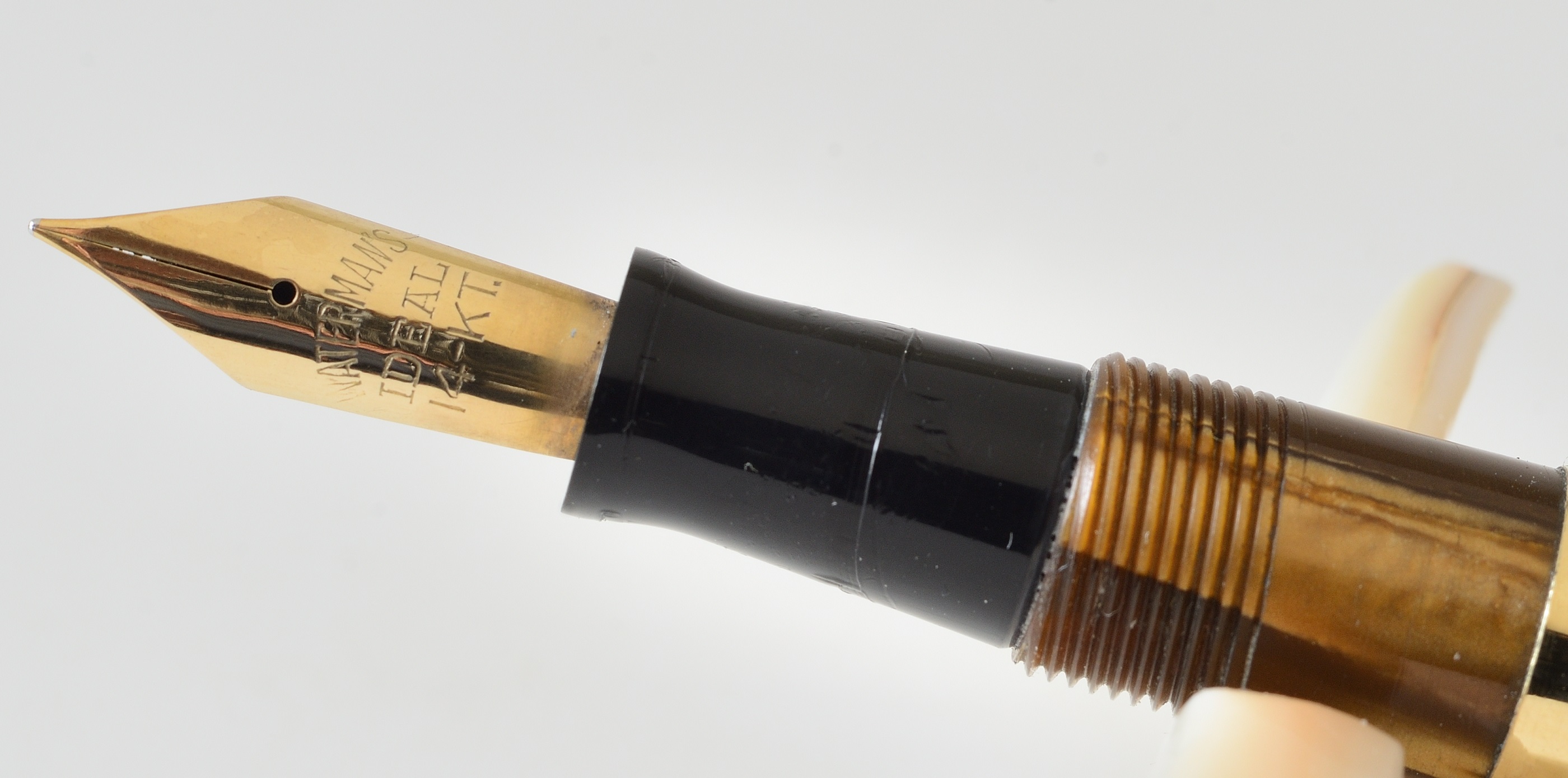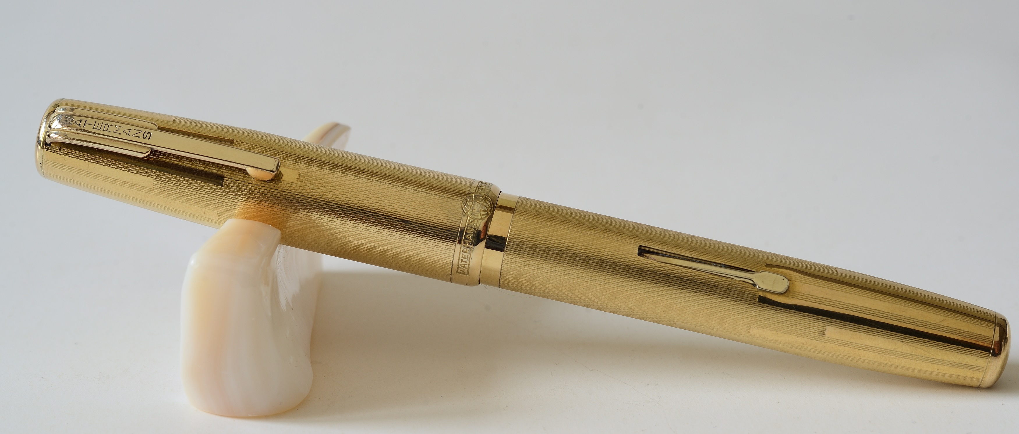 laminata in oro 18 kt, pennino Waterman's Ideal in oro 14 kt, scritta Watermams incisa anche sulla clip,