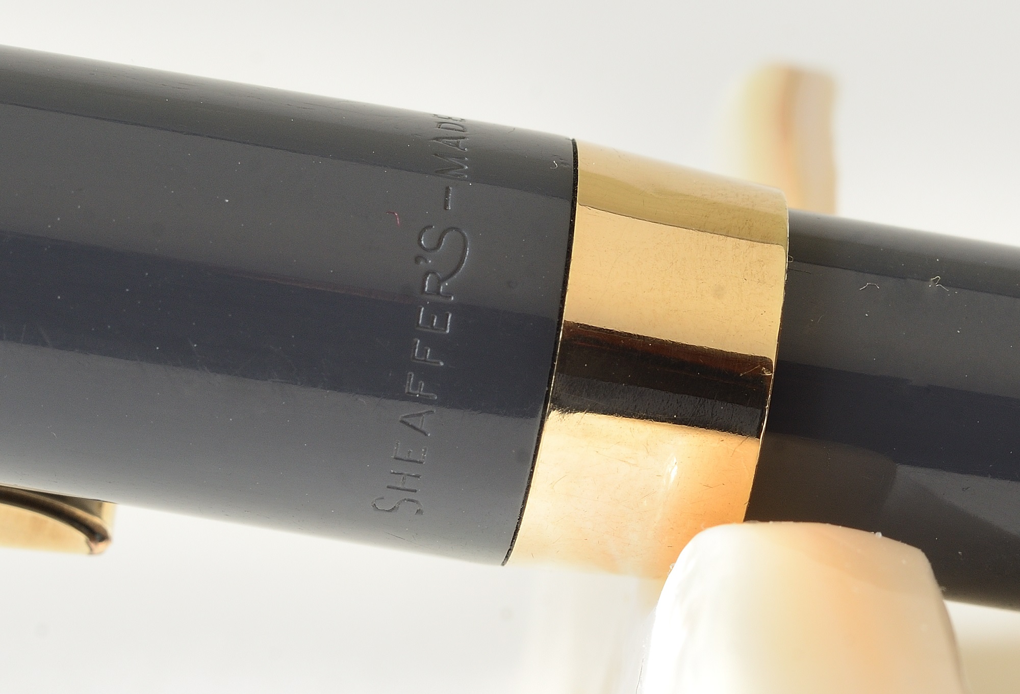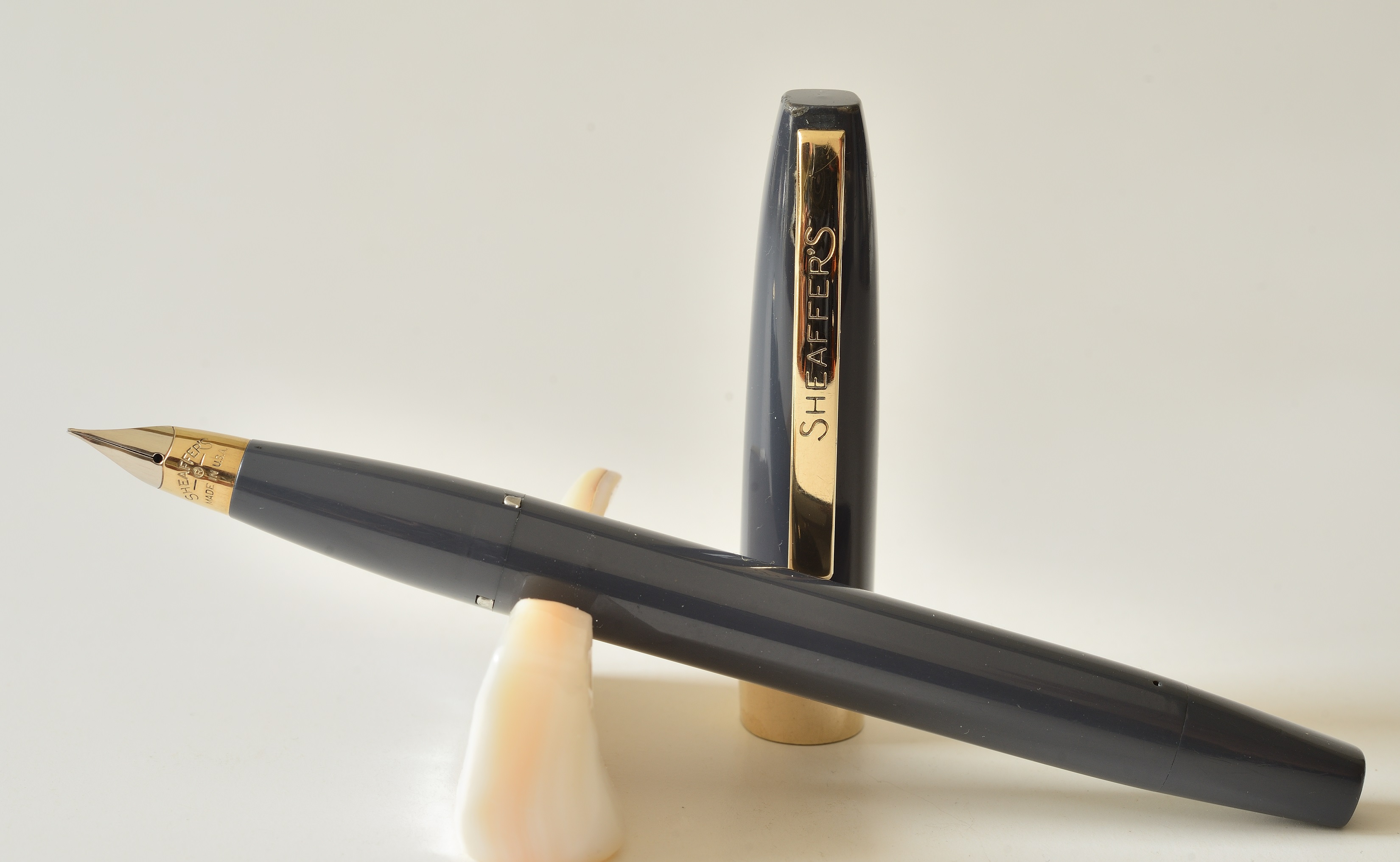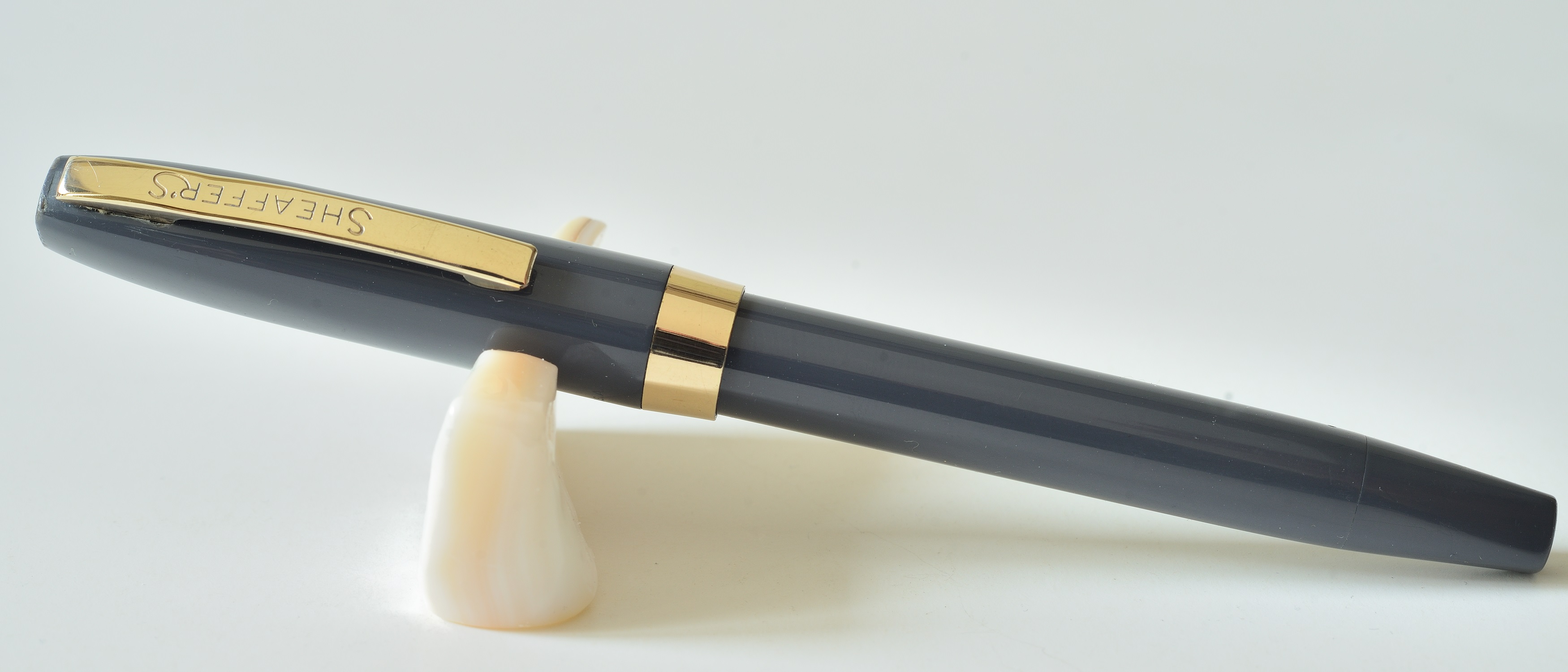 La Sheaffer's è in resina plastica grigio scuro, scritta Sheaffer'S incisa sulla clip e sul bordo del cappuccio insieme al Made in USA,