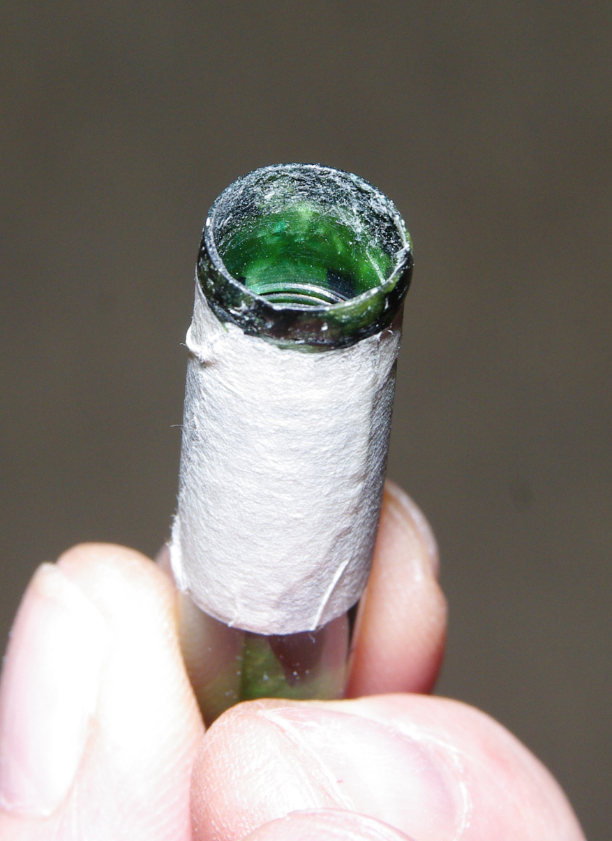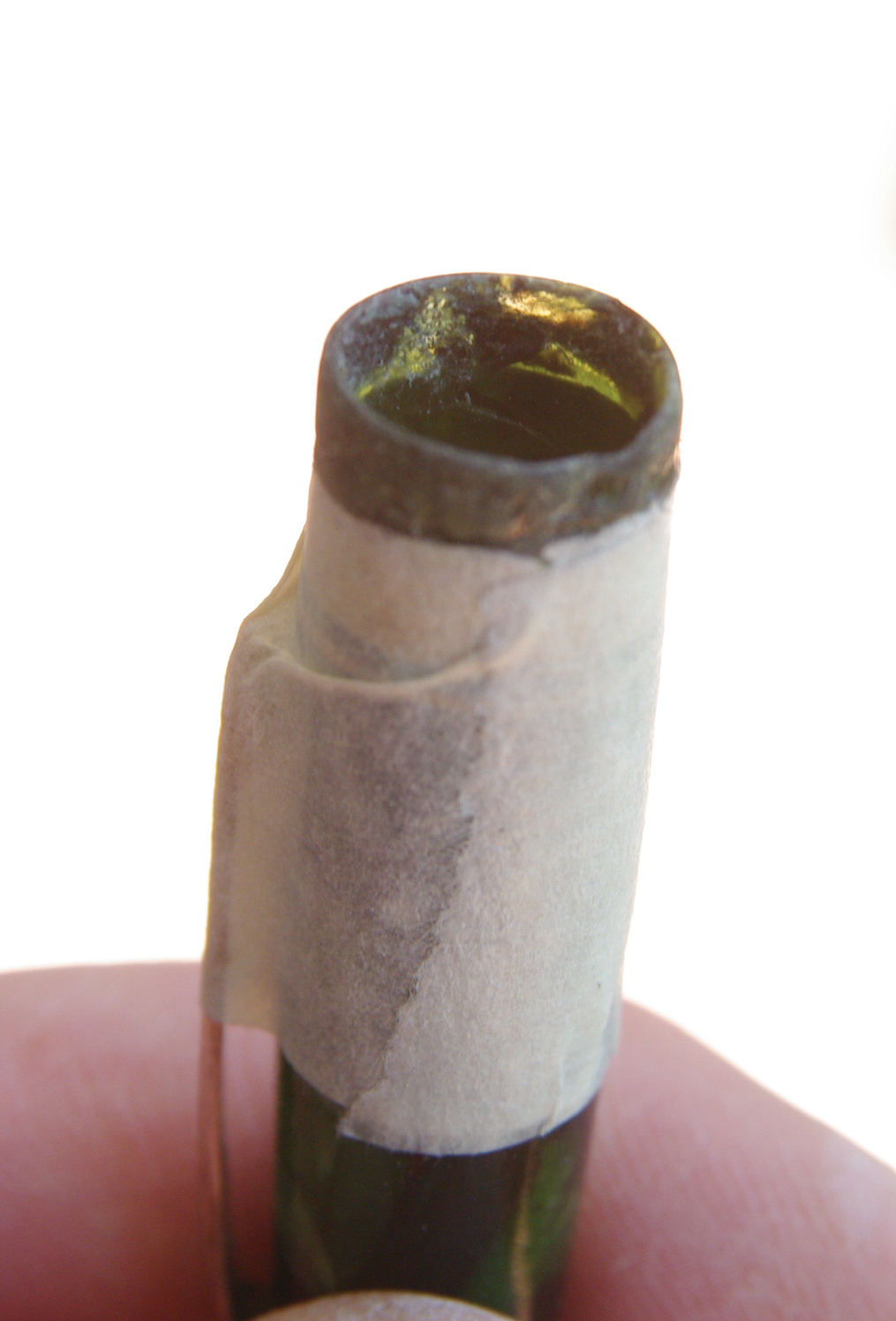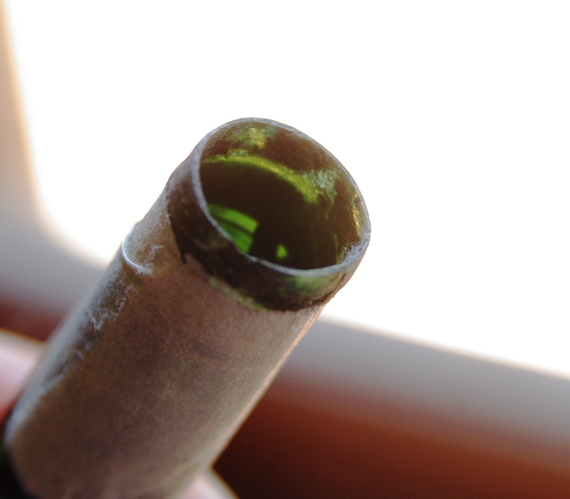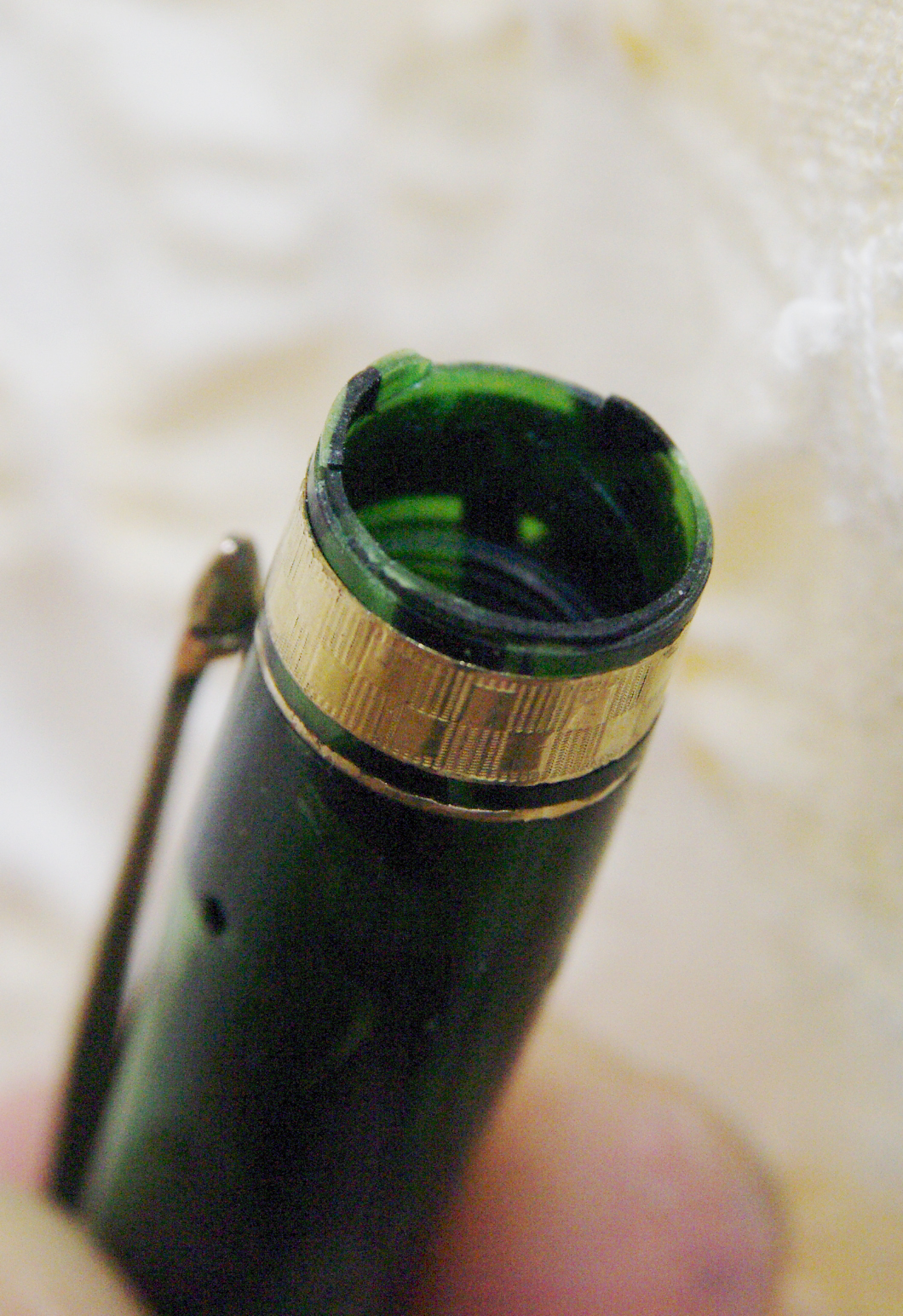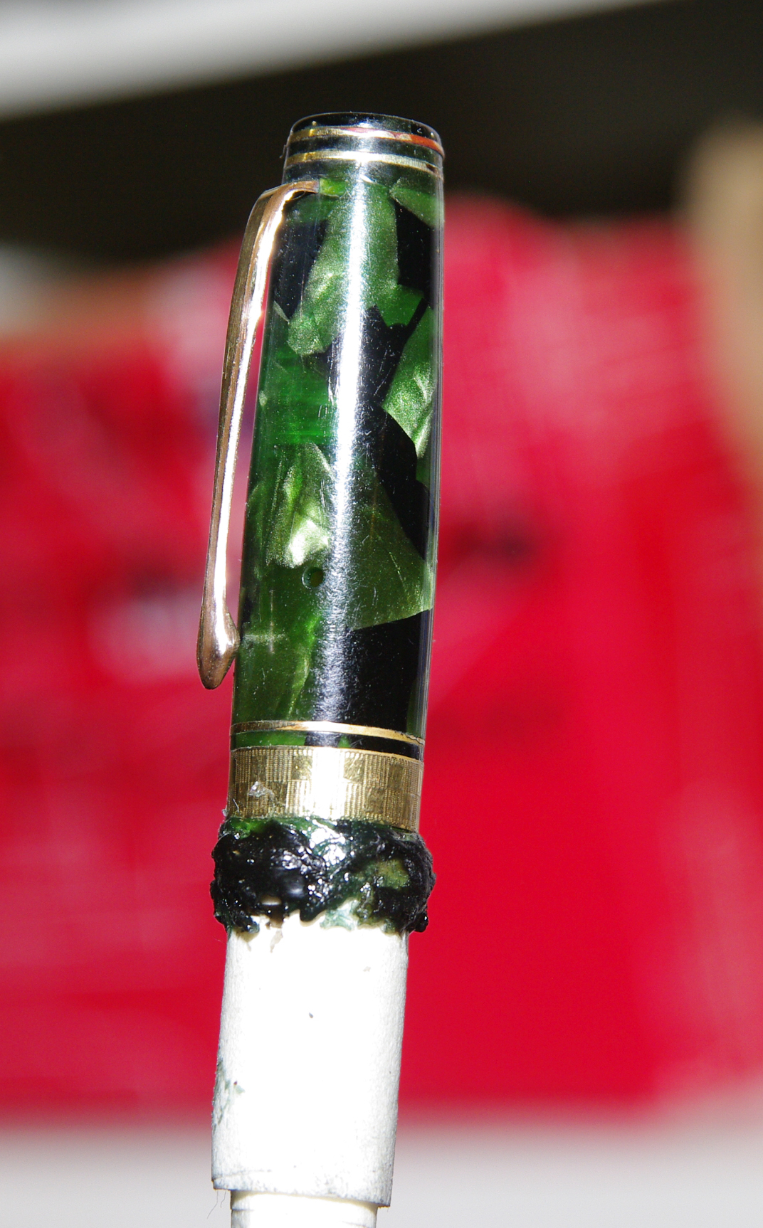 Si, ho liquefatto della celluloide verde e della celluloide nera ed ho ricostruito la parte inferiore del cappuccio.