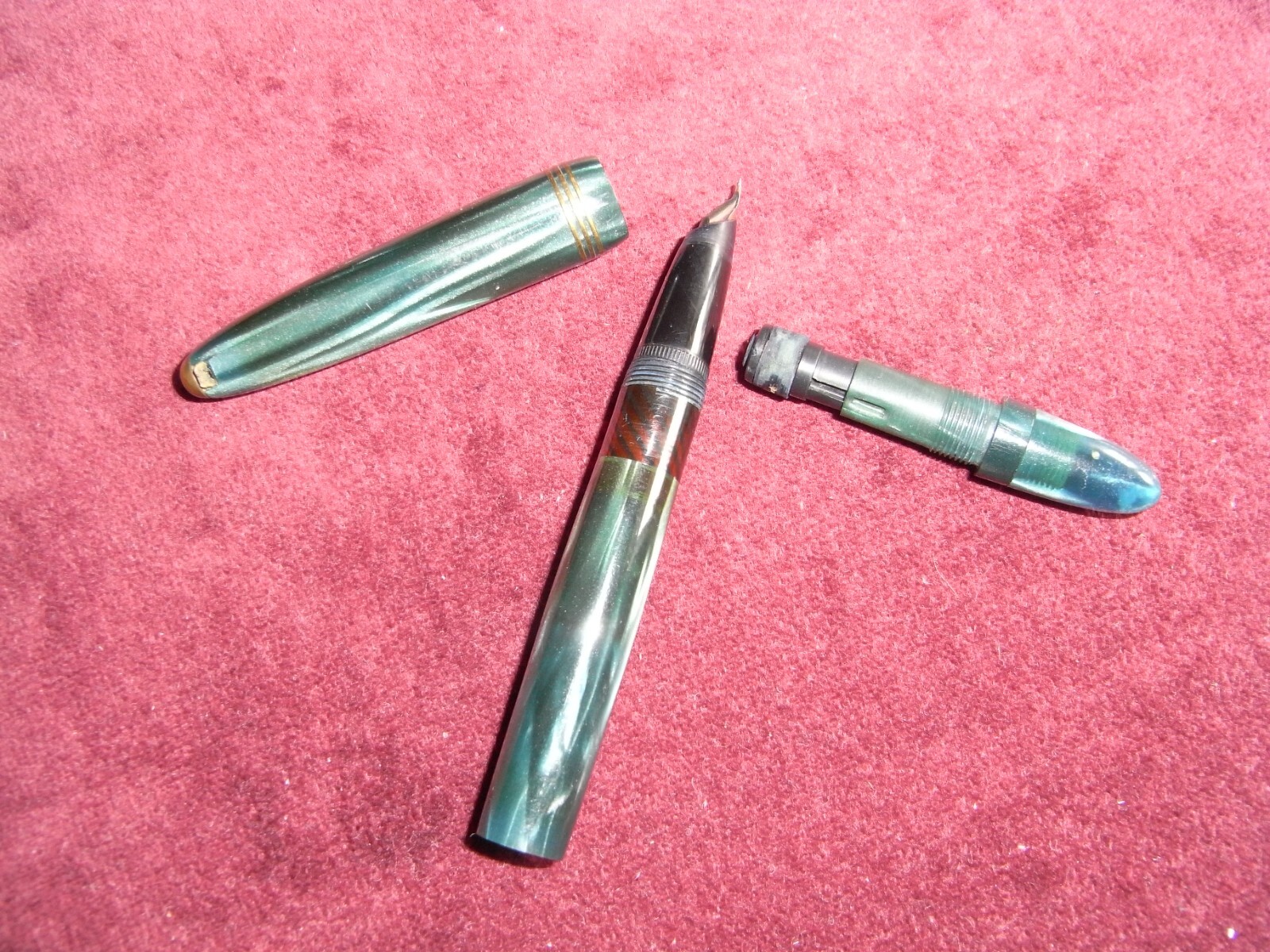 Effetti simili si ottenevano prima della celluloide con un tipo di bachelite, che è stata usata pochissimo per le penne e non Italia, e con la galalite, anch'essa usata poco e non so se in Italia. E comunque la galatite puzza di formaggio... (e se la metti in ammollo succede un disastro!)