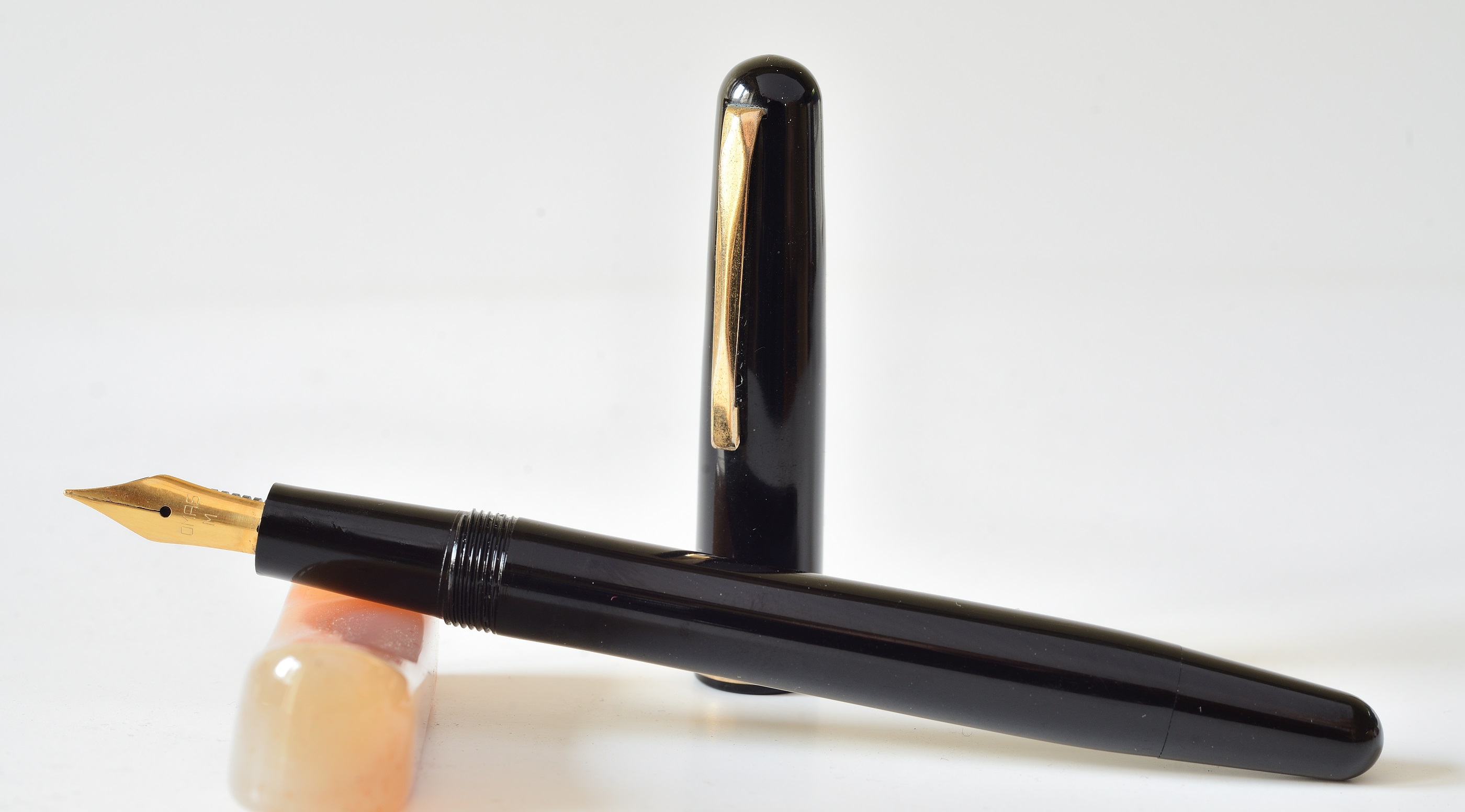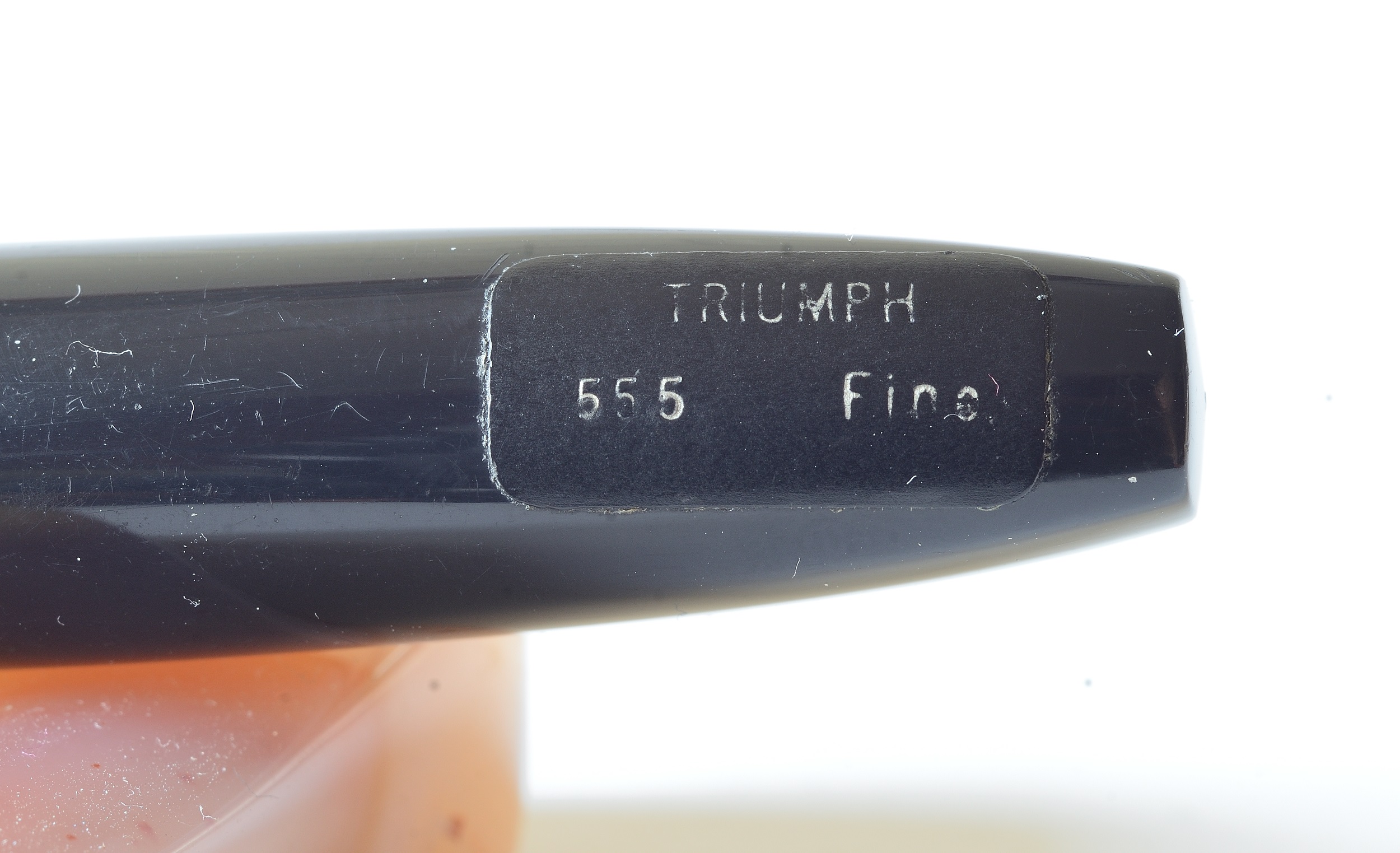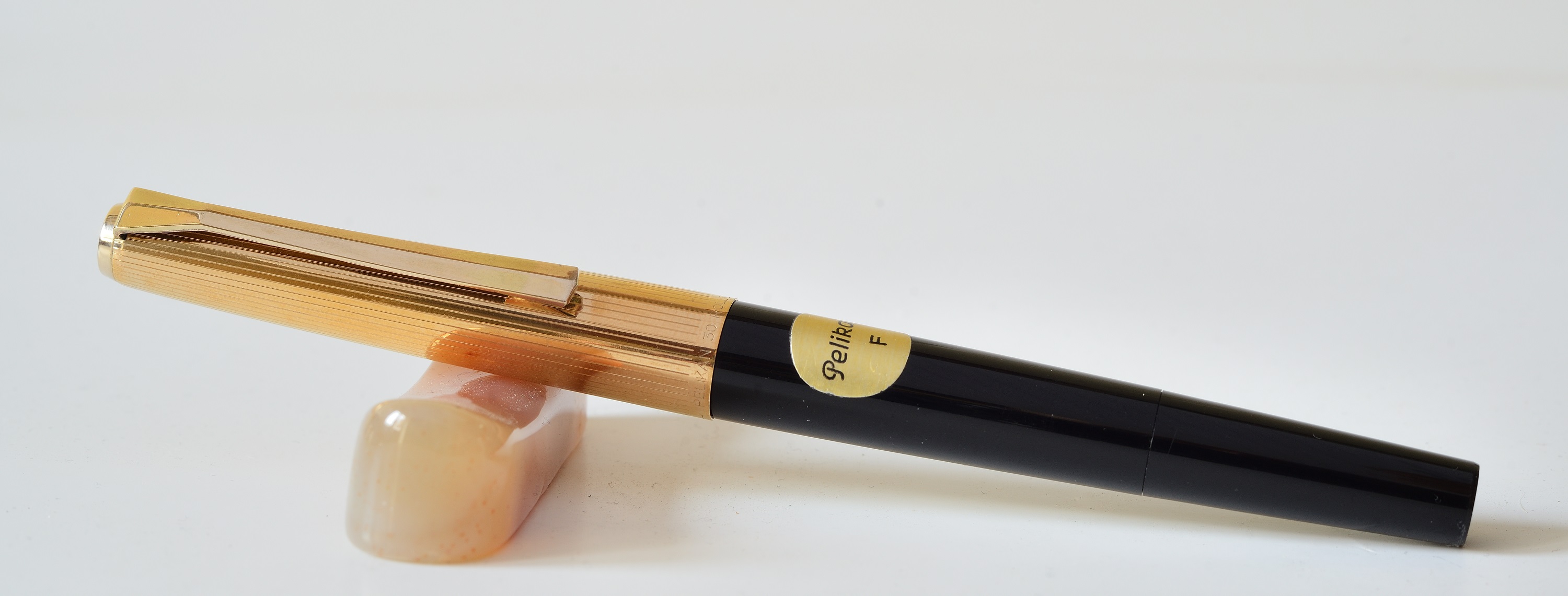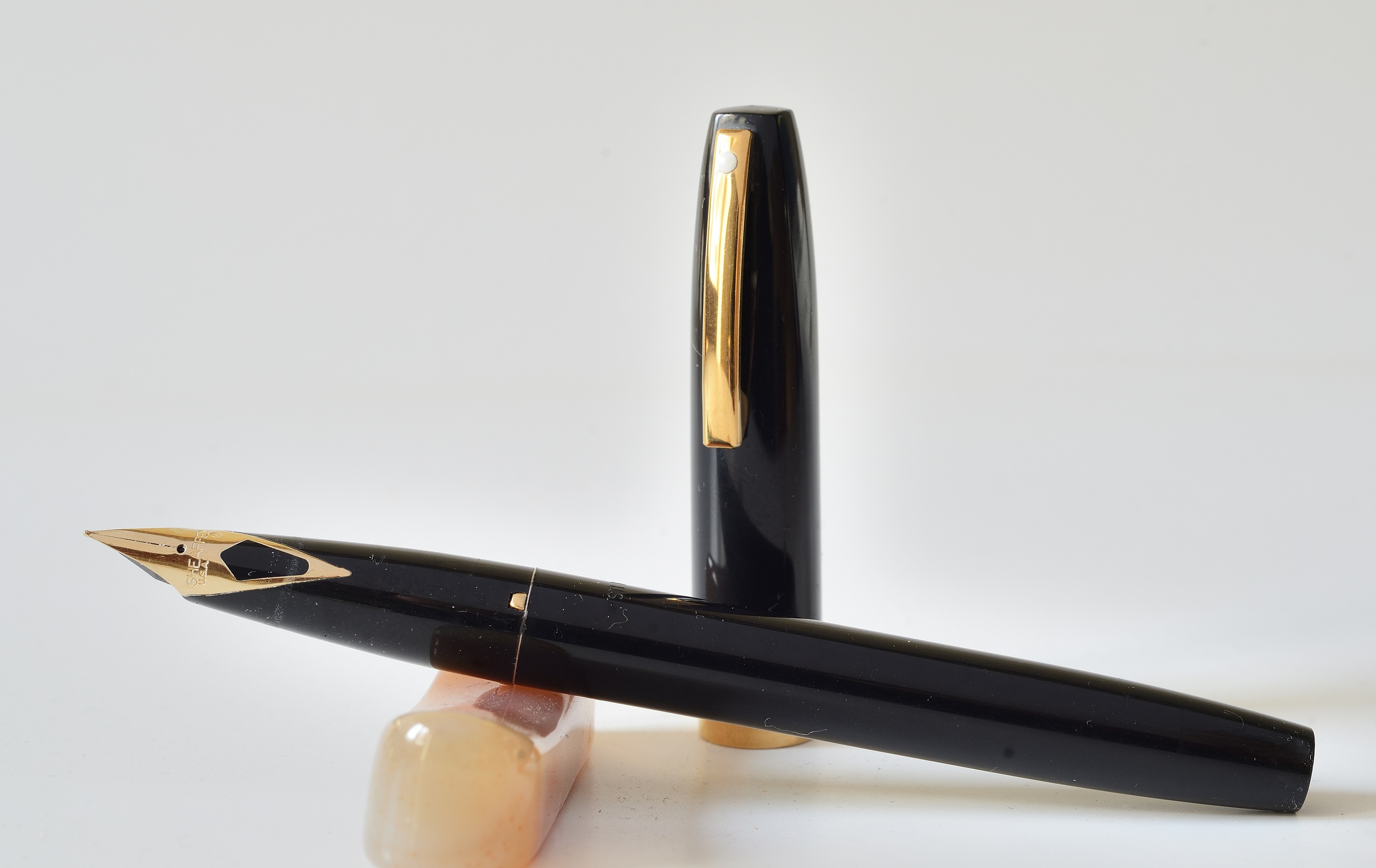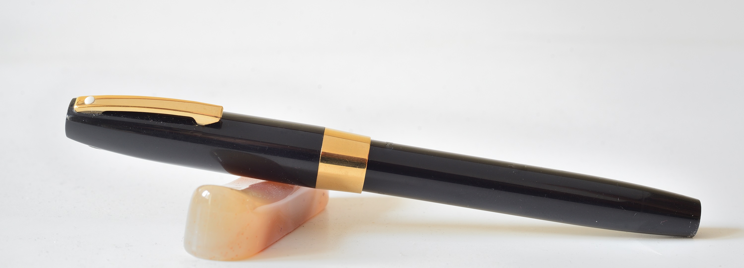La prima è una Sheaffer Triumph 555, caricamento a cartuccia/converter, pennino intarsiato F in acciaio dorato , mi trovavo in casa, regalatami tempo fa, una sezione Sheaffer con pennino in oro 14 Kt, orfana del corpo, una veloce sostituzione e magicamente la 555 si trasforma in 550.