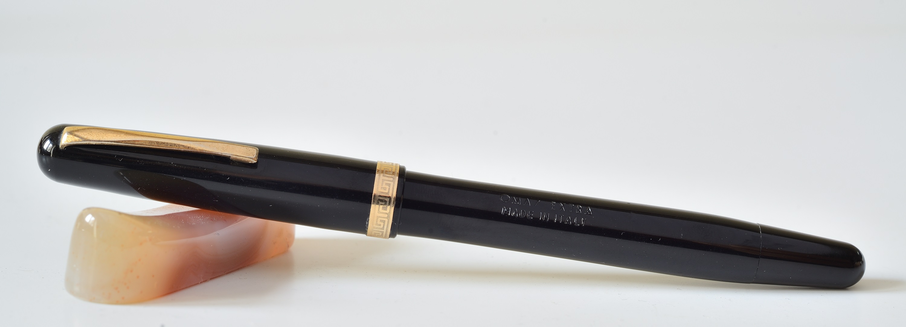 L'ultima è una semplice Omas Extra, pennino in acciaio dorato, scritta Omas al corpo con la S inclinata e stilizzata.