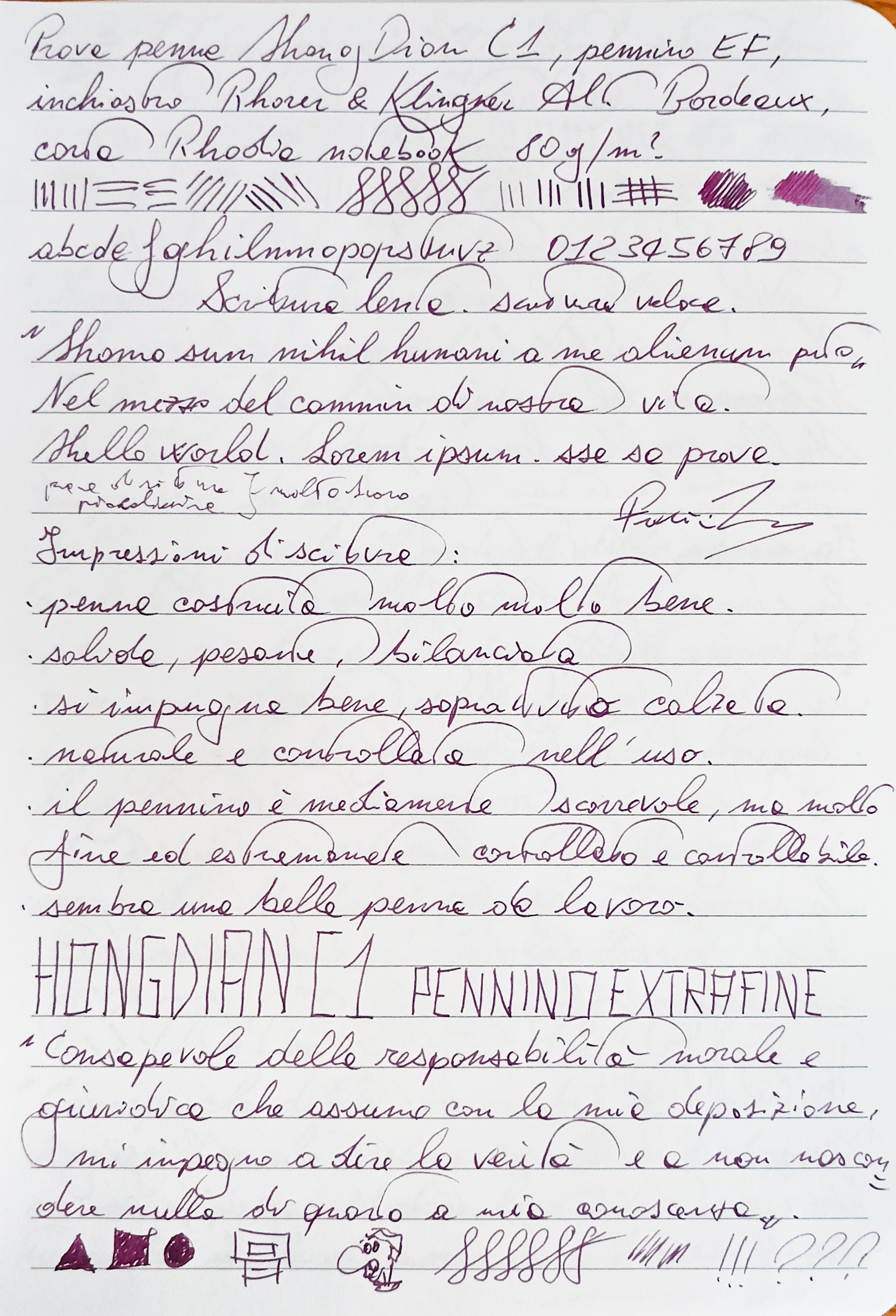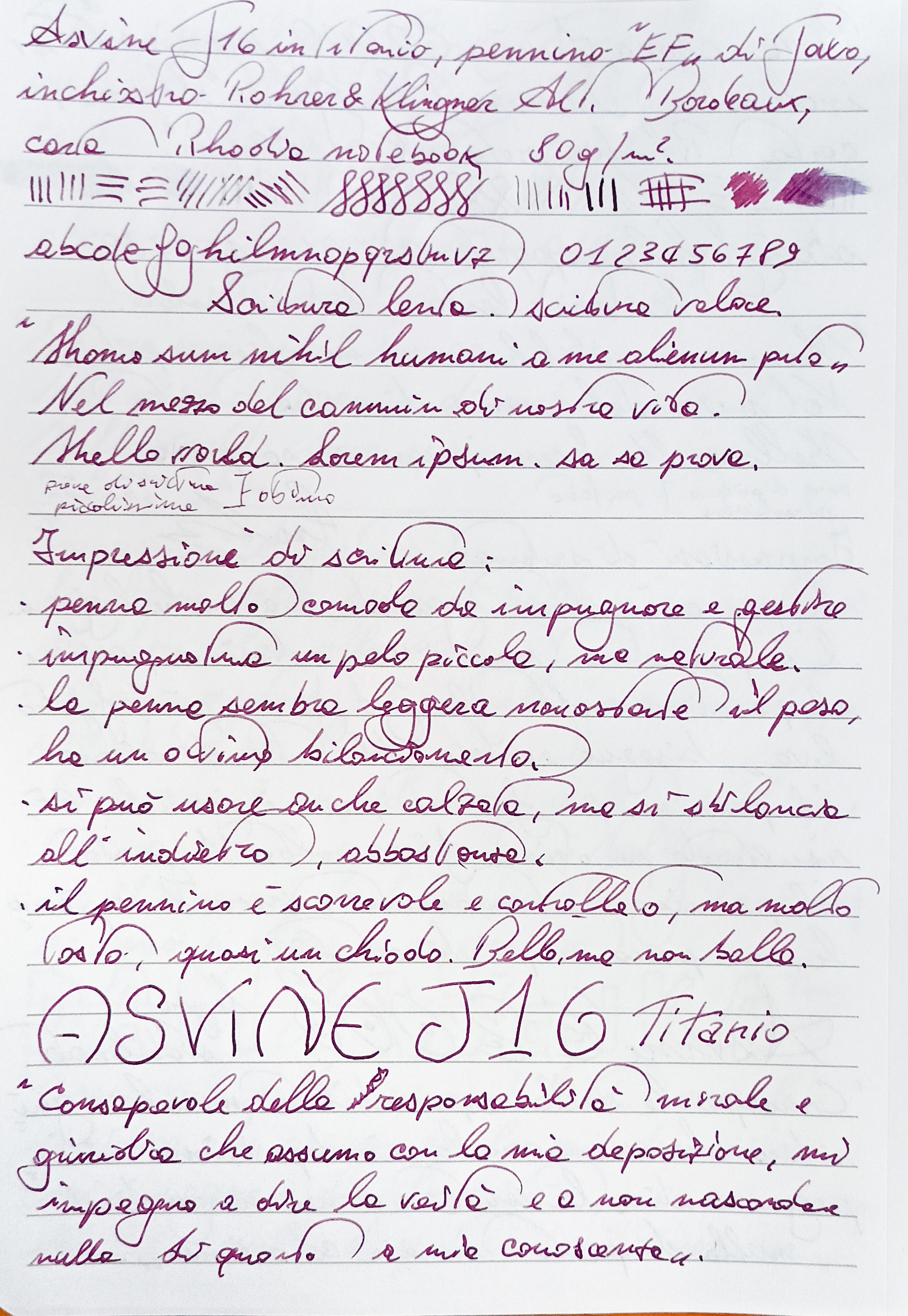 L'unico problema che ha è che... è cangiante. A seconda della penna usata diventa molto più chiaro o molto più scuro e sinceramente non me lo so spiegare. Con alcune penne sembra quasi un rosa antico, con altre un rosso bordeaux vero, con altre un viola puro.