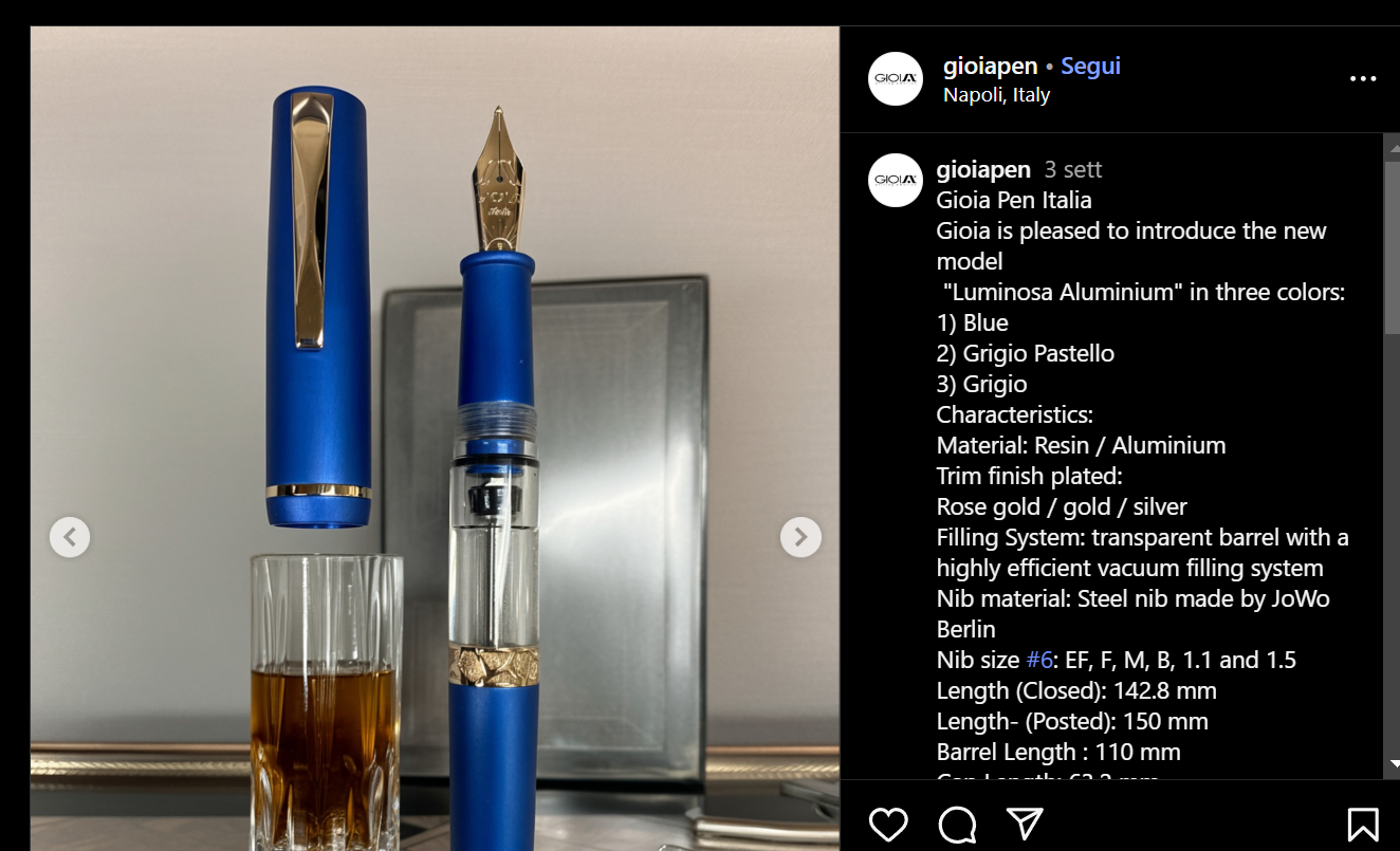 Scrivo da circa un mese con molta soddisfazione con una Gioia Pen perciò mi attrae anche questa Luminosa Alluminium.