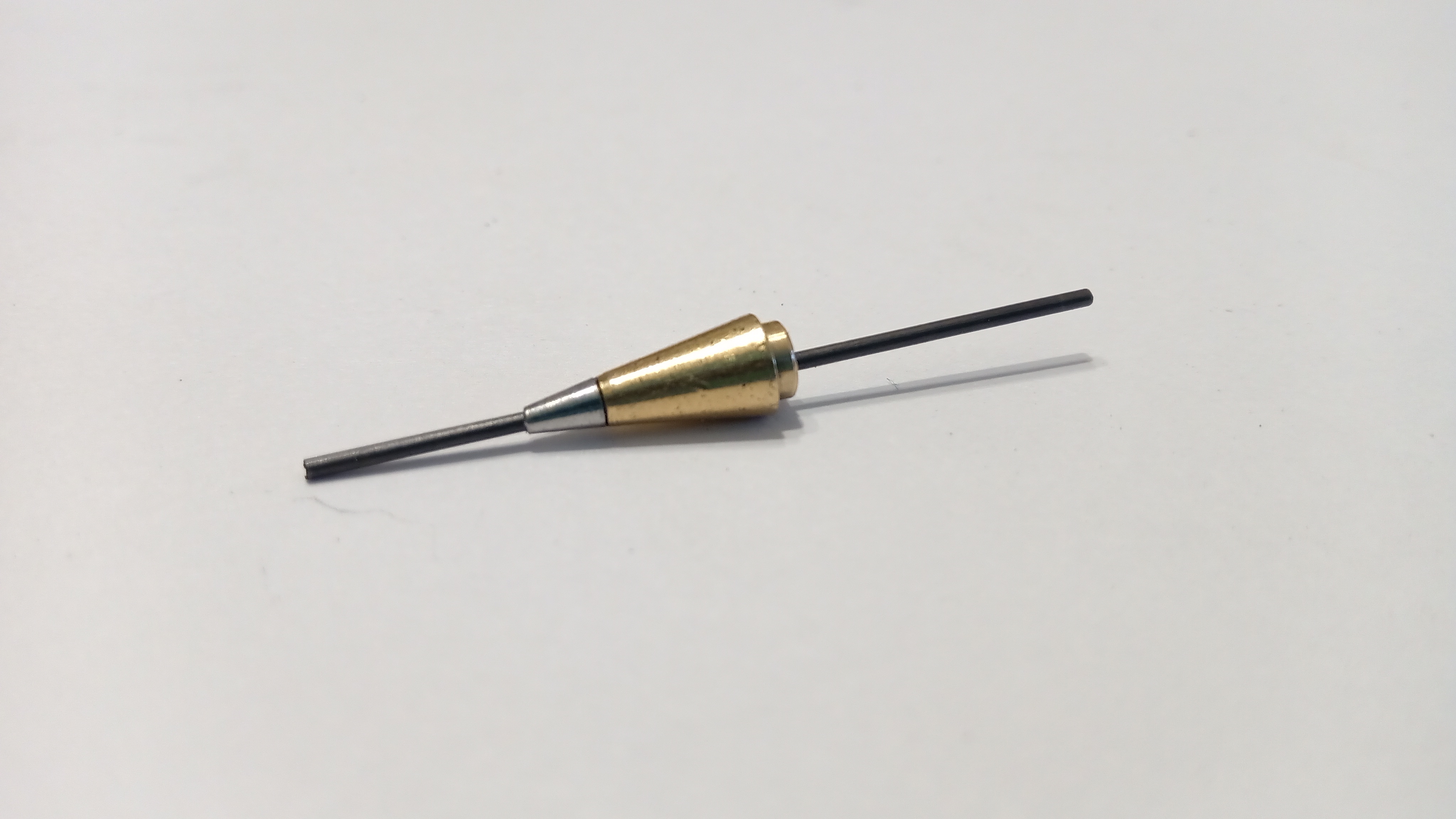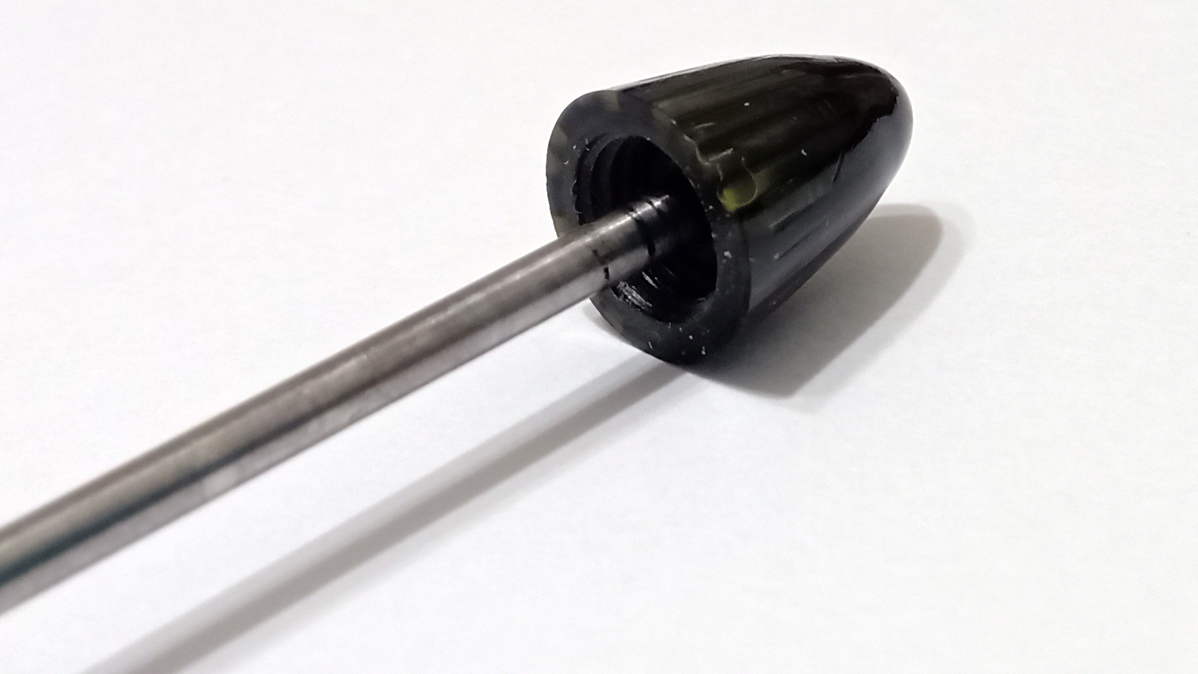 de este modo y con una pequeña vara de acero de extremo plano, como en el caso anterior, daremos golpecitos secos empujando el alimentador junto con la pluma hasta sacarlo del grip...