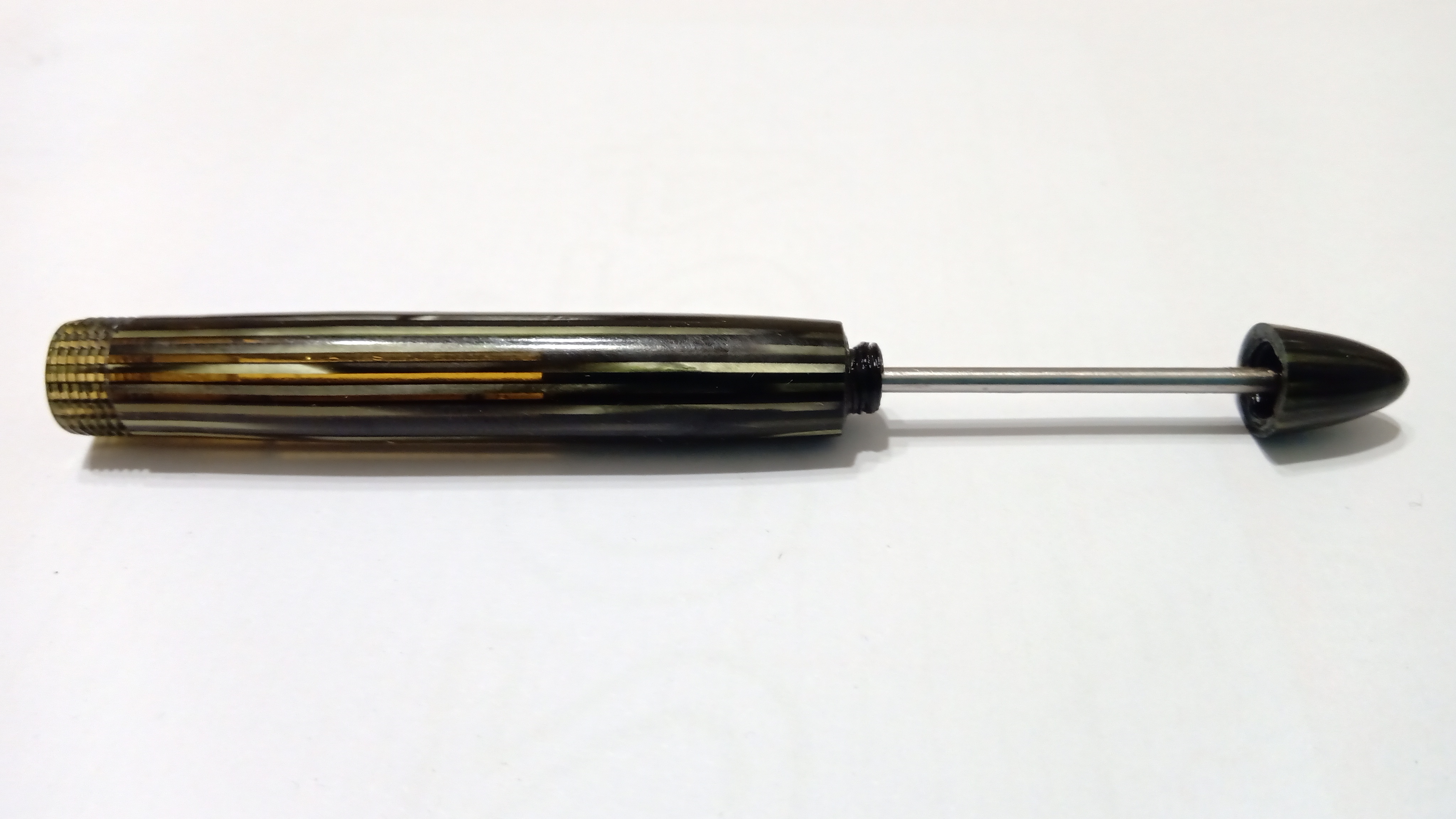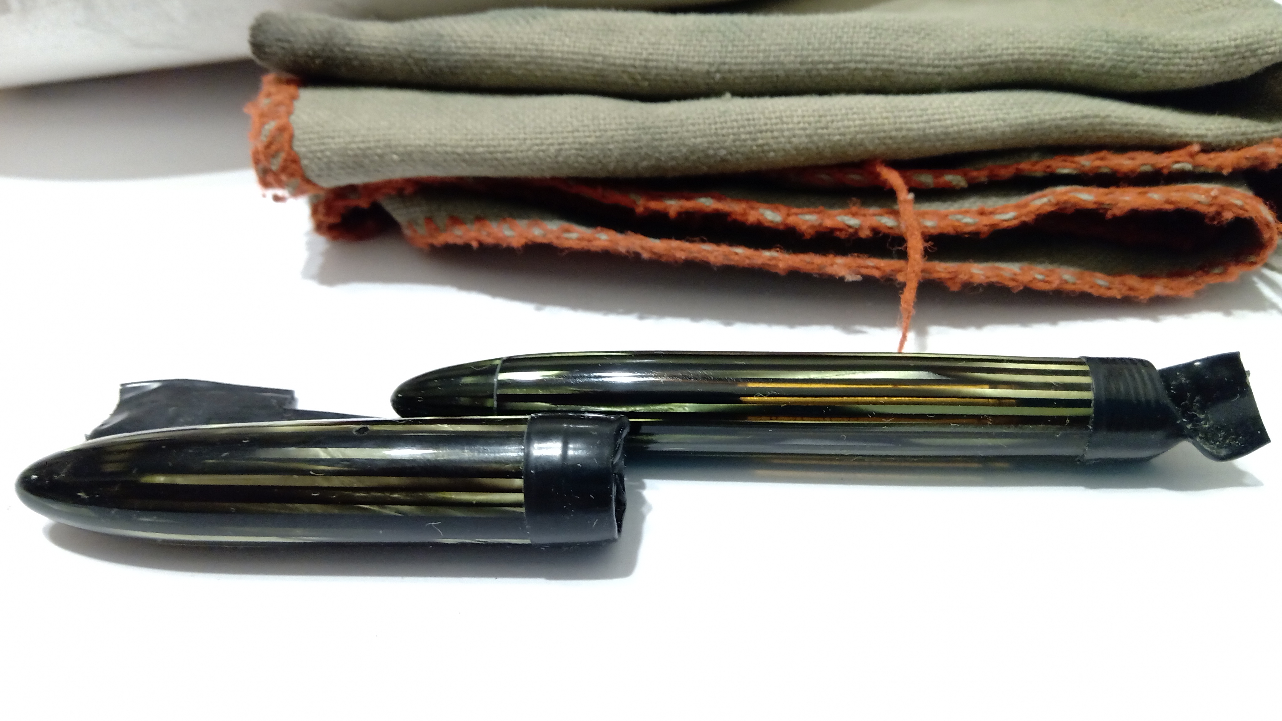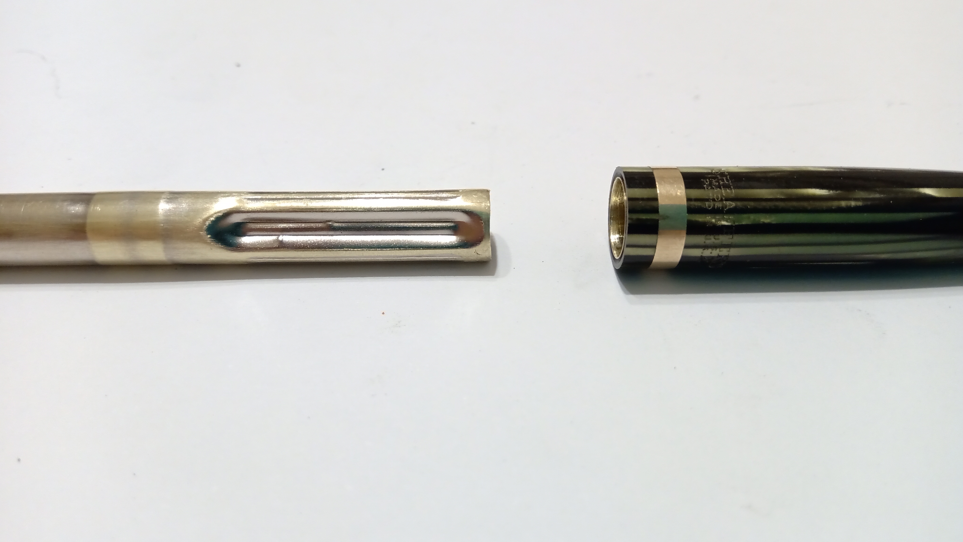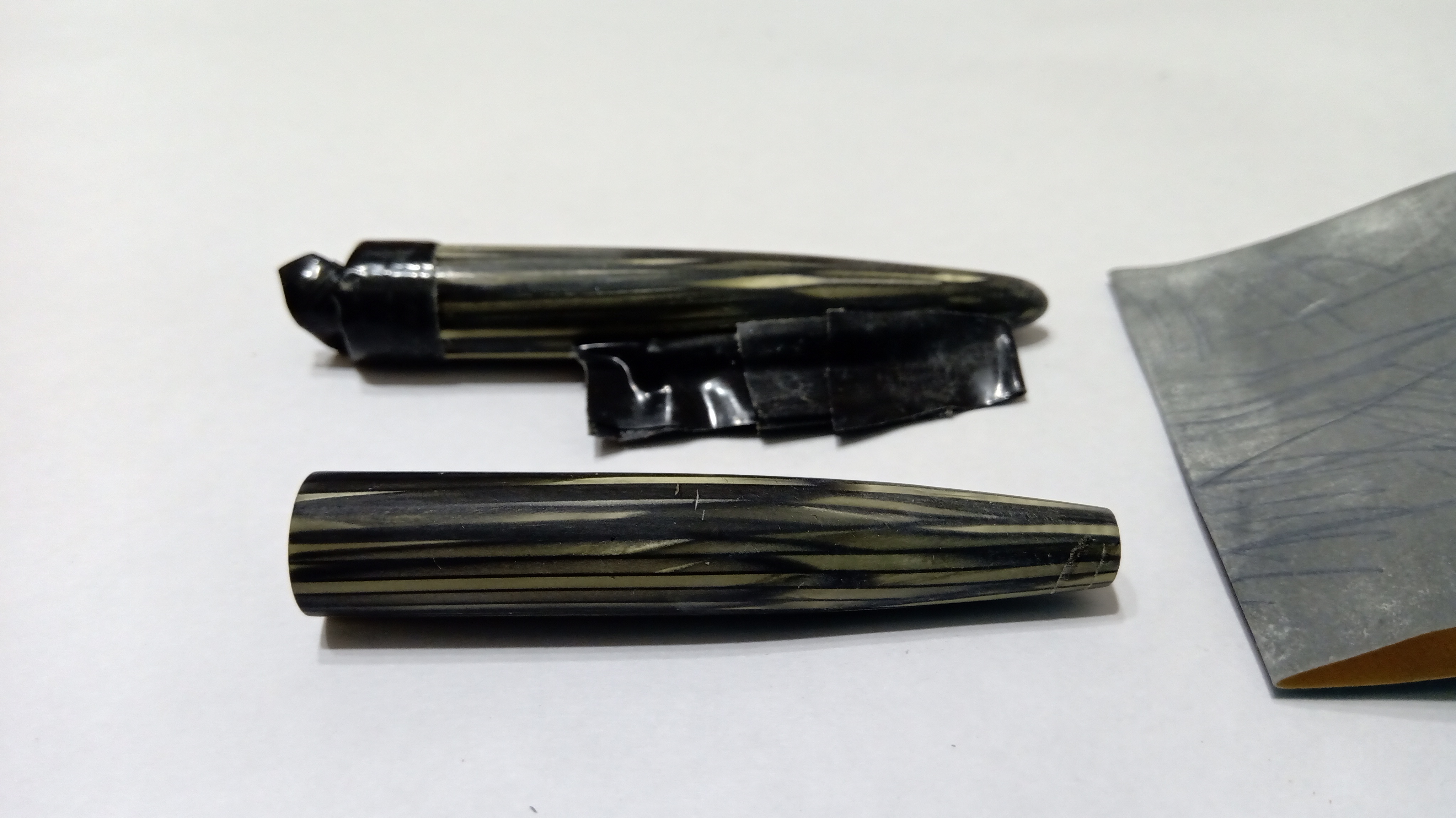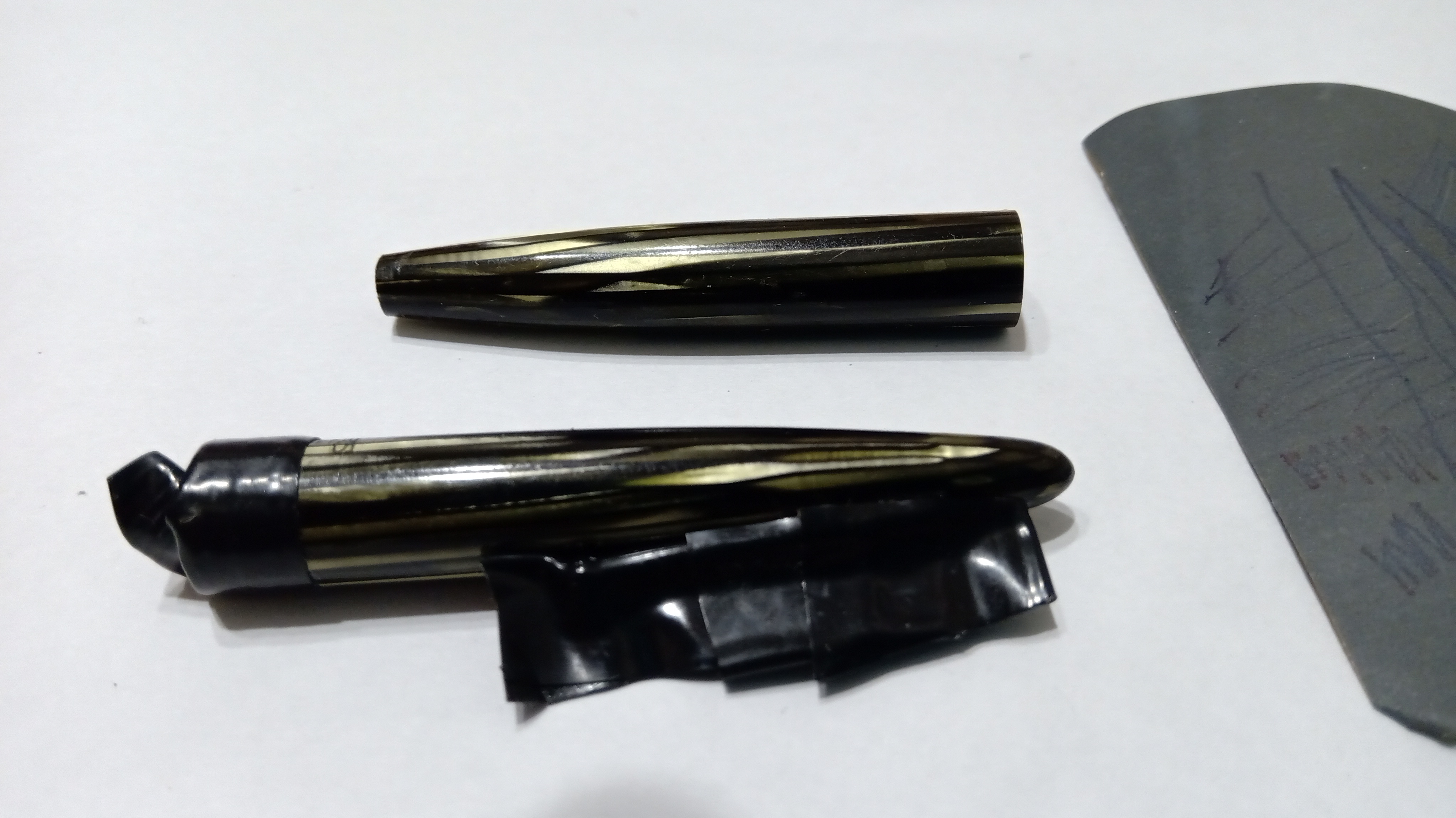 anche se, logicamente, dopo oltre 80 anni il sistema di caricamento era mal riparato e completamente inutilizzabile, alcune parti dorate erano deteriorate, il pennino, sebbene intatto, aveva i becchi completamente chiusi e le superfici avevano perso completamente la loro lucentezza originale...