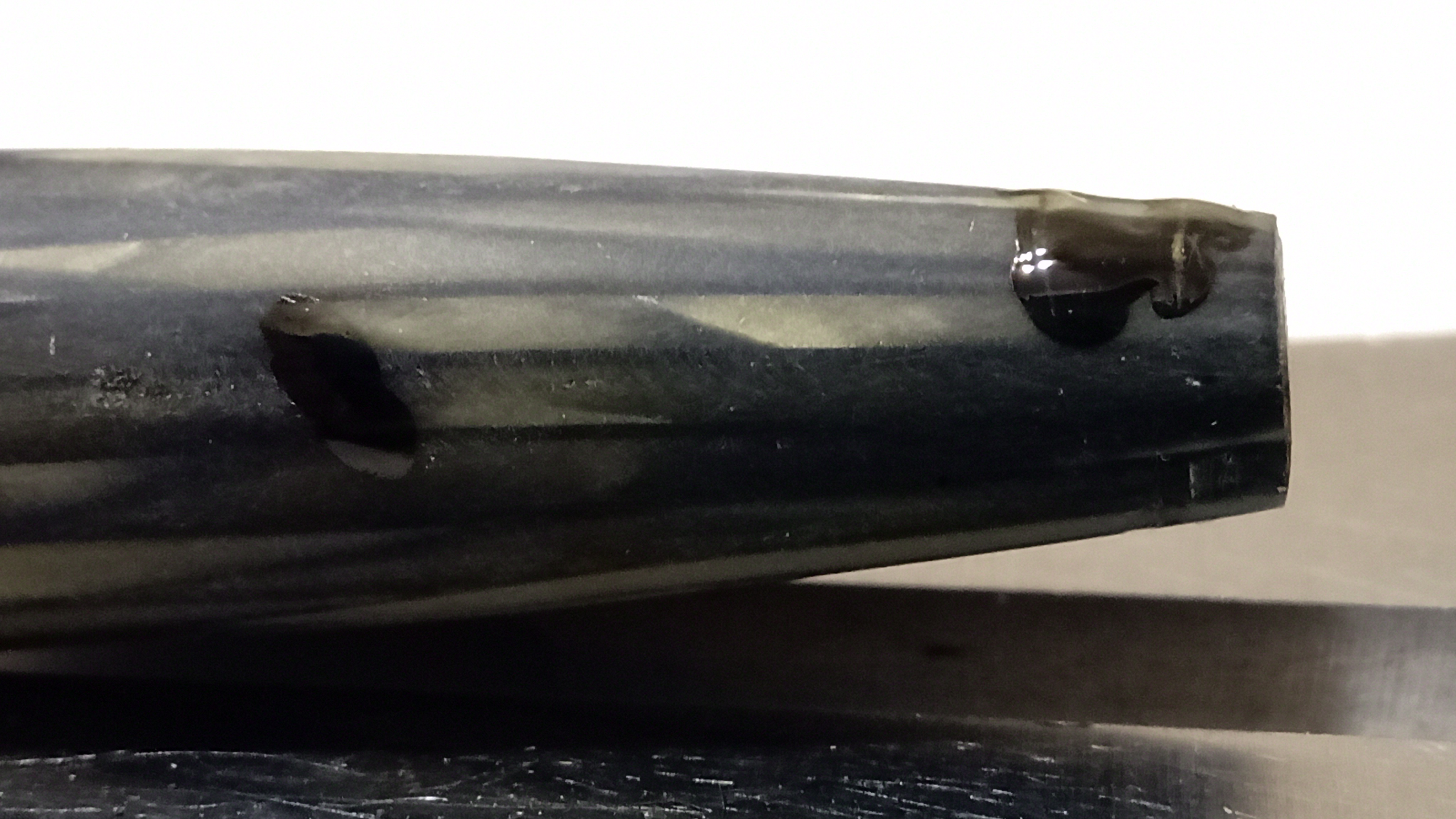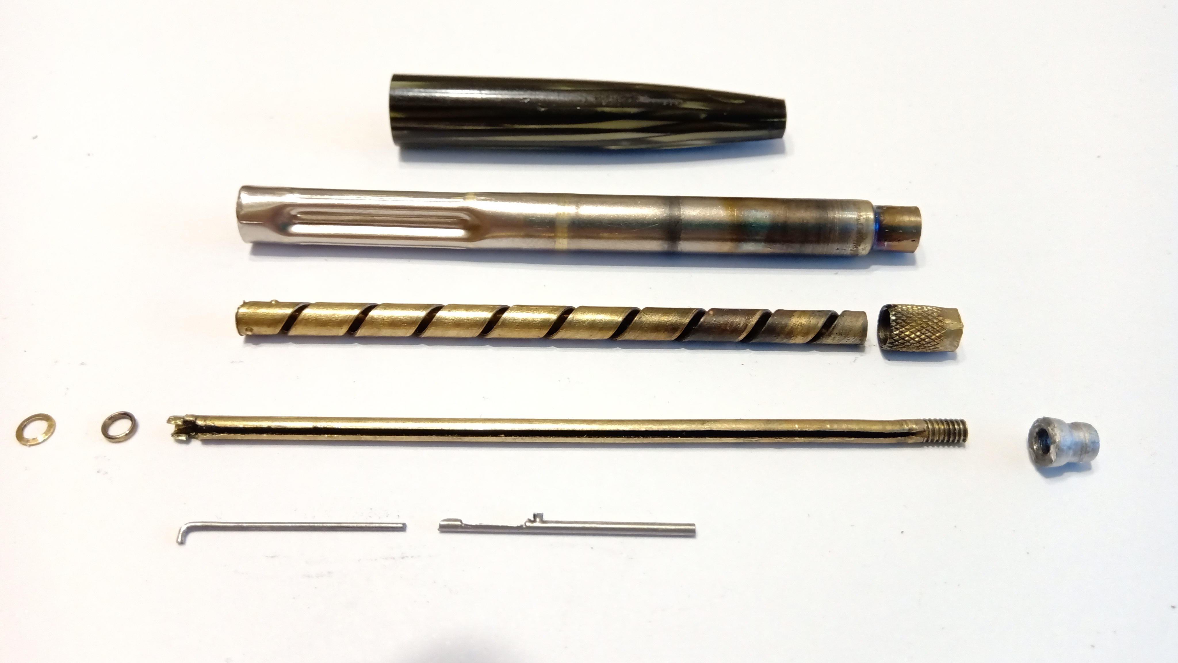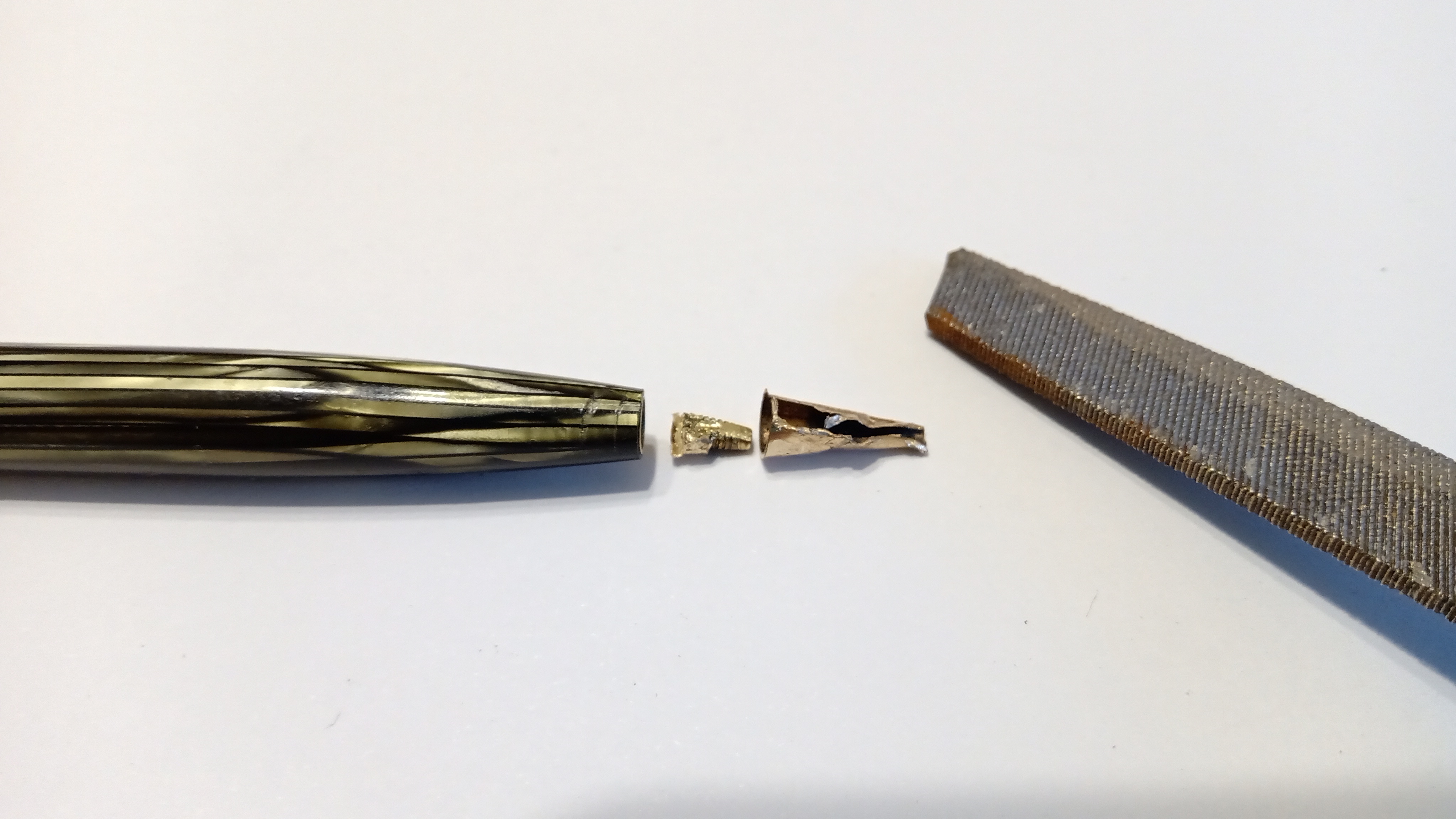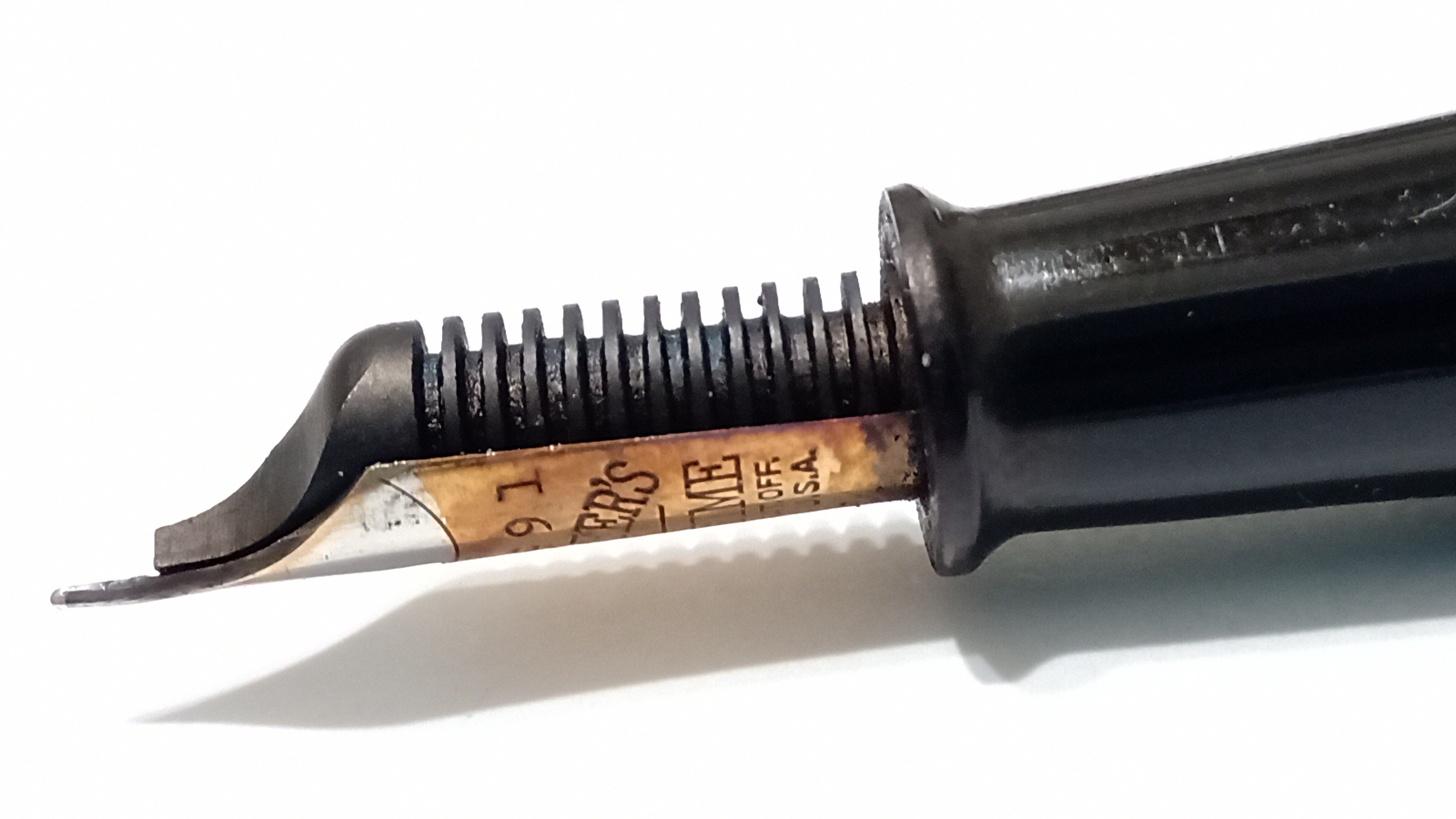 anche se, logicamente, dopo oltre 80 anni il sistema di caricamento era mal riparato e completamente inutilizzabile, alcune parti dorate erano deteriorate, il pennino, sebbene intatto, aveva i becchi completamente chiusi e le superfici avevano perso completamente la loro lucentezza originale...
