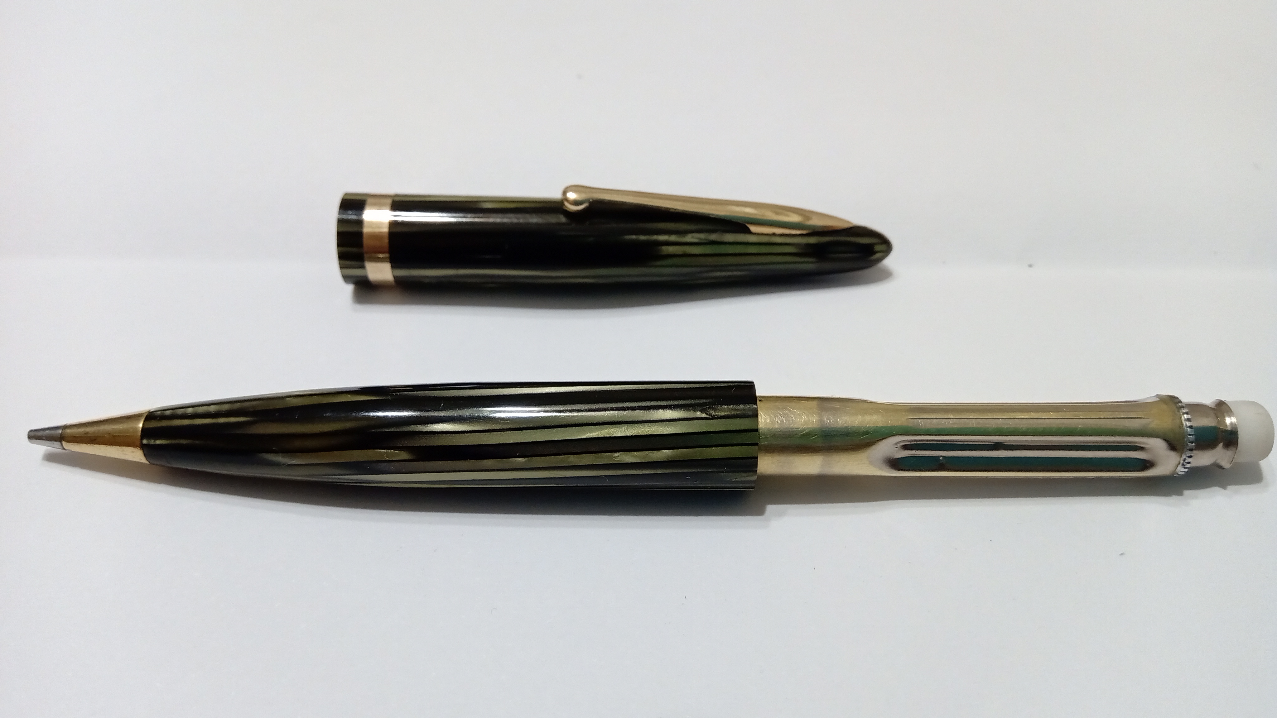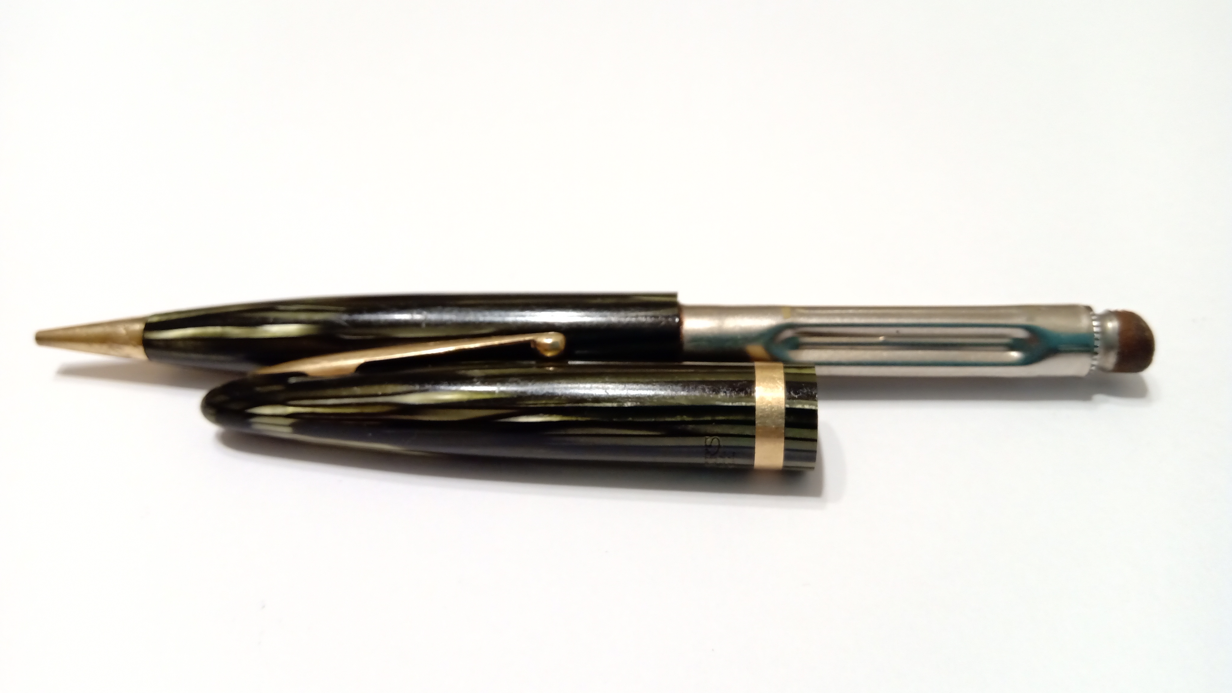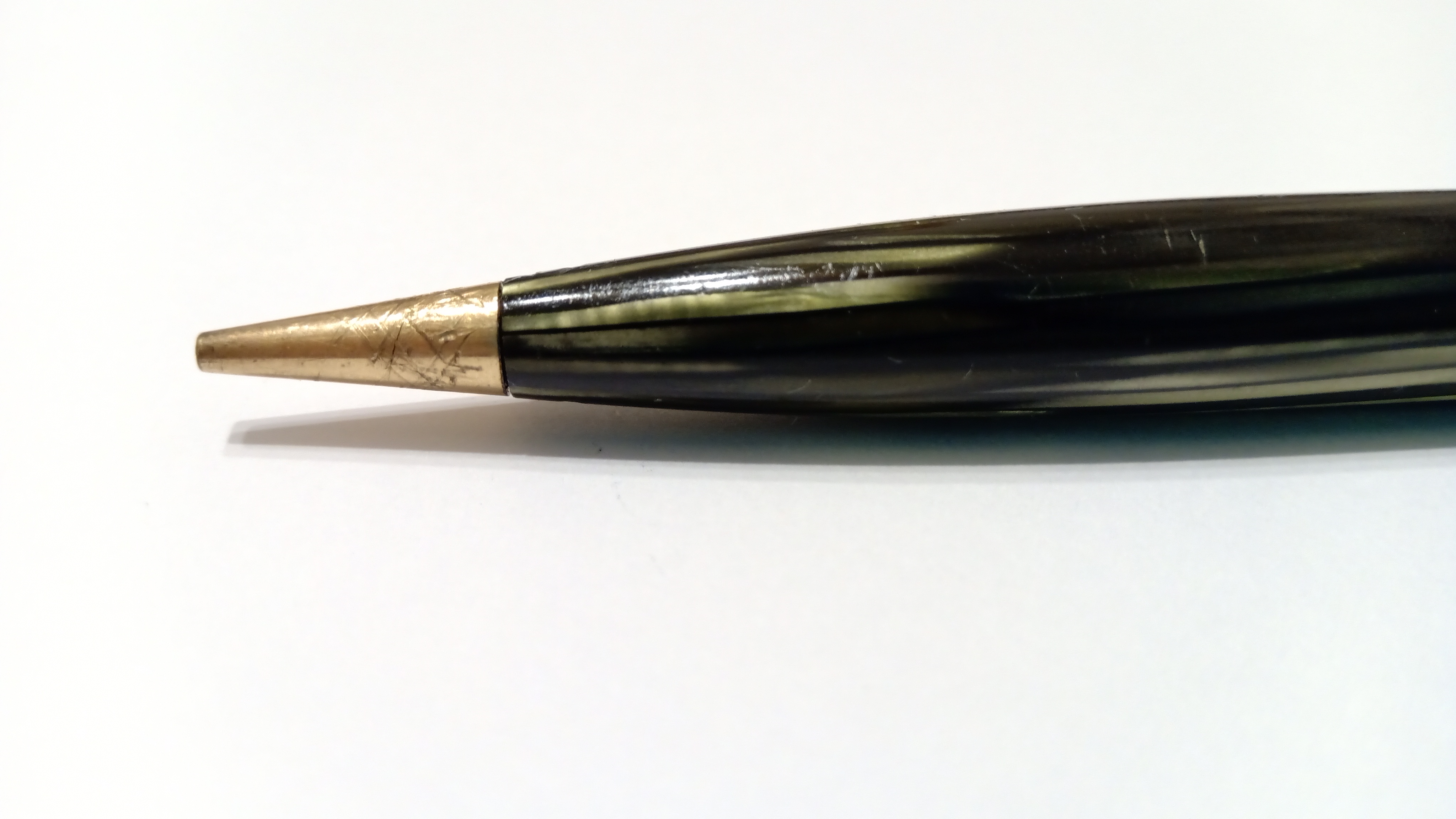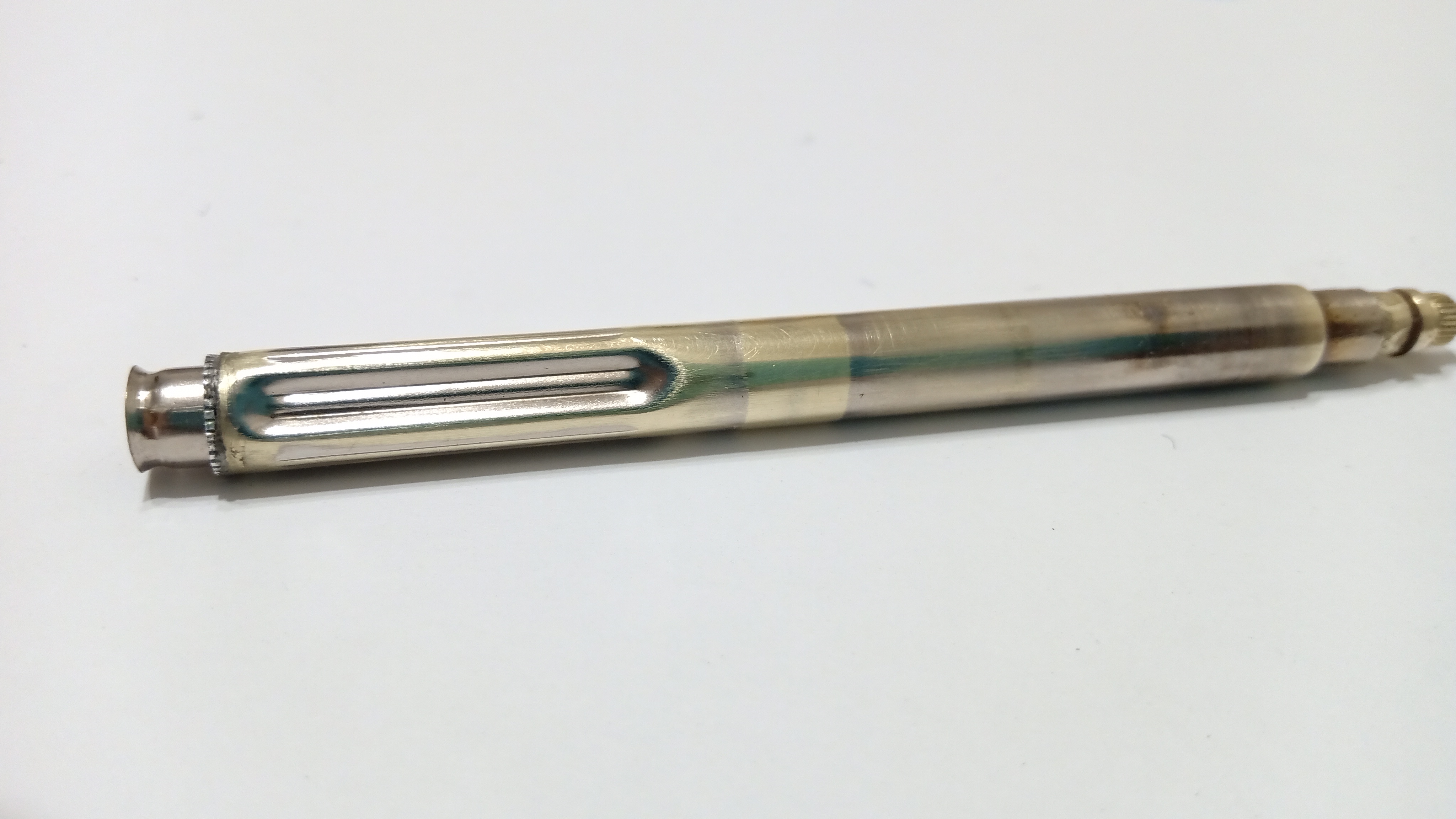 Per quanto riguarda la matita meccanica, è stata acquistata su eBay da un venditore statunitense e, sinceramente, non avrei mai immaginato che fosse in condizioni così pessime, tanto che credo che il suo restauro mi abbia dato molto più lavoro rispetto alla penna stilografica in questione. Anche se la superficie e le dorature erano in condizioni accettabili...