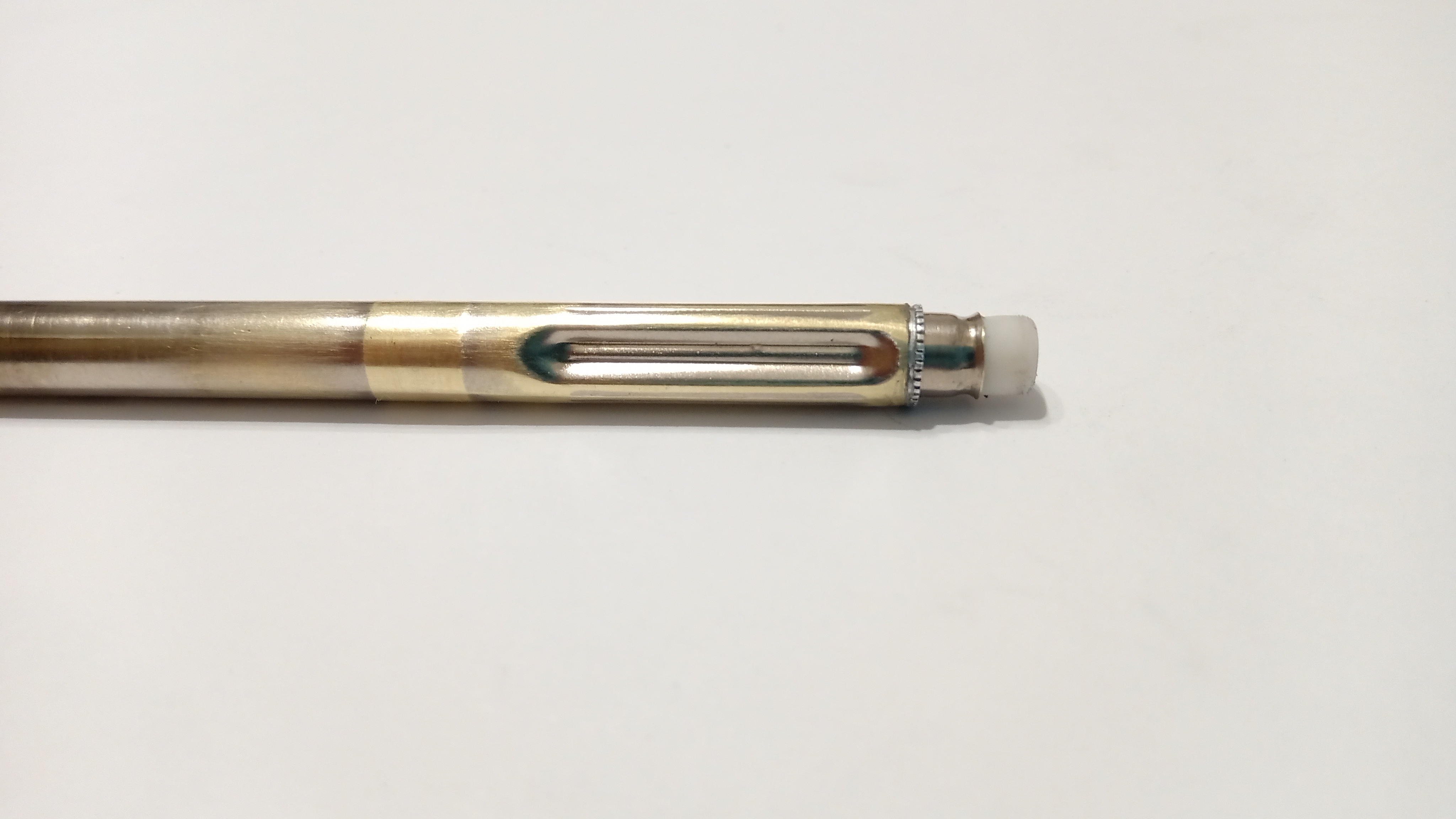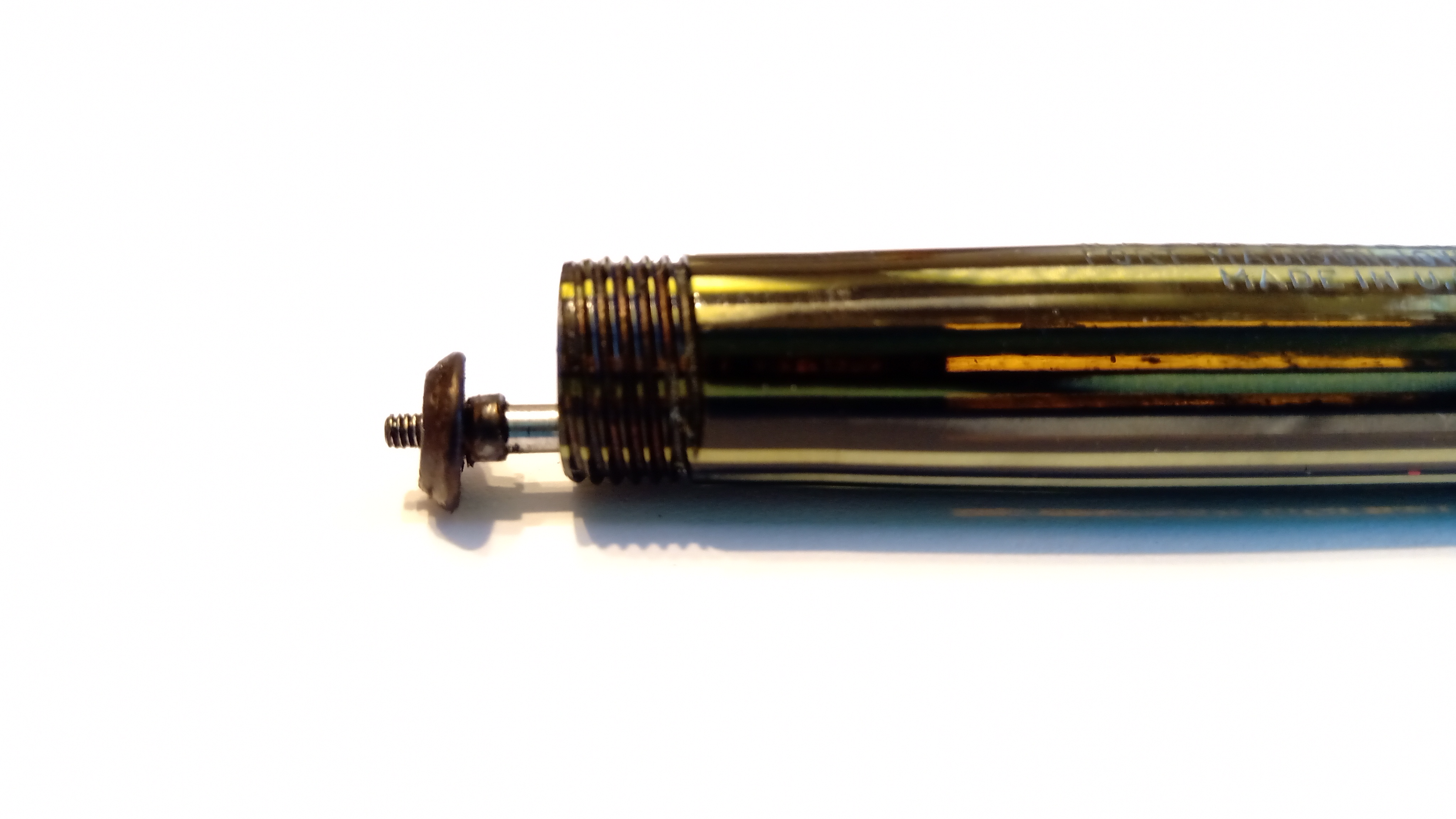 Respecto del lápiz mecánico, el mismo fué adquirido a través de eBay a un vendedor de EEUU, y realmente nunca pensé que estuviese en condiciones tan deplorables, tanto así que creo me dió bastante mas trabajo su restauración que la de la pluma fuente en cuestión. Si bien la superficie y los dorados estaban en condiciones aceptables...