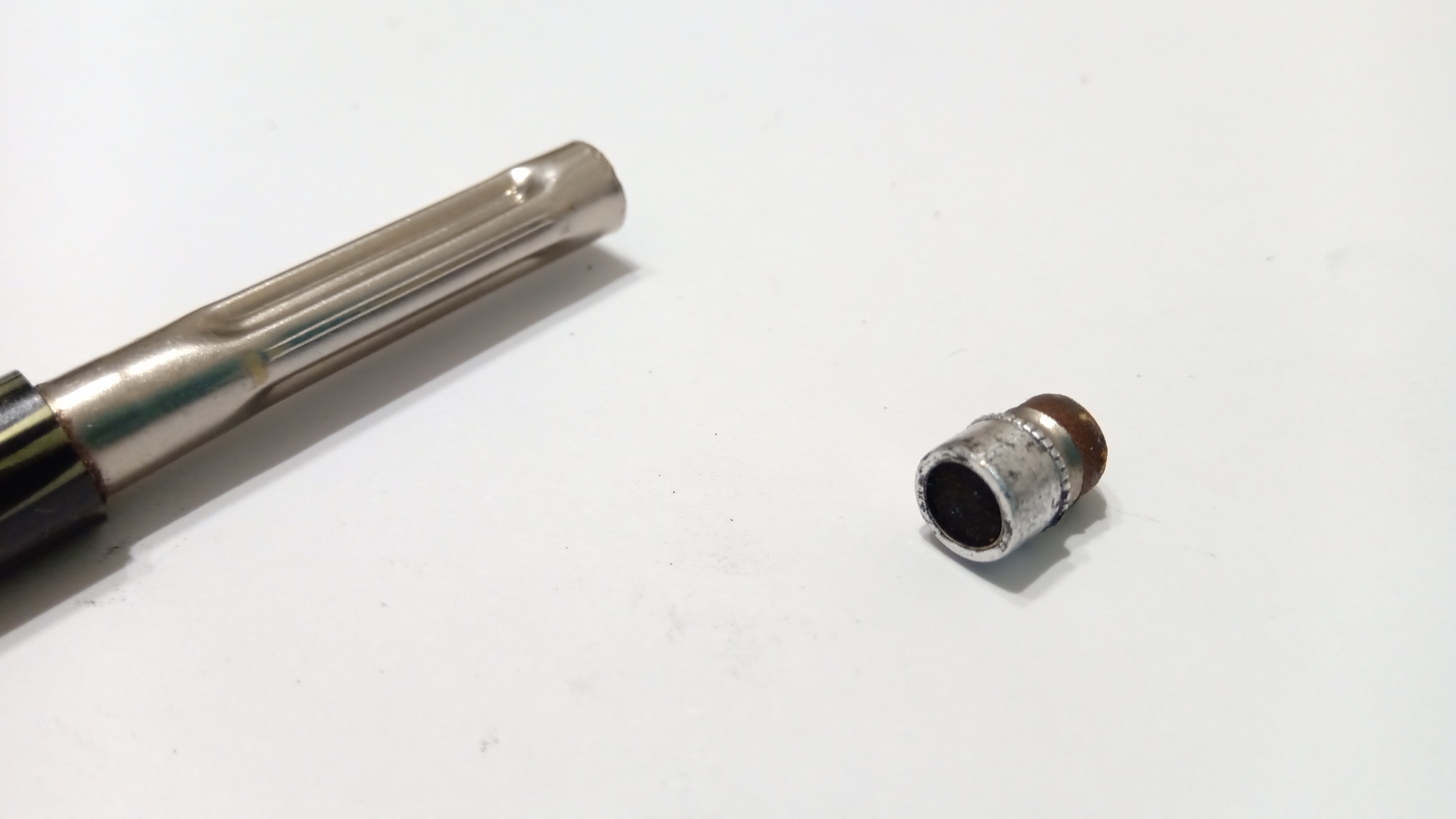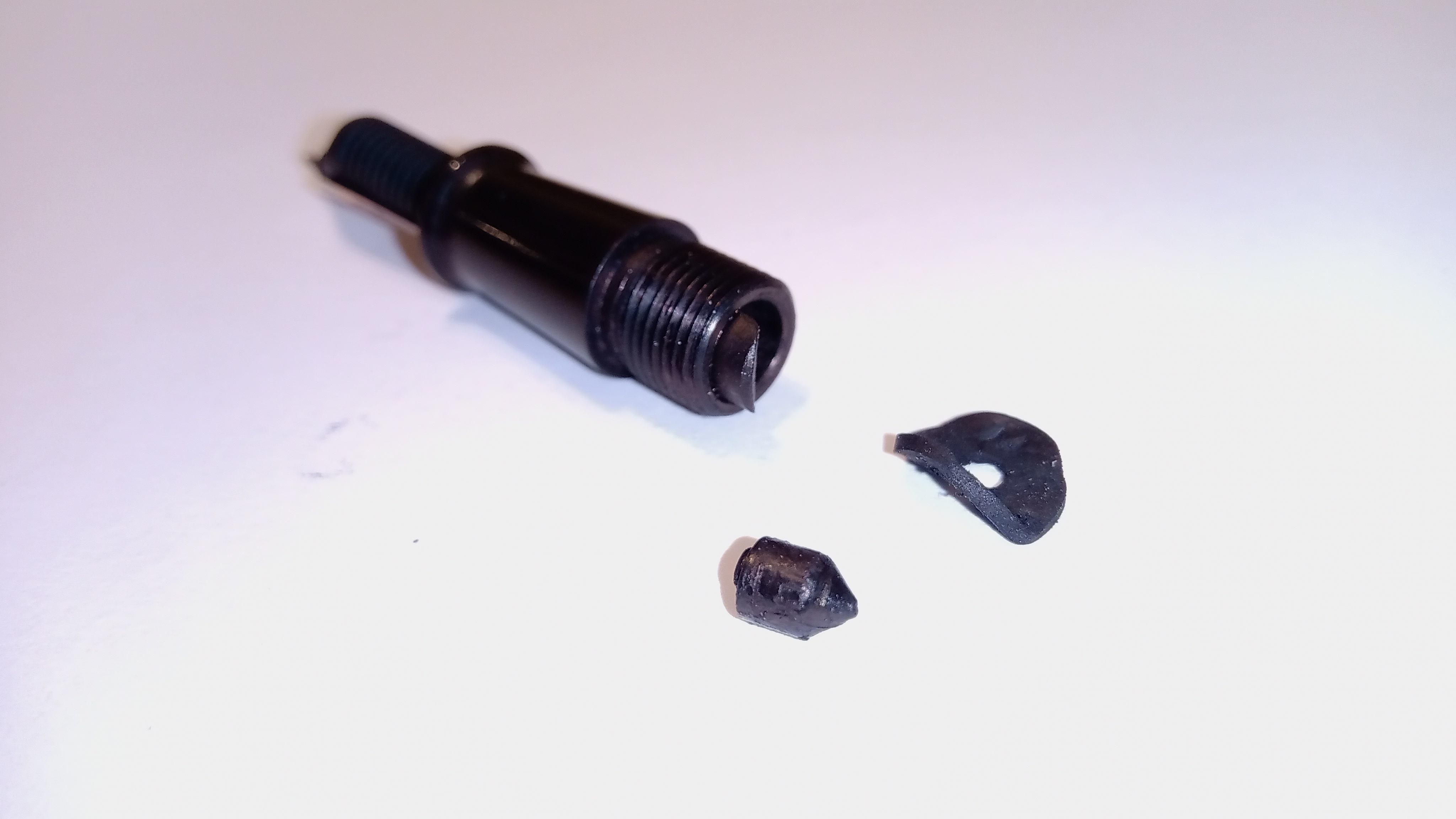 La punta insieme al materiale del cilindro mostravano chiari segni di essere stati forzati con un attrezzo grezzo, che apparentemente non avrebbe raggiunto il suo obiettivo, svitare la punta, danneggiando tutte le superfici...