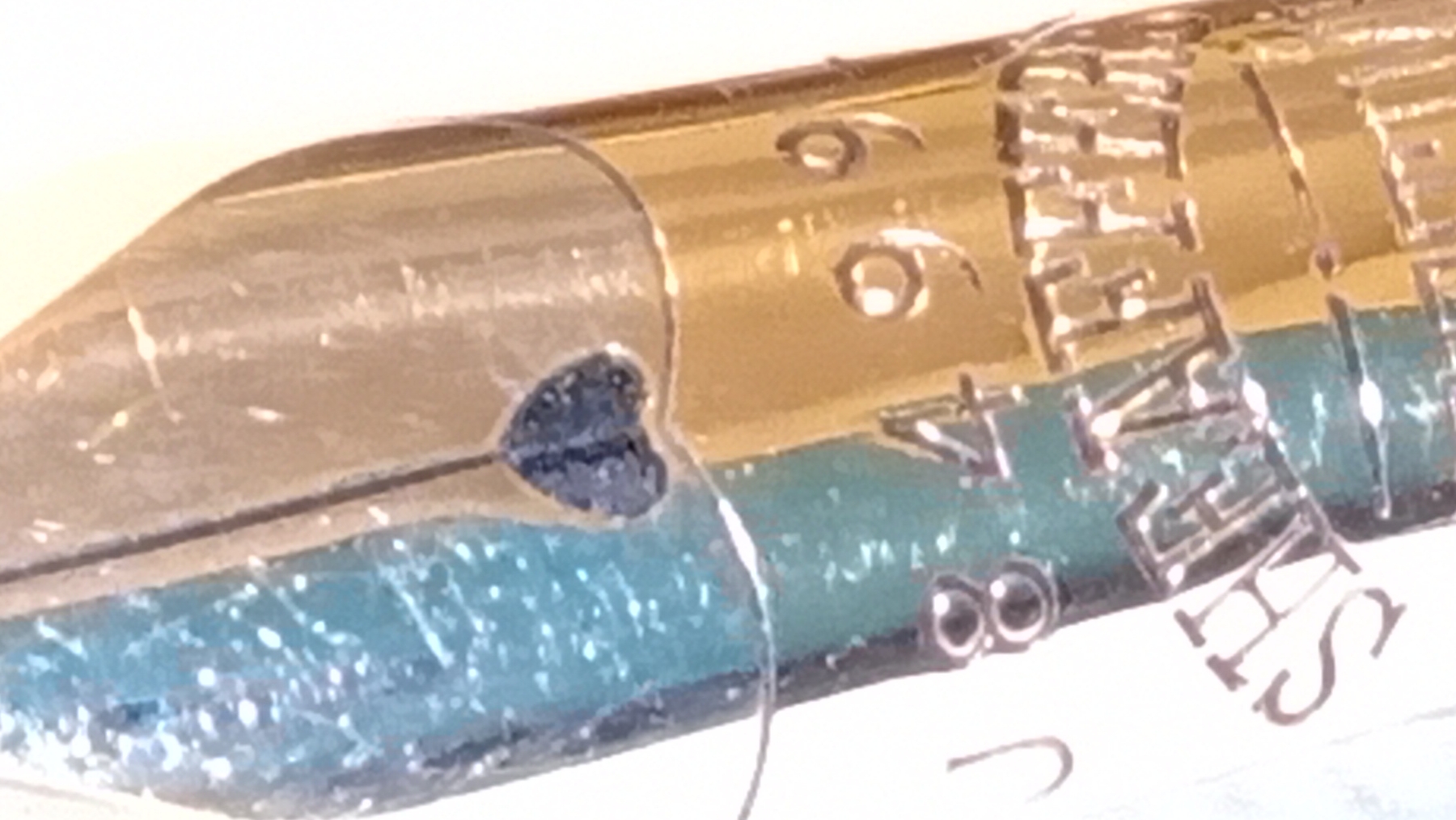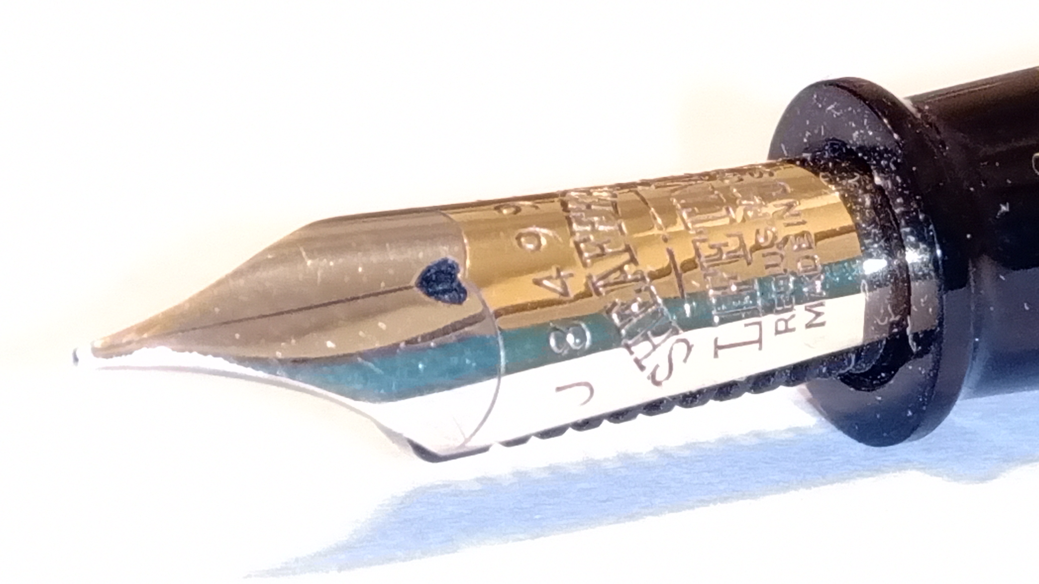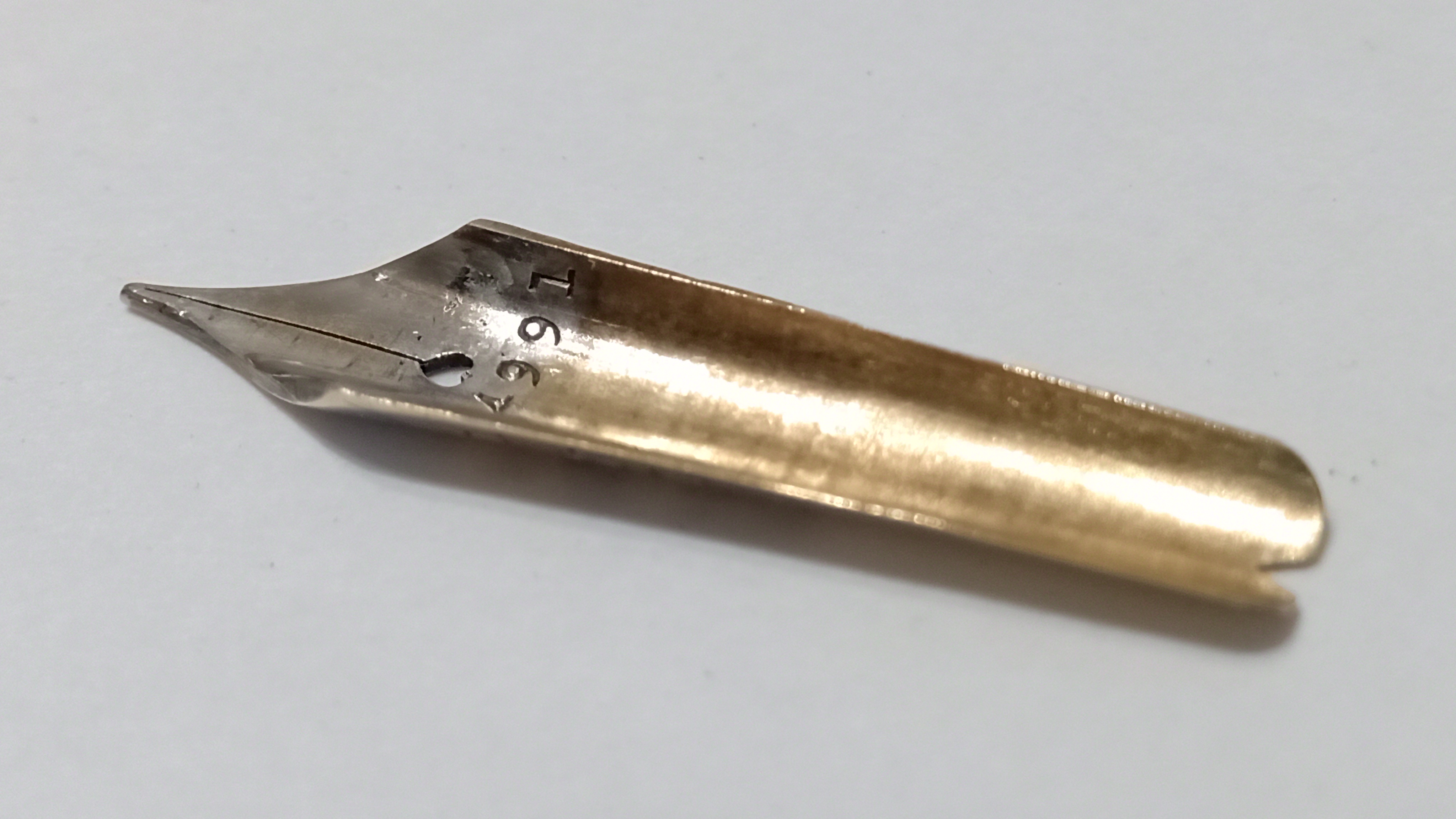 aunque lógicamente después de más de 80 años el sistema de carga estaba mal reparado y totalmente inutilizado, algunos dorados deteriorados, el plumín aunque intacto tenía completamente cerrados sus gavilanes y las superficies totalmente carentes de su brillo original...