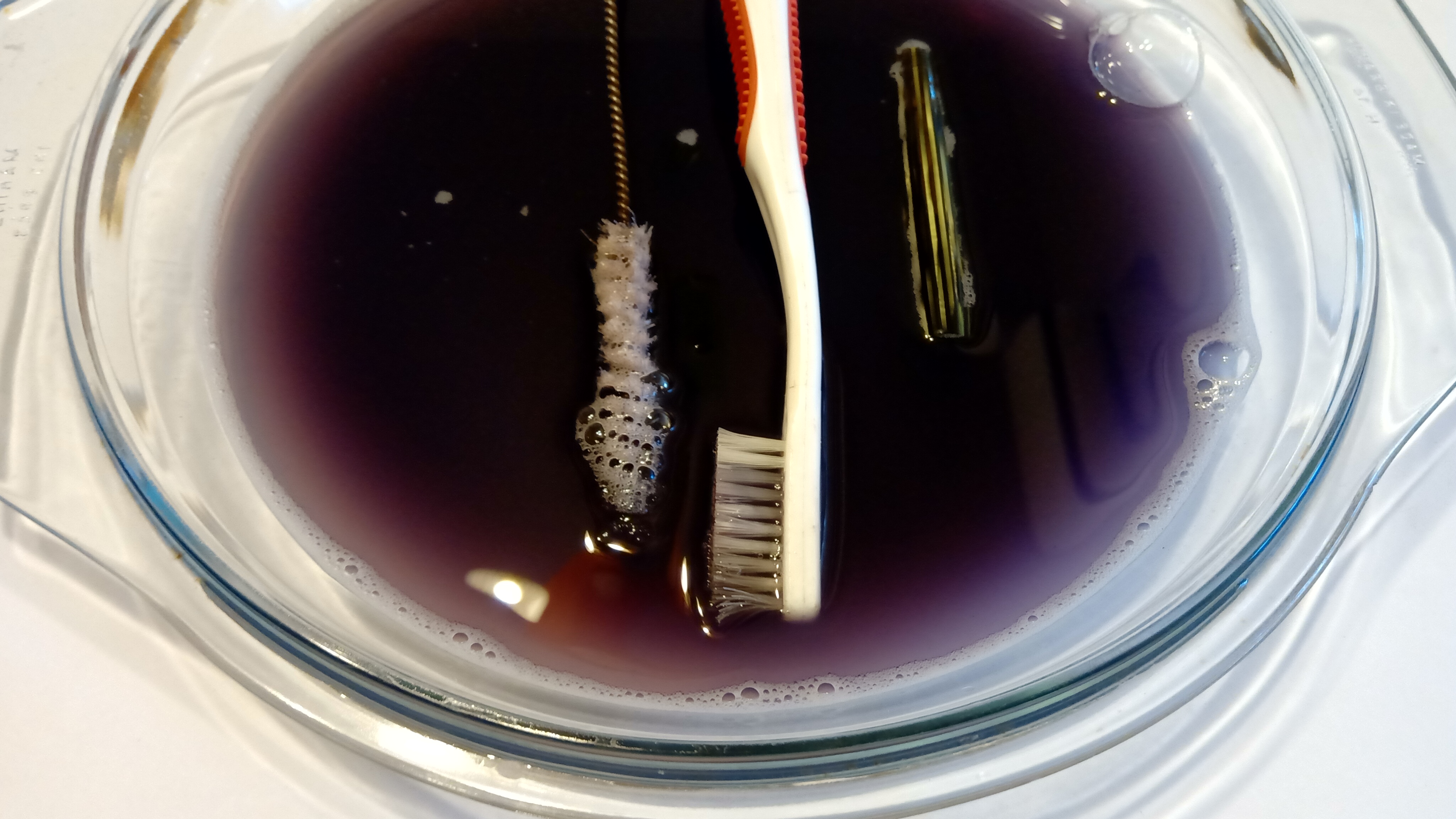 Abbiamo quindi immerso tutti i componenti del sistema di alimentazione in acqua e detergente neutro per due giorni...