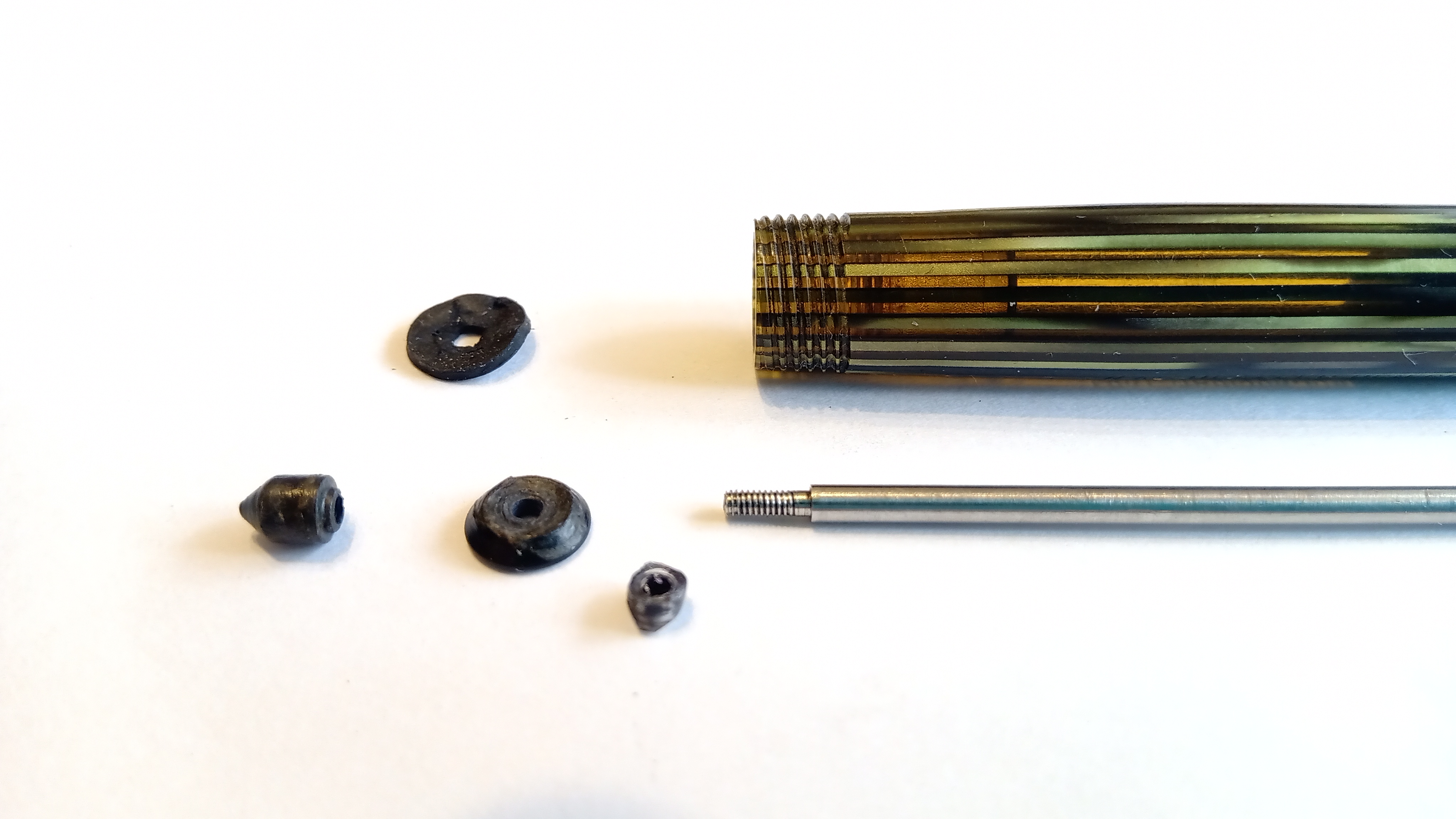Continuiamo quindi con il sistema di alimentazione, dal quale resta da smontare la cartuccia posteriore della canna, che contiene i fermi in gomma e il feltro lubrificante, essendo questa cartuccia il pezzo chiave che garantisce la tenuta stagna per generare il vuoto.