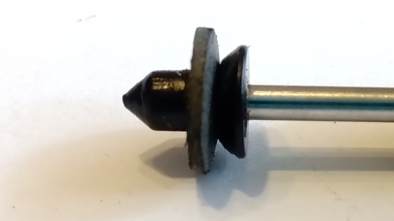 lo que terminó haciendo que el seguro que tiene el vástago en la punta acabase zafando por insuficiente roscado, y acabase clavado junto con la sopapa de caucho en el alimentador...