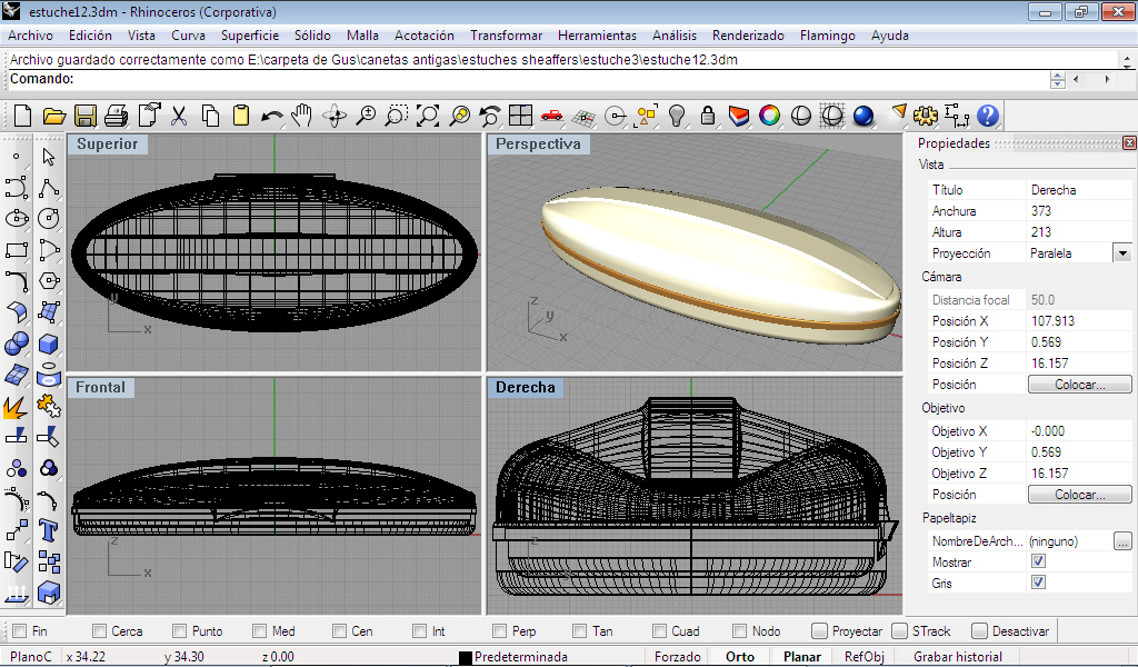 A tal fine, e in base ai colori e alle misure relative ad altre penne che figuravano nelle illustrazioni e nei cataloghi del marchio, abbiamo progettato in 3D utilizzando un software adeguato (nel mio caso Rhinoceros) la scatolina in questione...