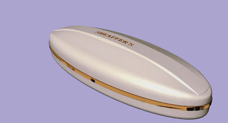 Para ello, y en función de colores y medidas relativas a otras plumas que figuraban en ilustraciones y catálogos de la marca, diseñamos en 3D utilizando un sofware adecuado (en mi caso Rhinoceros) la cajita en cuestión...