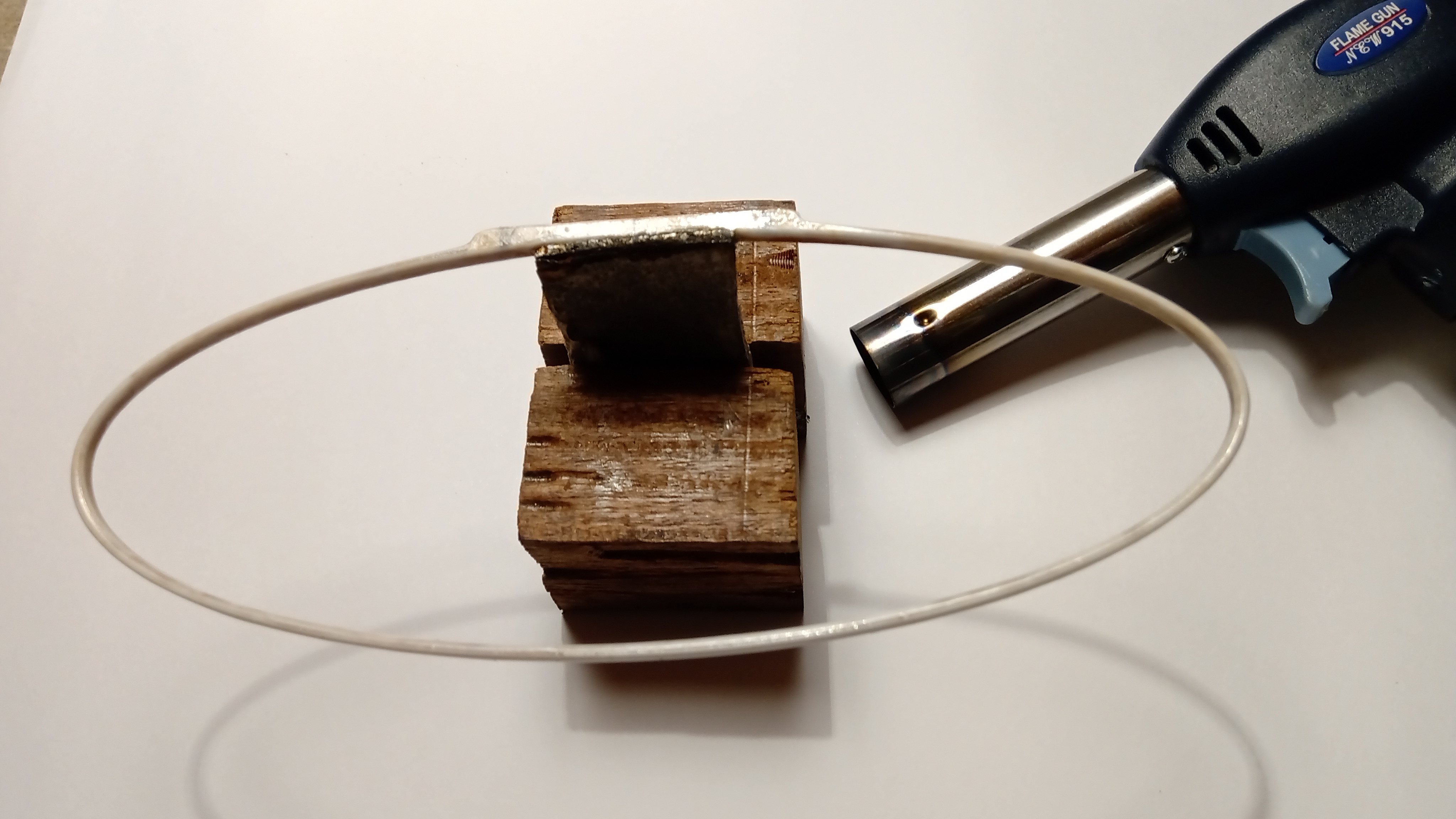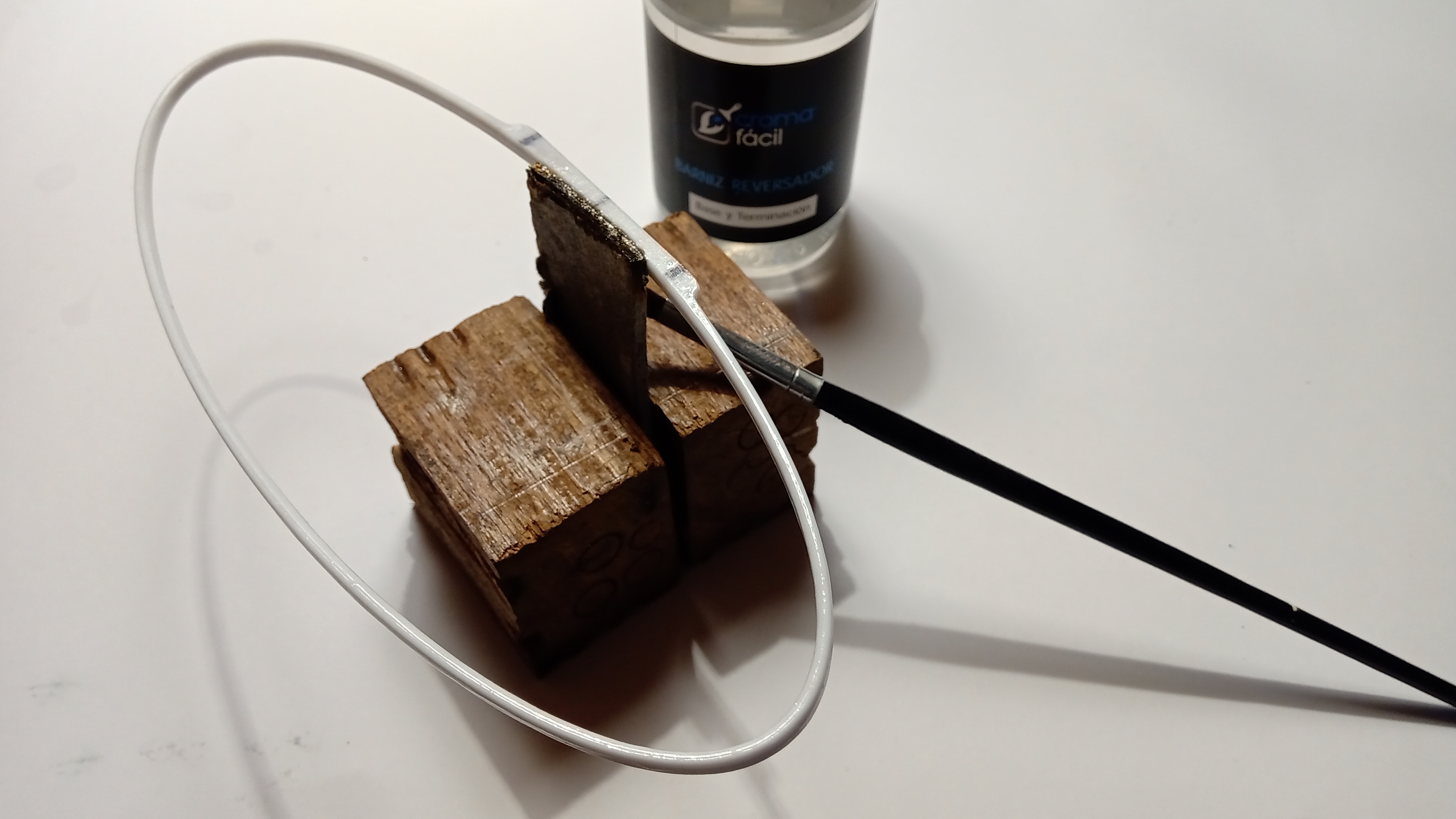 Una vez que el barniz ha secado completamente, disminuimos las tensiones superficiales del mismo con un flameado de llama azul...