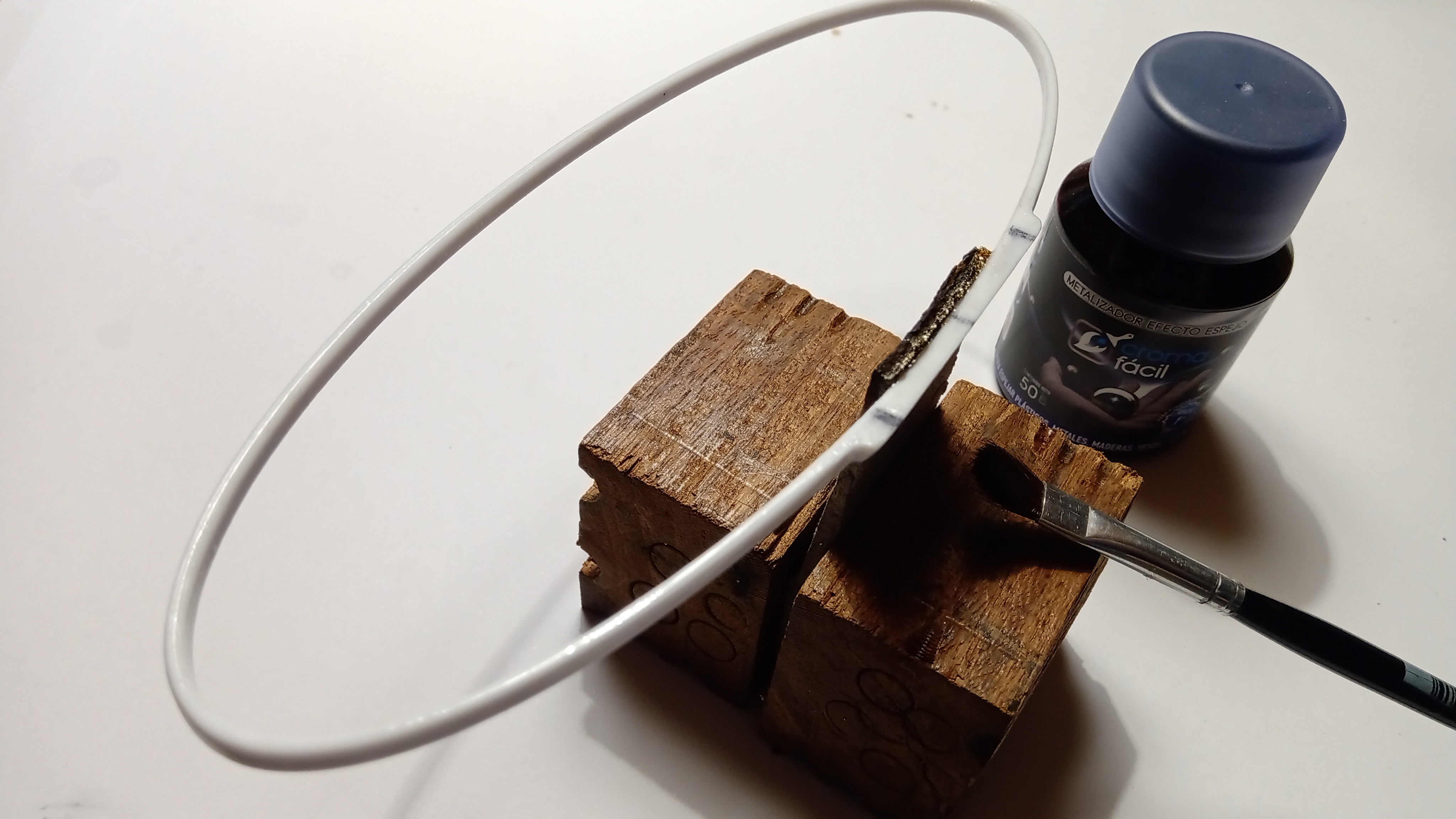 Ora iniziamo a cromare e dorare il bordo della base della scatolina, per cui diamo due mani di vernice di base che aiuterà a levigare la superficie...