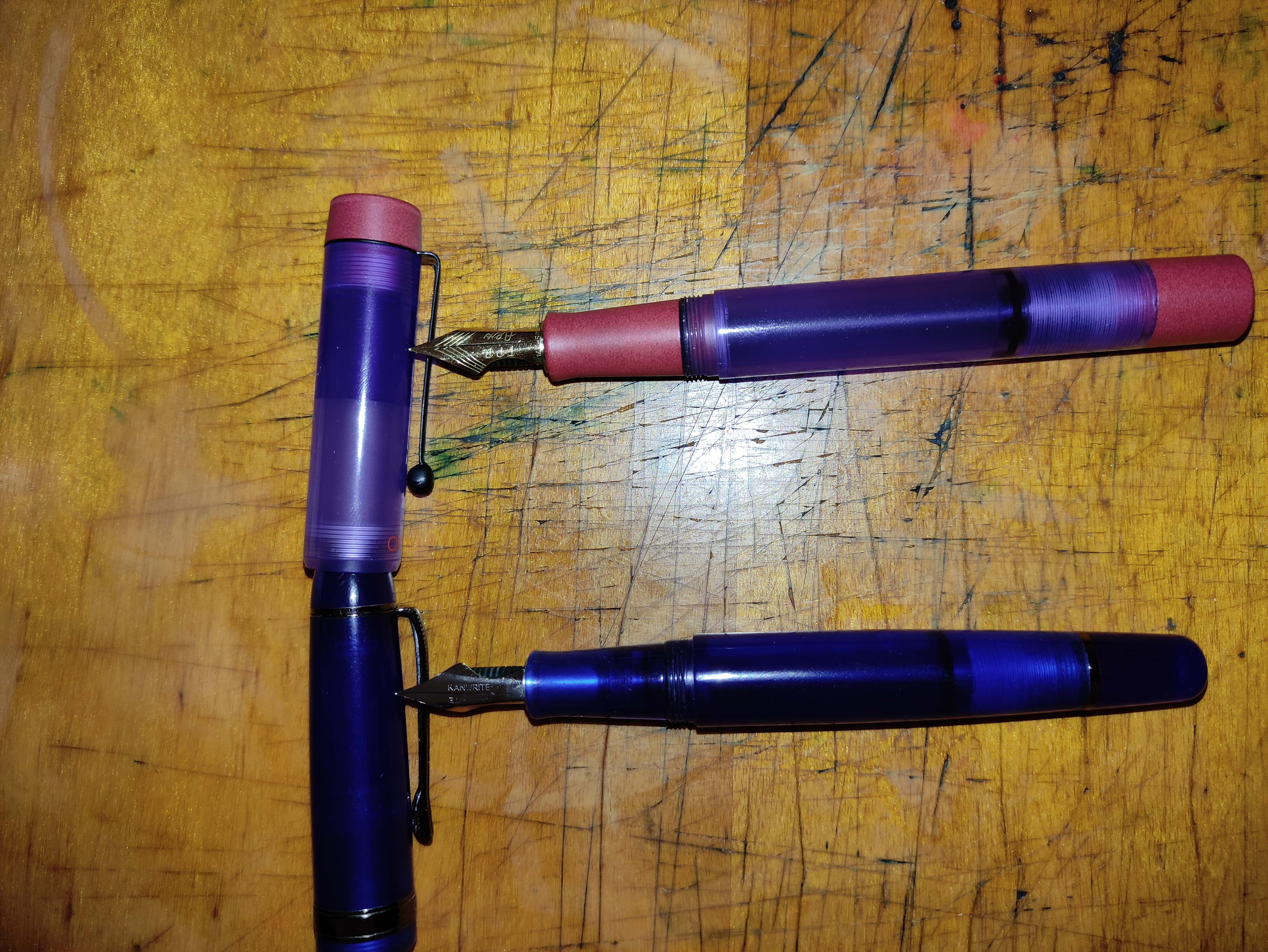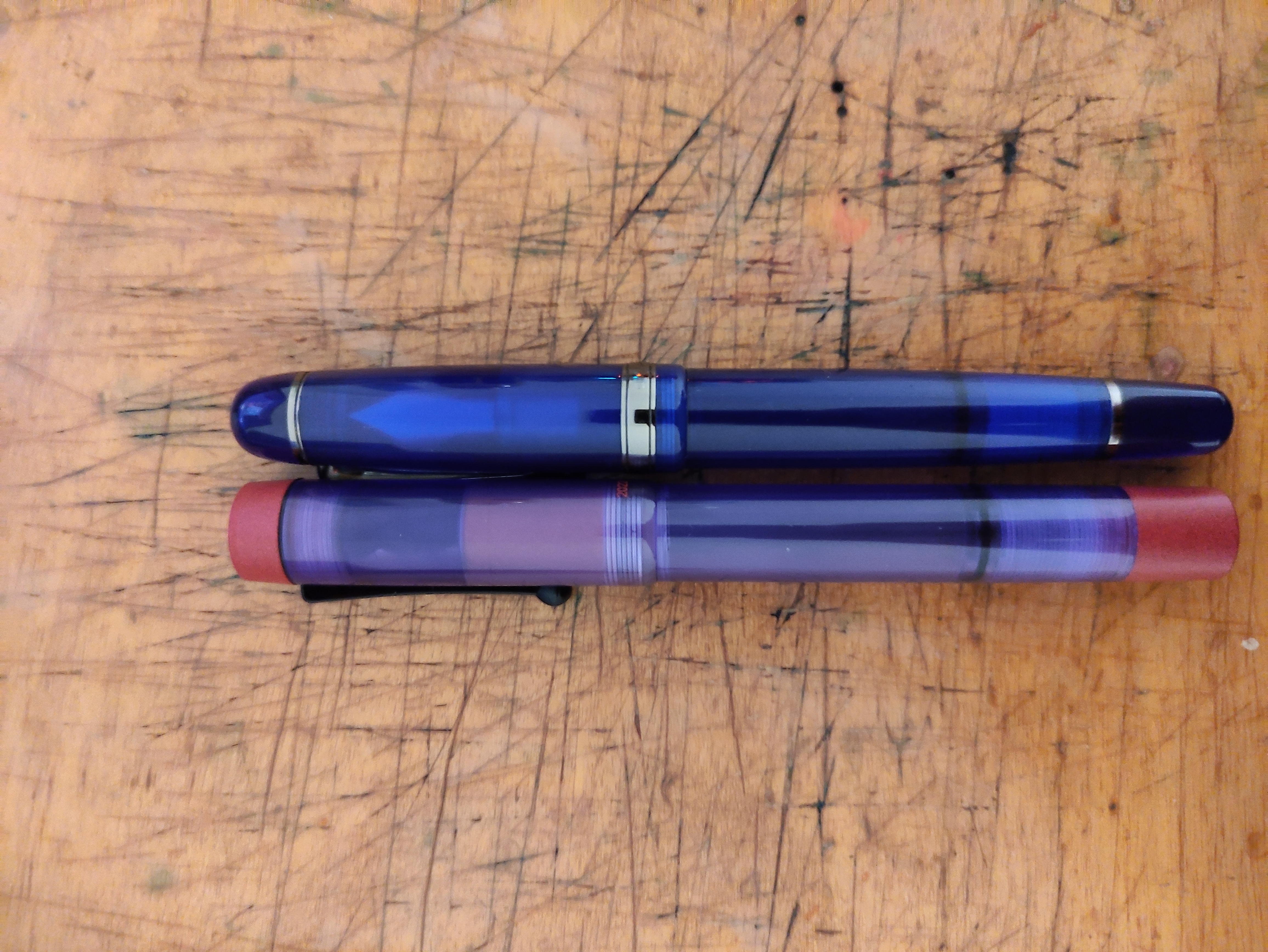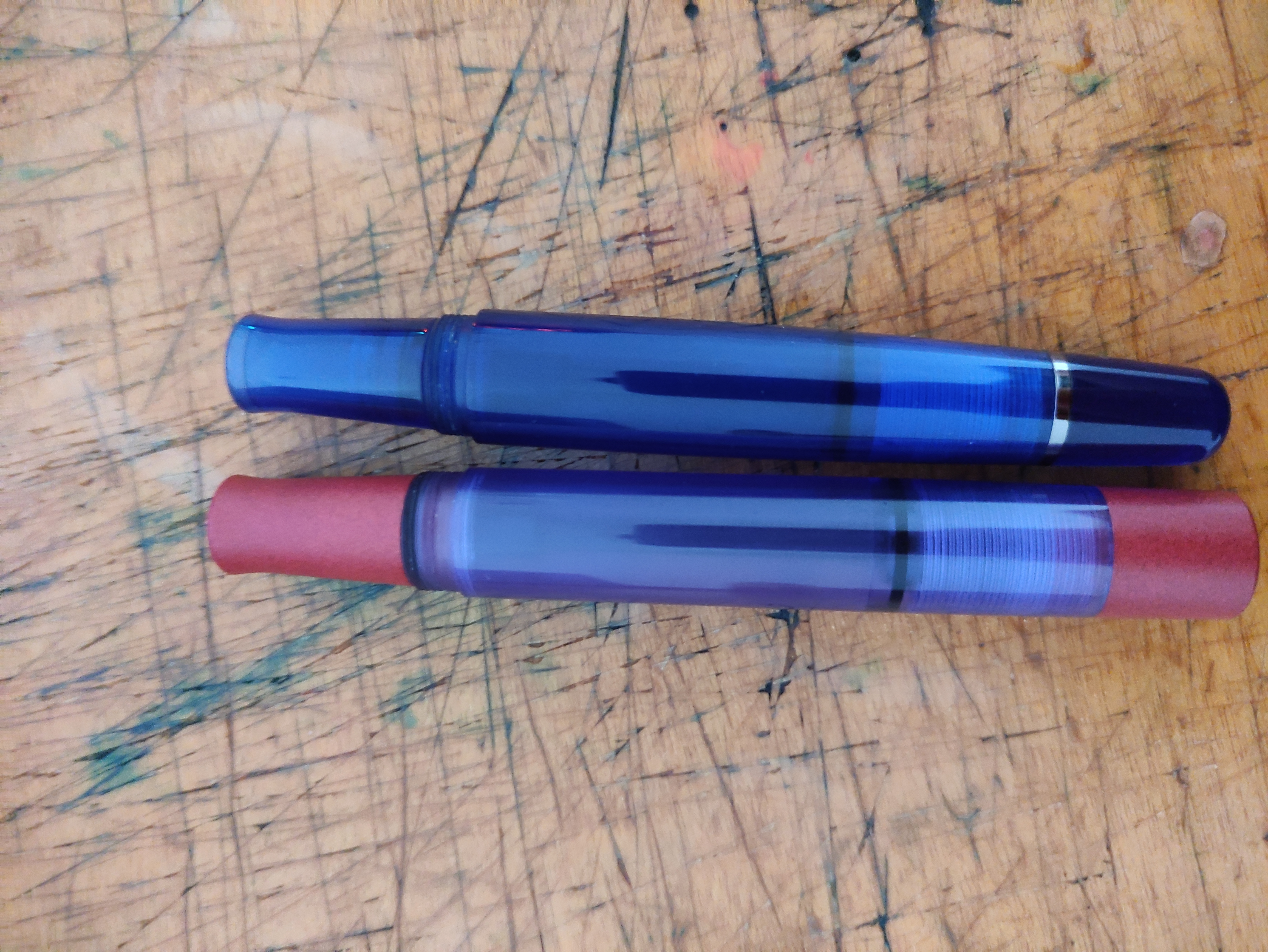 Qua mostro che le dimensioni delle due penne comparate. Demonstrator col tappo è un pelino più corta ma non di tanto.