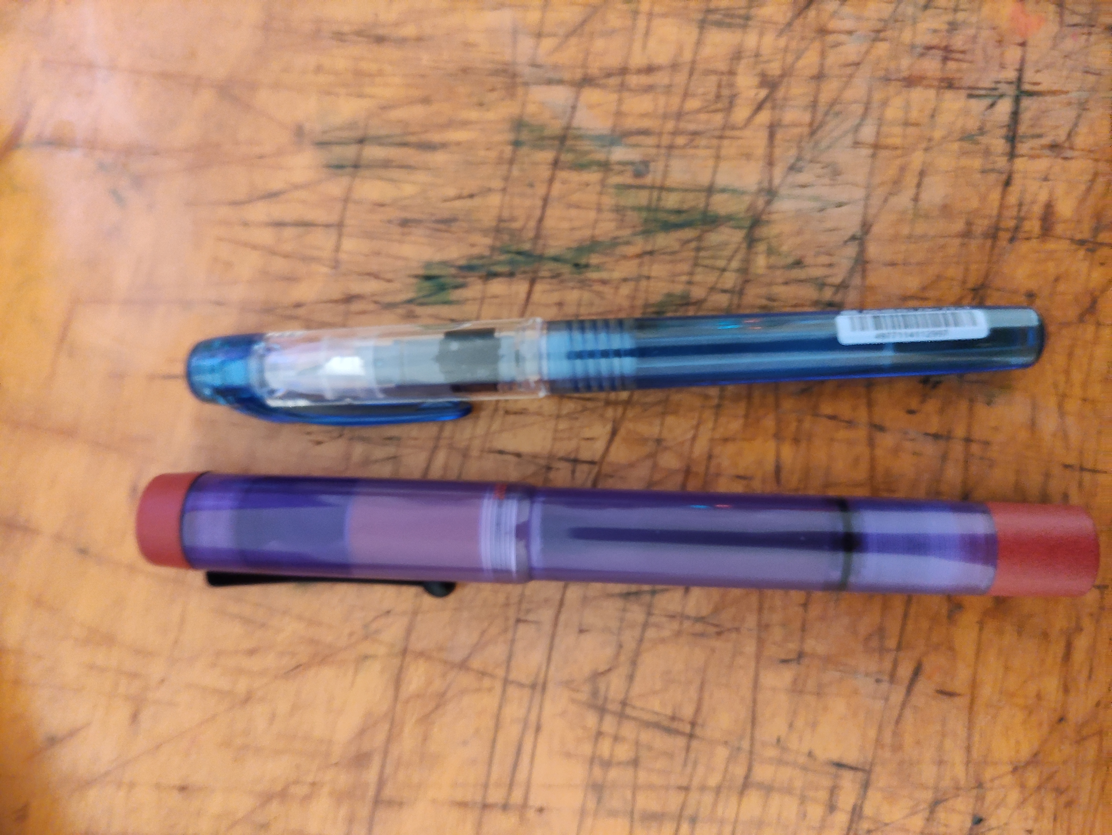 Per mostrarvi quanto è ridicolmente gigante questa penna eccola in comparazione con platinum preppy. Insomma, è veramente grossa ma il lato positivo è che la plastica usata da opus è spessa e robusta.