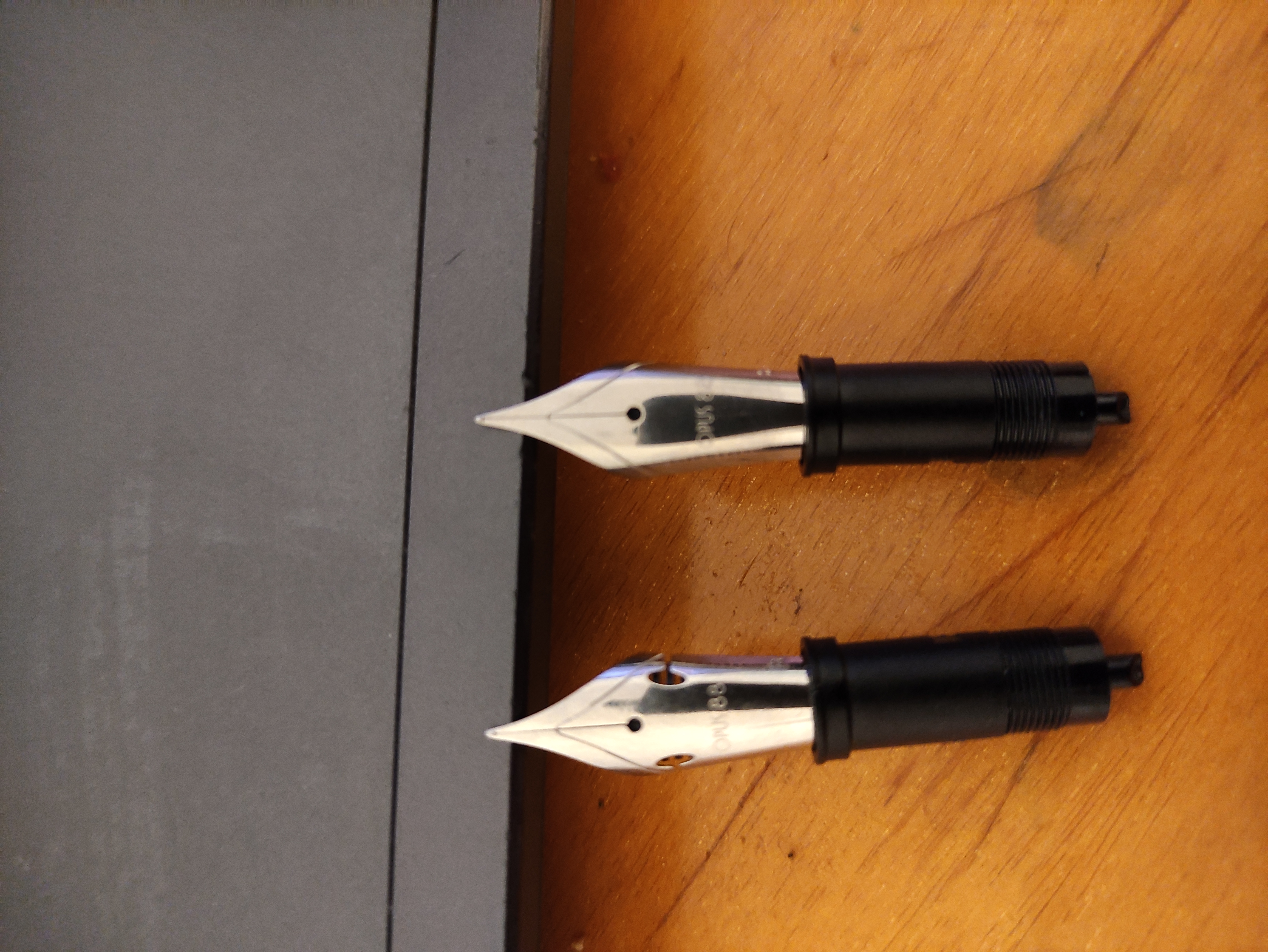 I pennini che vi danno sono questi della jowo. Standard, niente da dire sono stati recensiti in dozzine di penne e non c'è veramente niente da dire. Sono "i soliti jowo" che conoscete a memoria. Comunque io ho extrafine normale ed extrafine "elastic"