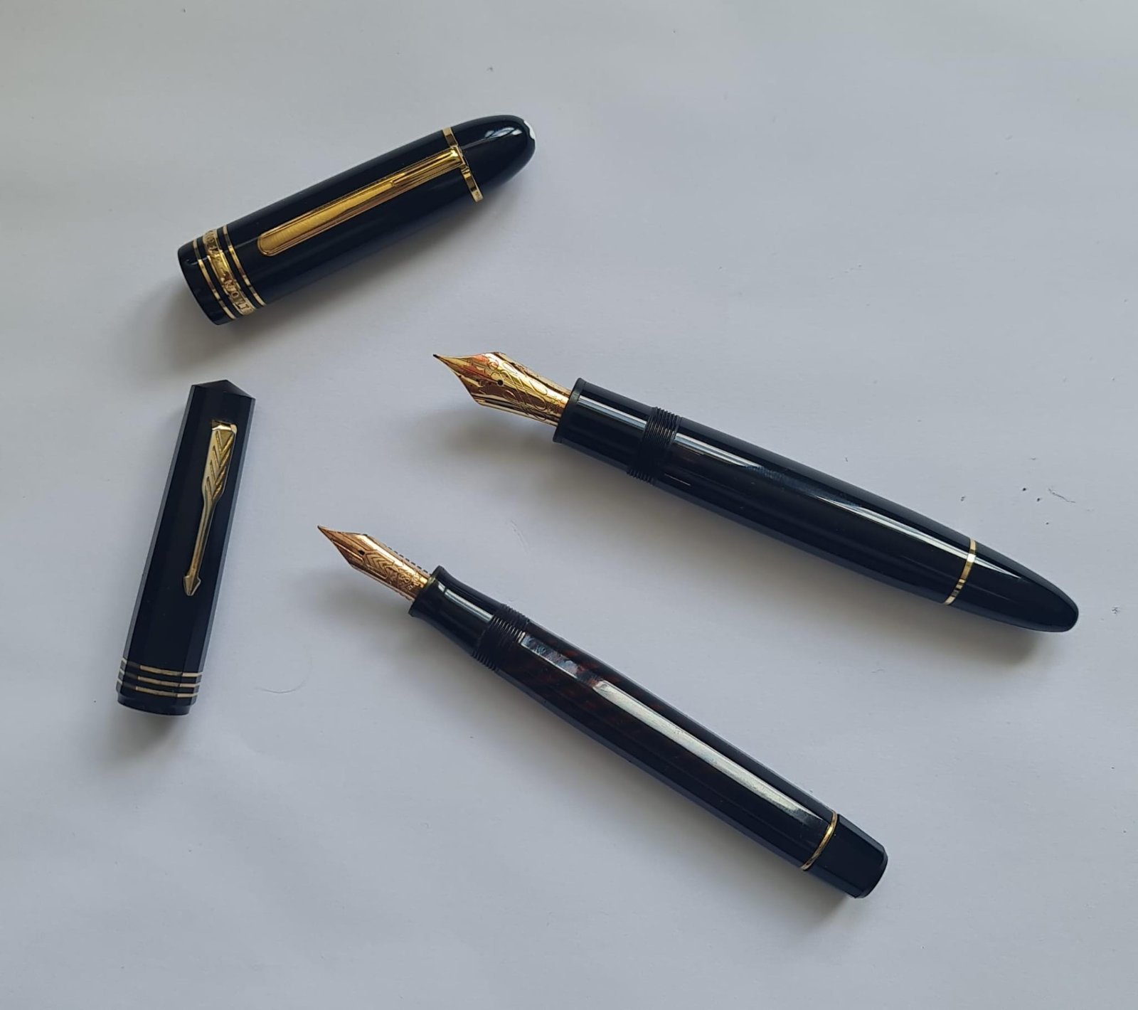 La Omas 150625 é una penna nera, lunga 143 mm, con dodici faccette. Vi ricorda qualcosa? Vi aiuto ancora un po'. Ha un anello sul cappuccio, ricoperto in oro 14K, con un perfetto motivo a greca, affiancato da due anellini sottili. Ancora no? Un anello con lo stesso motivo a greca decora la sezione della penna. So che lo avete già capito, ma vi aggiungo un dettaglio che toglie ogni dubbio. La clip non é un'anonima "ruzzolina", come l'hanno montata decine di marche italiane di penne (Omas compresa) negli anni '40 e '50, ma la clip a cravatta, piena di faccette e perciò di riflessi, che fu unica di Omas e che, secondo la pagina di OmasBologna, lo stesso Armando Simoni disegnó negli anni '40. Io ne conoscevo una versione storica distinta, secondo la quale la clip fu commissionata da Simoni all'artista e designer Gio Pomodoro, ma tant'é: la Omas 150625 é, in definitiva, una Omas Paragon!