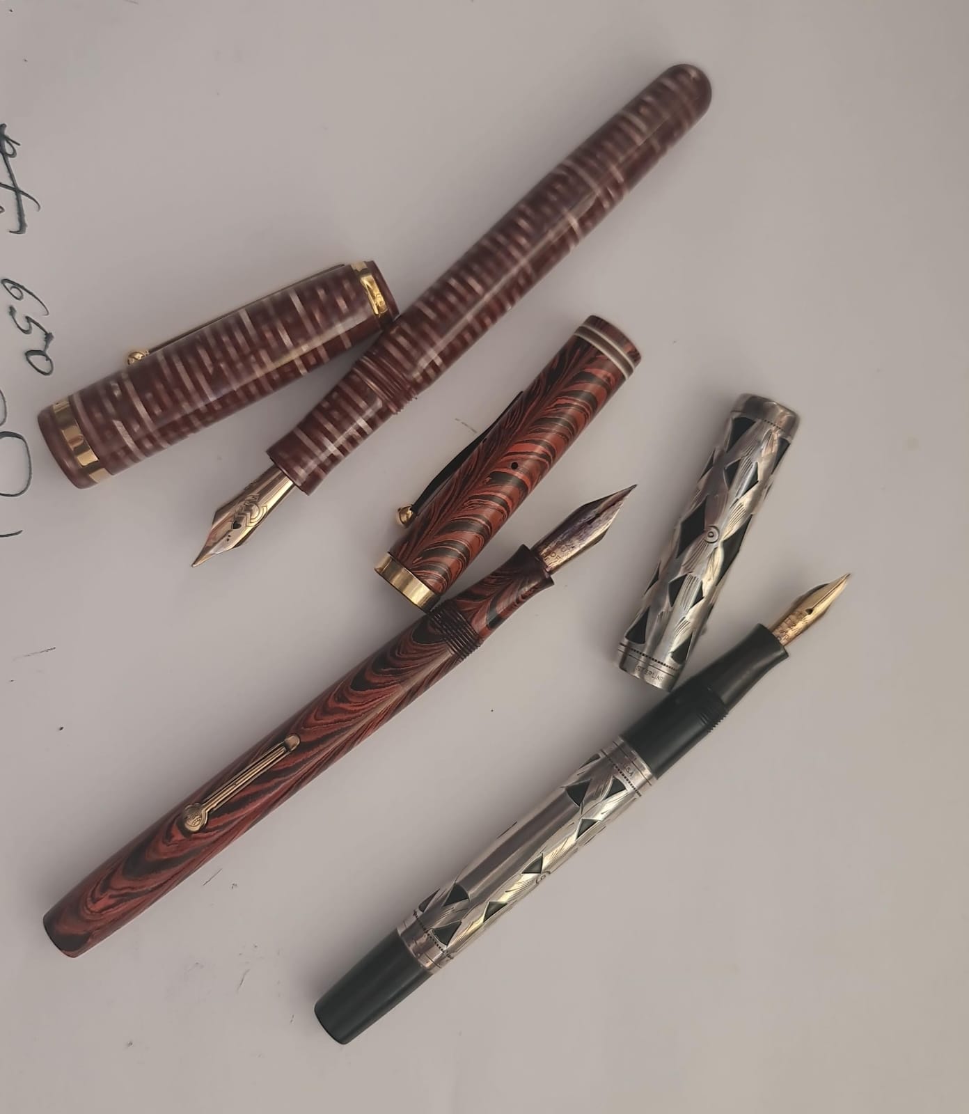 E infine, ciliegina sulla torta, il pennino della Omas 150625 non é un nuovo pennino prodotto da "qualcuno" per questa penna, ma un vero, legittimo, originale pennino Extra (non Extra Lucens), di quelli fantastici con lo sfiato a cuoricino, prodotto negli anni '40 e conservato sinora tra i piccoli tesori che Armando Simoni aveva lasciato in eredità alla sua famiglia. Nella pagina di Omasbologna é riprodotta una fotografia dove si possono osservare una paio di bustine d'epoca - direi in carta oleata -, ognuna contenente 100 pennini Omas Extra!
