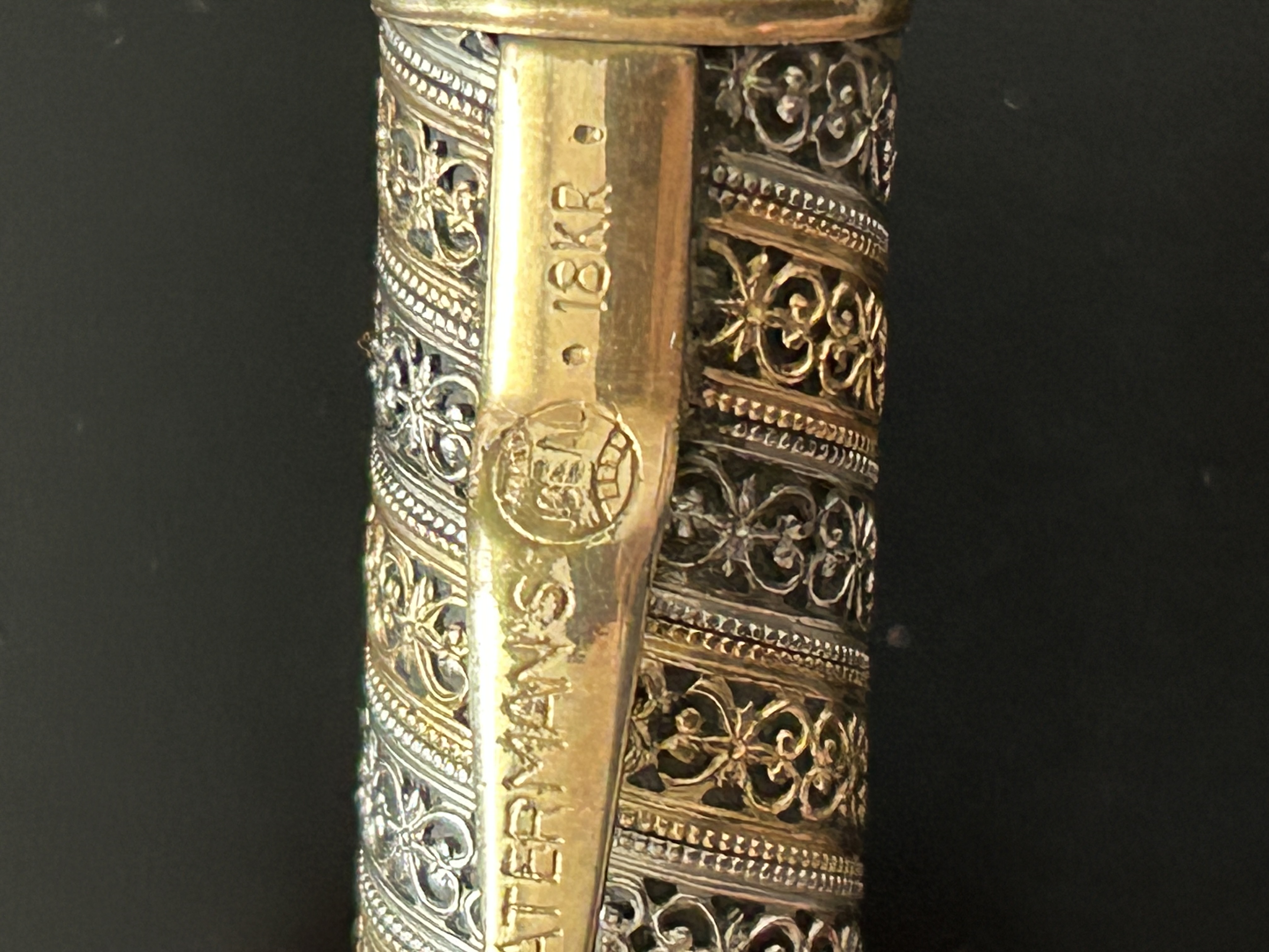 Begli oggetti, poco comune il coltellino in questi set, parere personale il portamine è simile ma non ha lo stesso decoro di penna e temperimo, probabilmente è stato aggiunto a posteriori, datazione anni 30 pieni visto il tipo filetto sulla stilografica, pennino irrecuperabile, fortunatamente i 2 da rientrante sono comunissimi, si trova facilmente un sostituto, probabilmente è rotta la spirale che fa fuoriuscire il pennino, la sostitizione è un lavoro semplice da effettuare ma non molto economico.