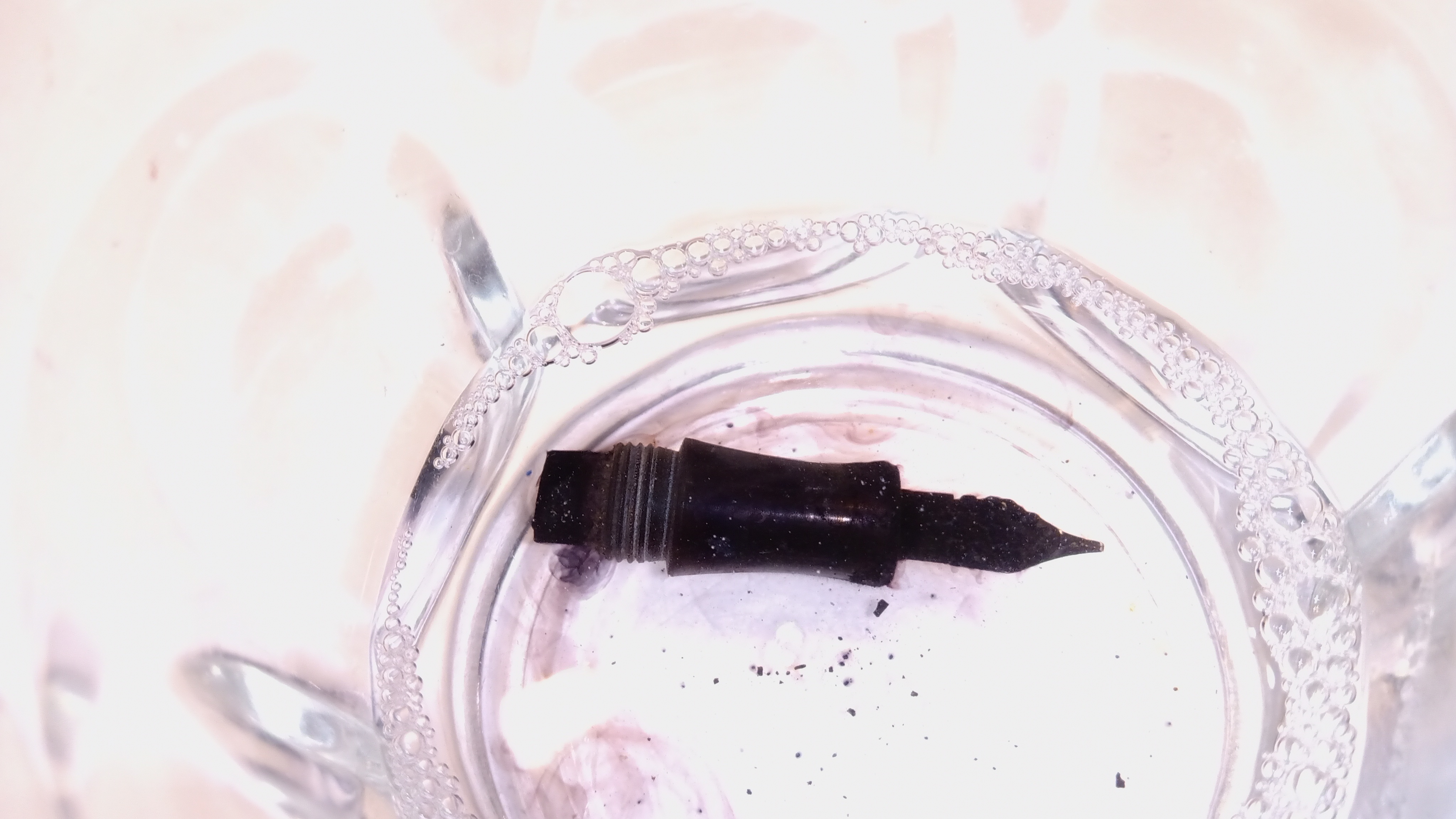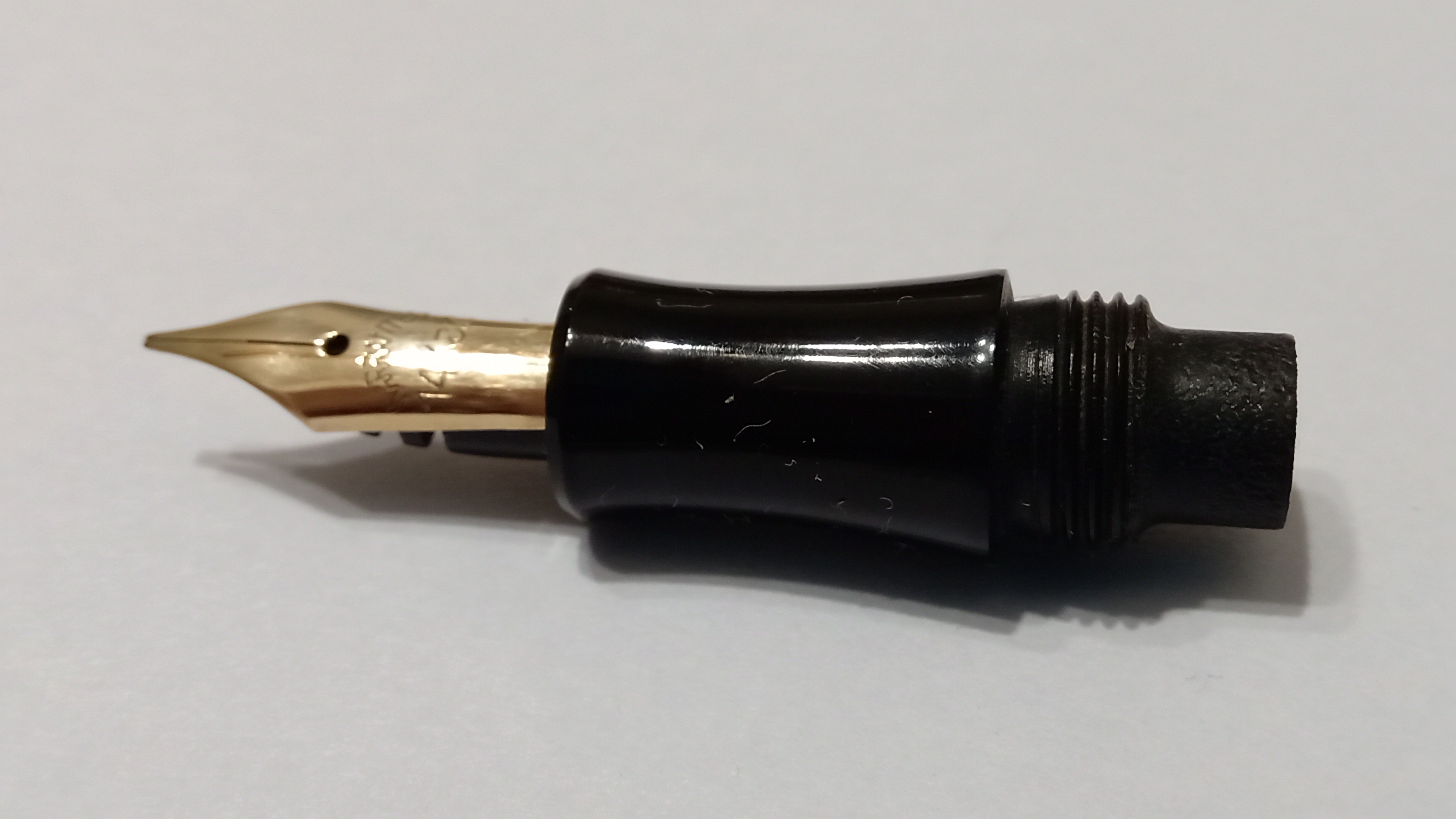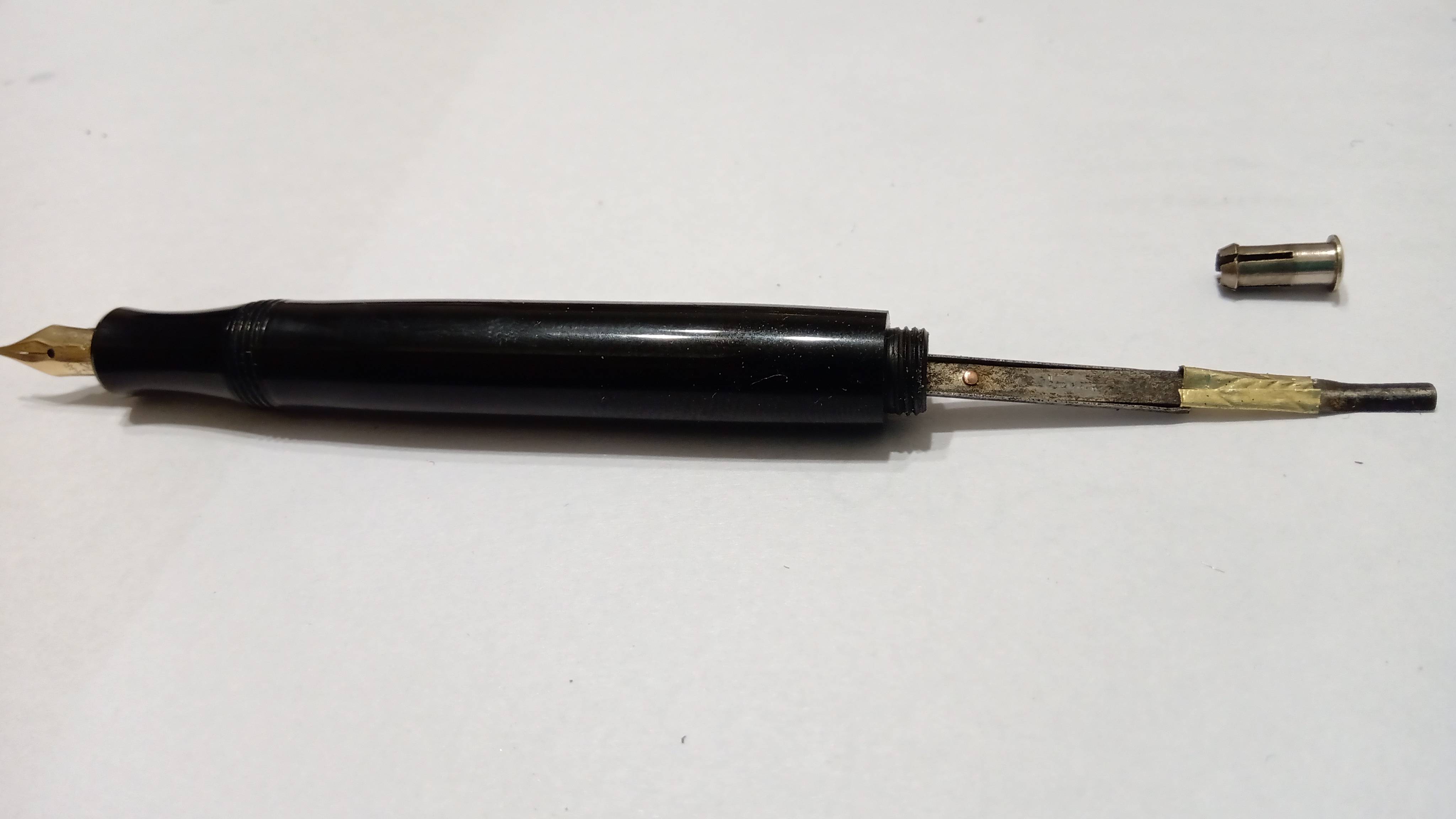 y tanto el plumín como el alimentador tenían tinta seca que formaba una sólida costra en ambas piezas...